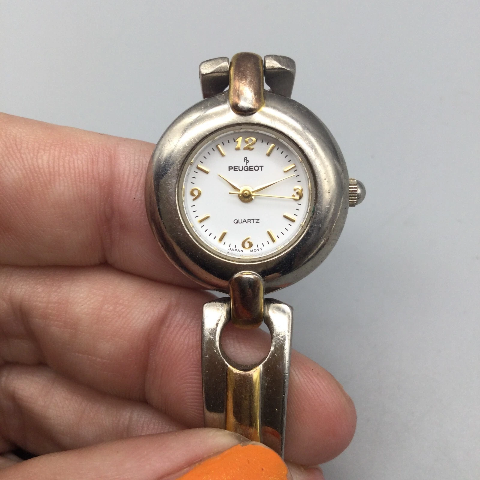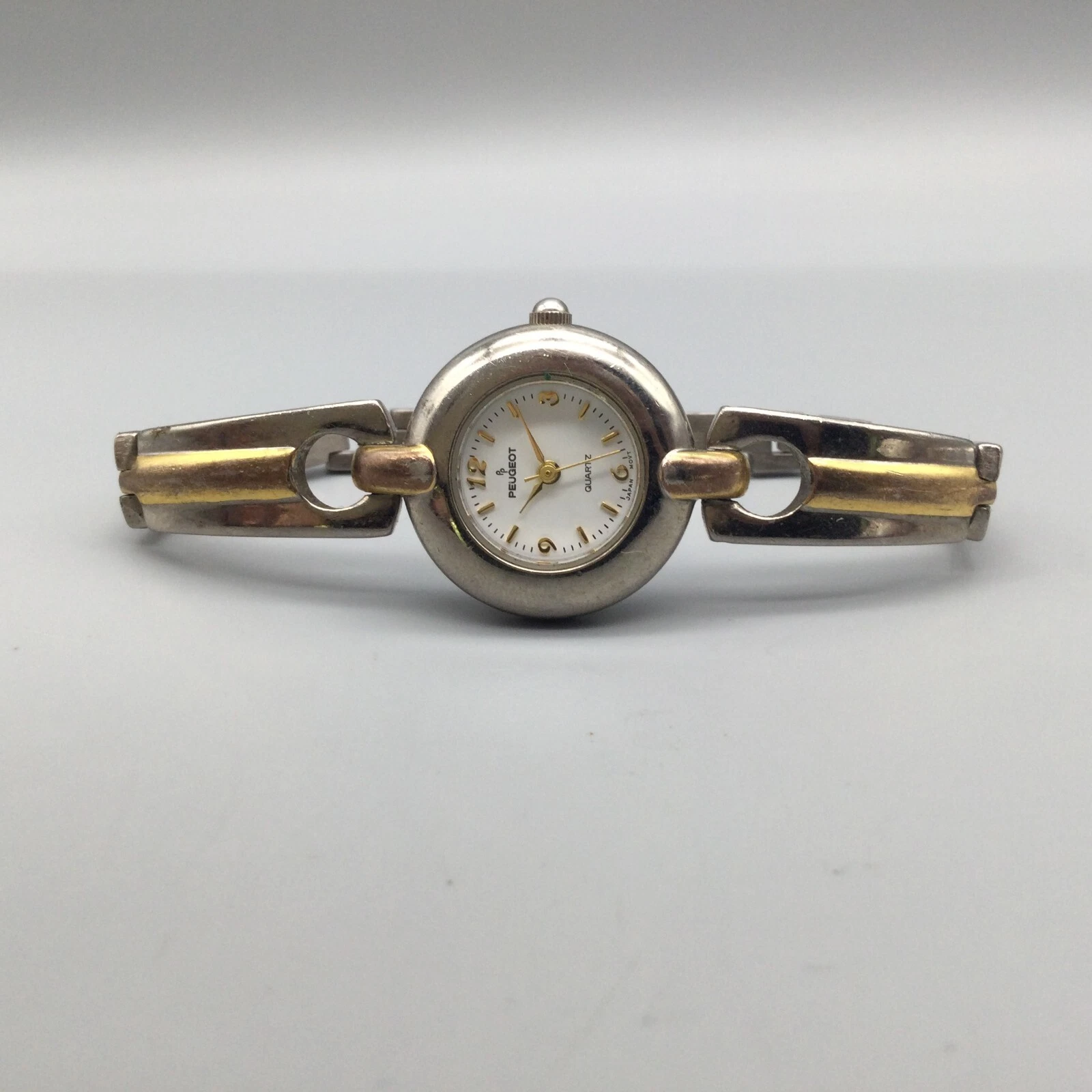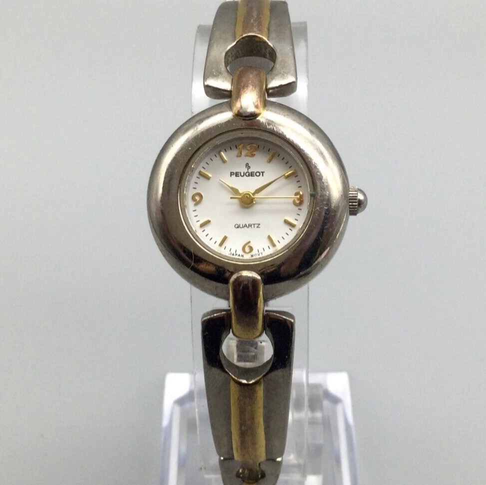 Peugeot Watch Women 24mm Silver Gold Two Tone Bracelet Band New Battery 6.75"