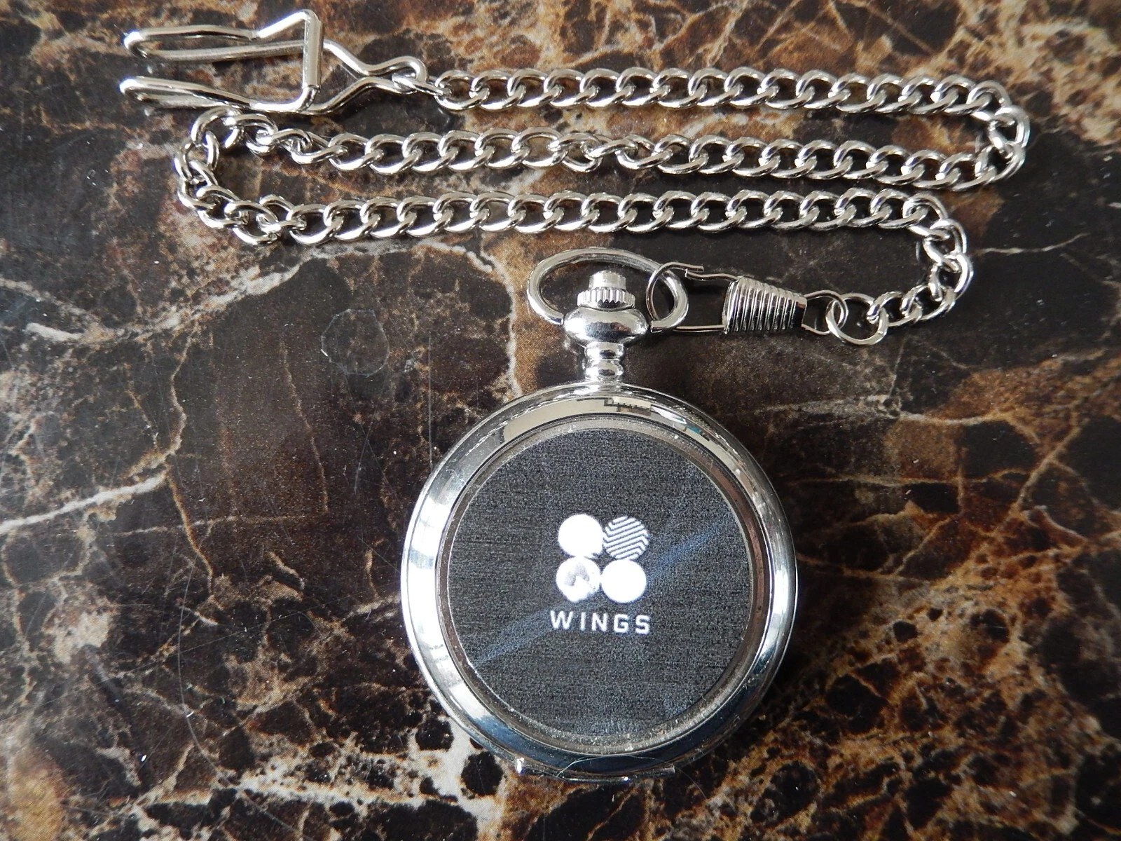 WINGS CHROME POCKET WATCH WITH CHAIN (NEW)