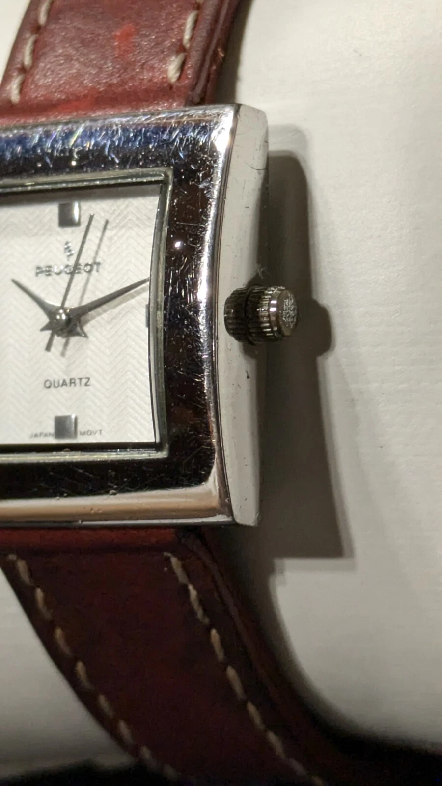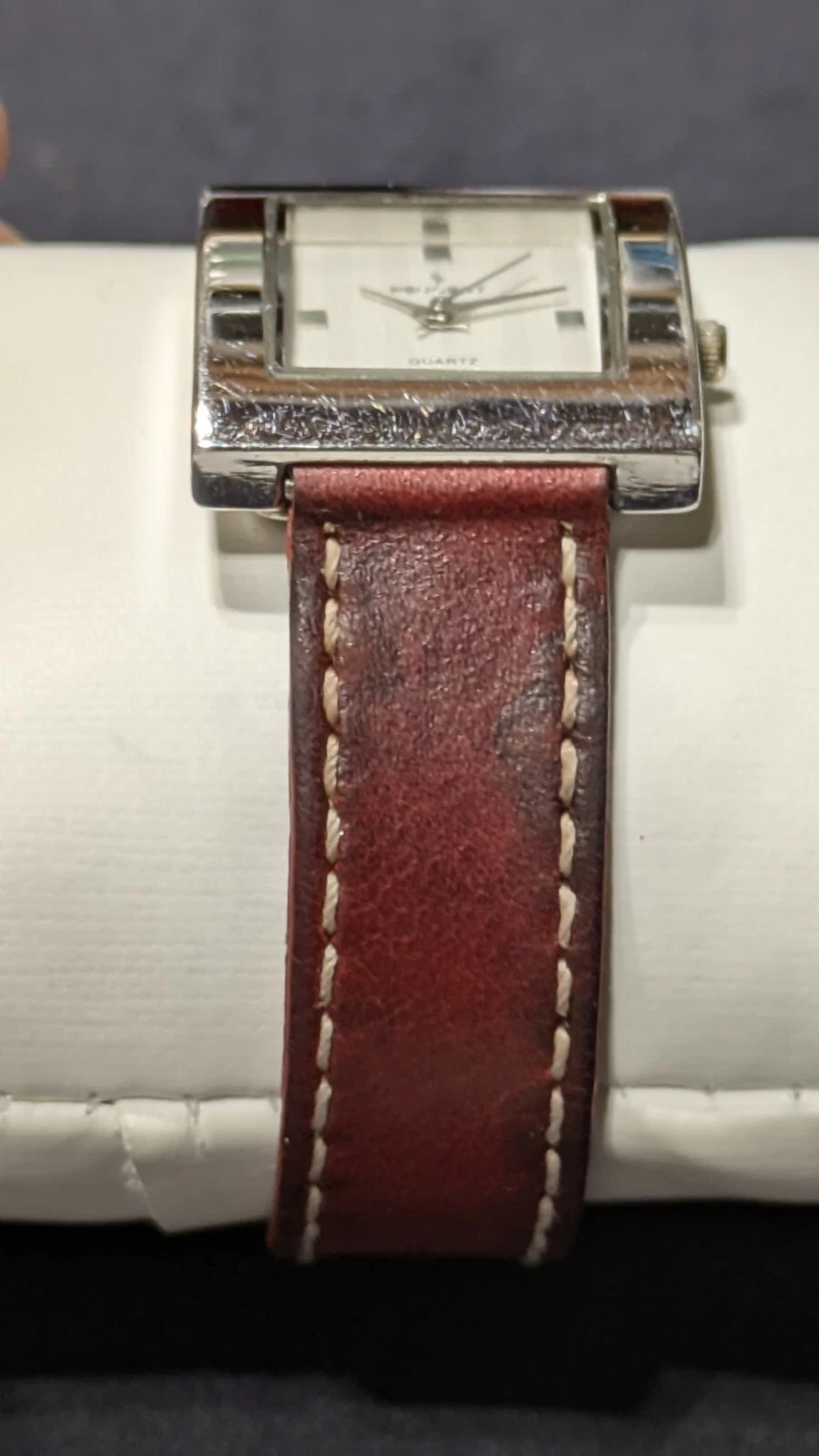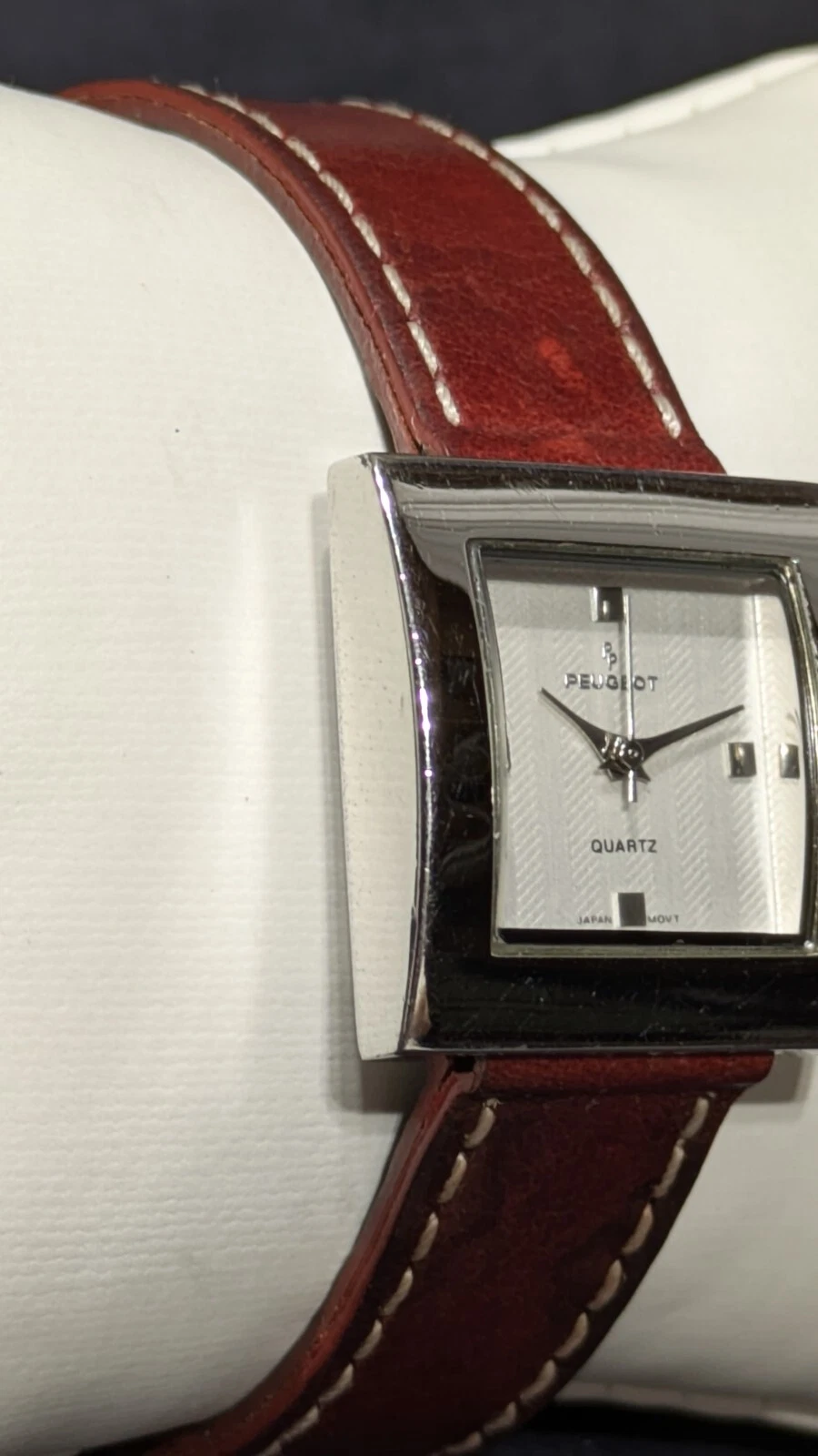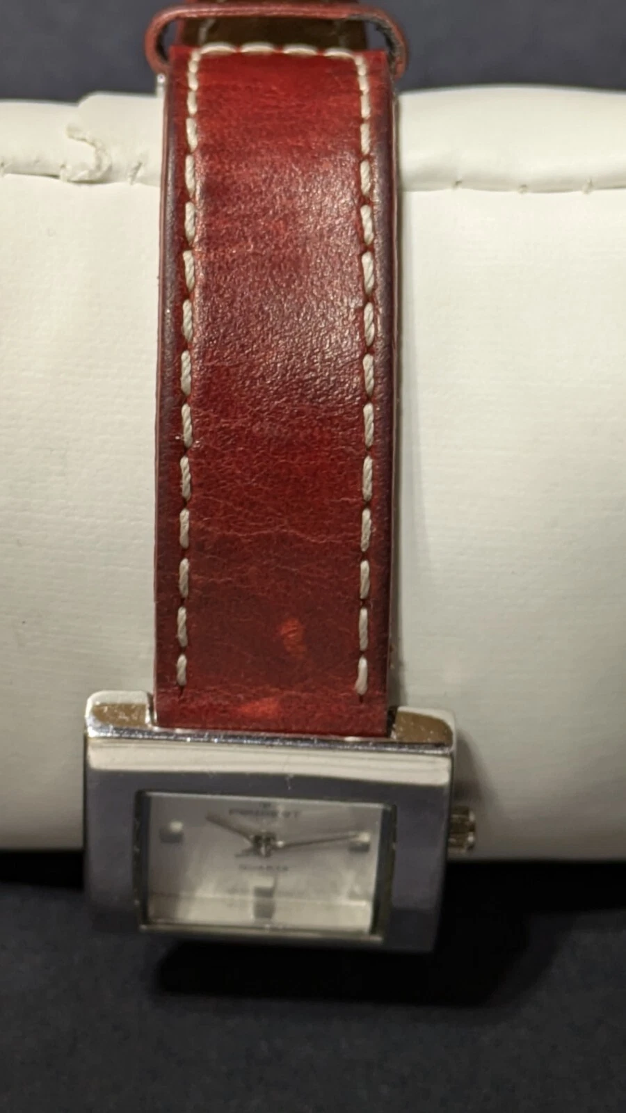 Peugeot Watch Women 16 mm Silver Tone Red Leathe Sz 7.1" Works New Battery