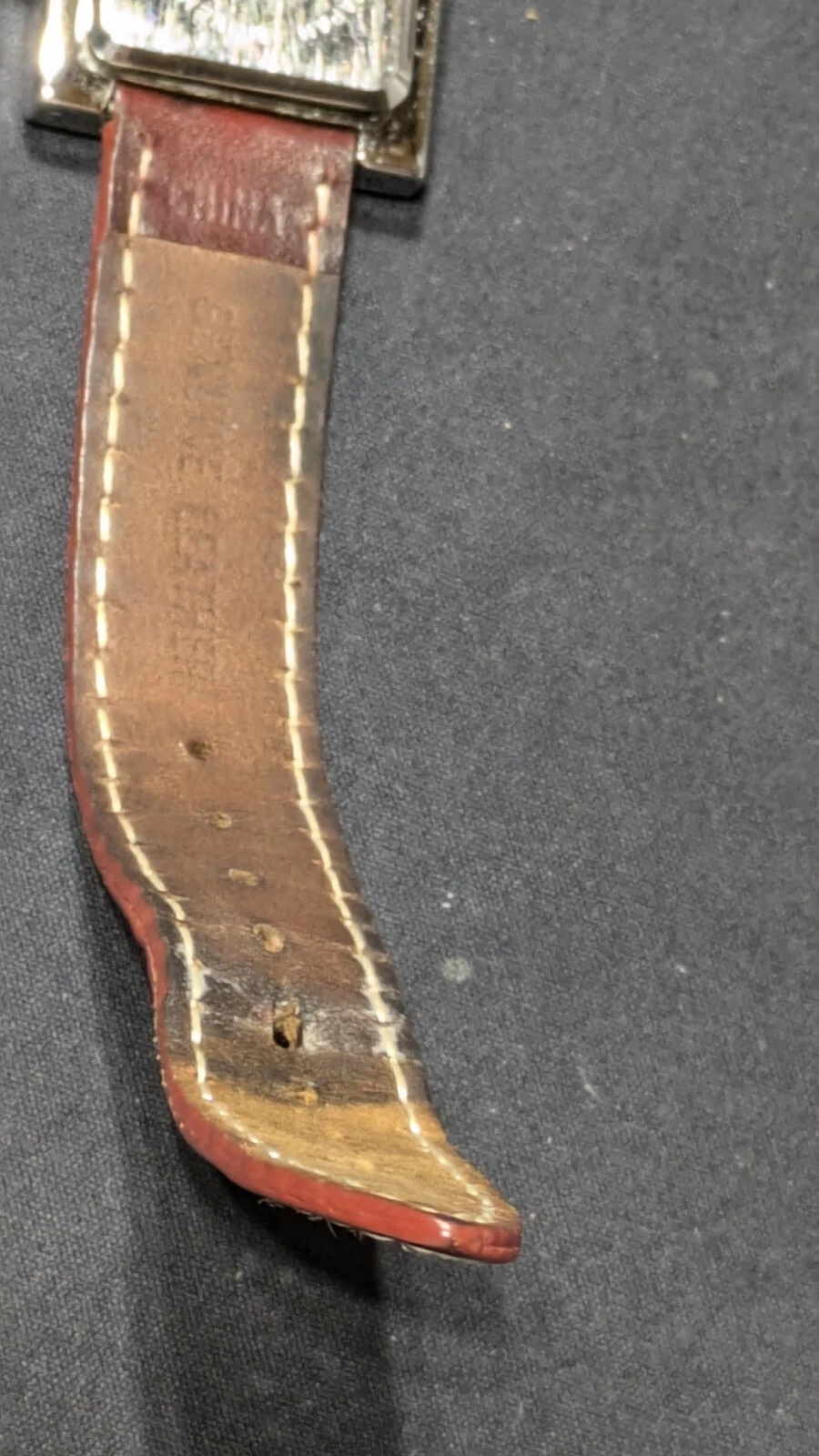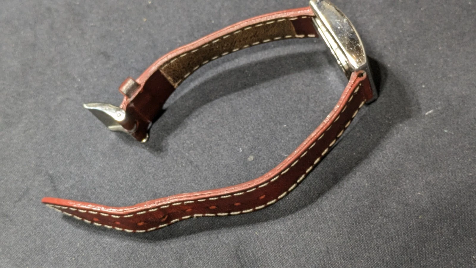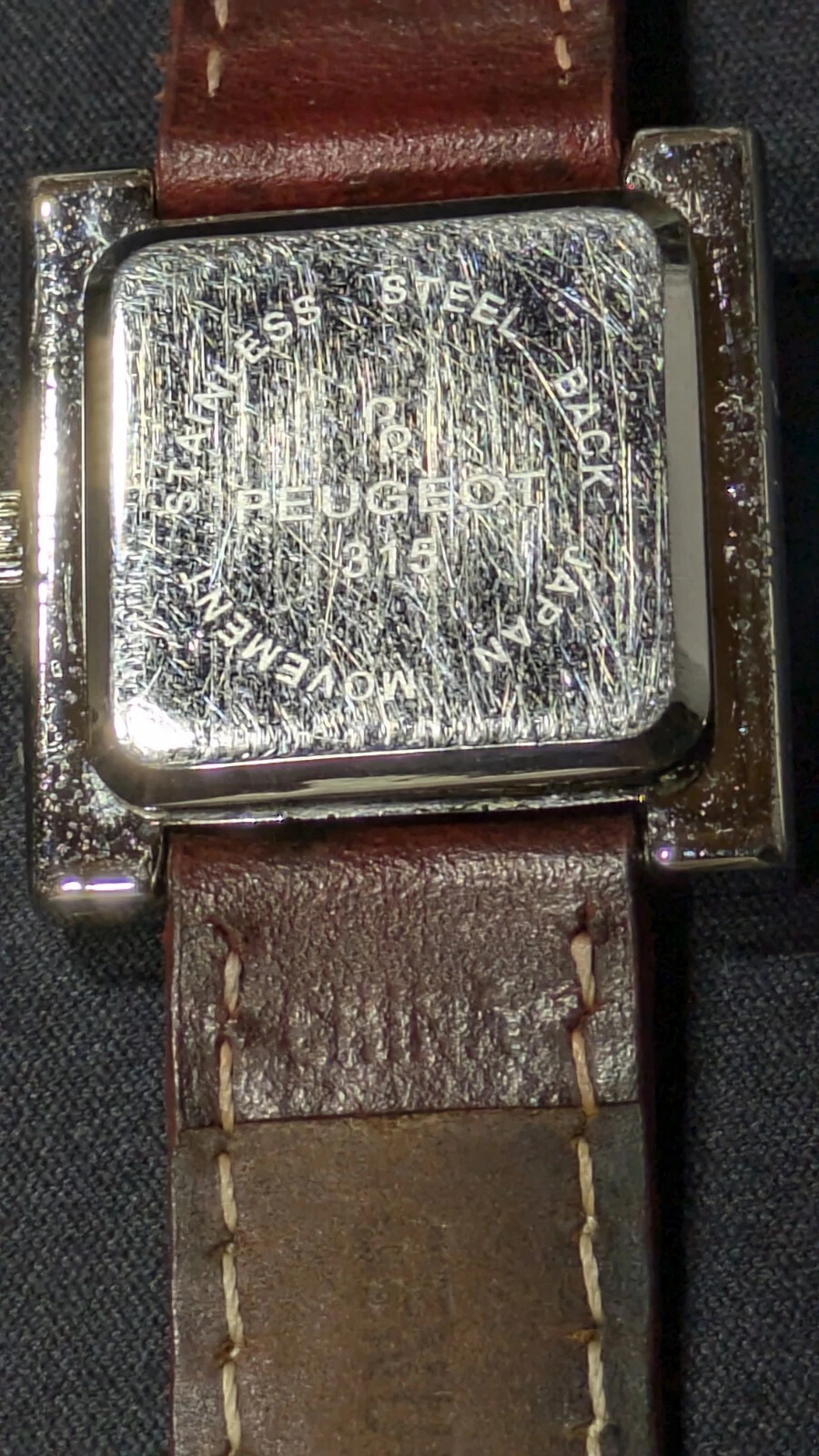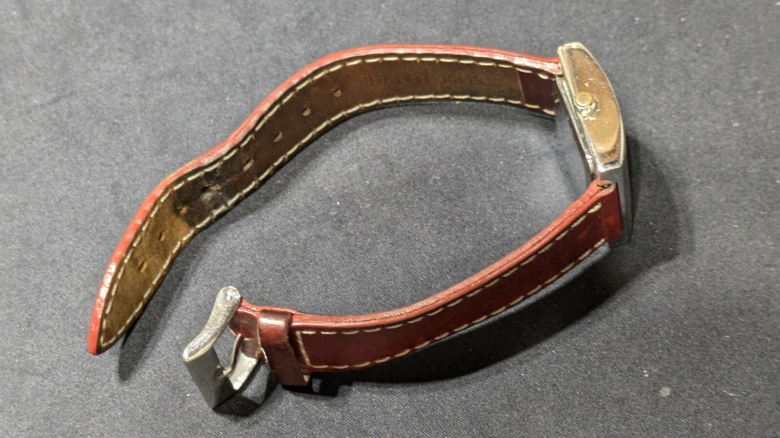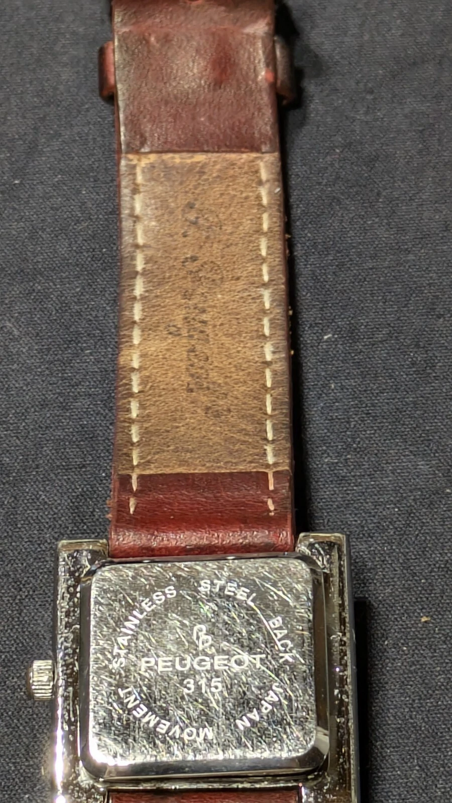 Peugeot Watch Women 16 mm Silver Tone Red Leathe Sz 7.1" Works New Battery