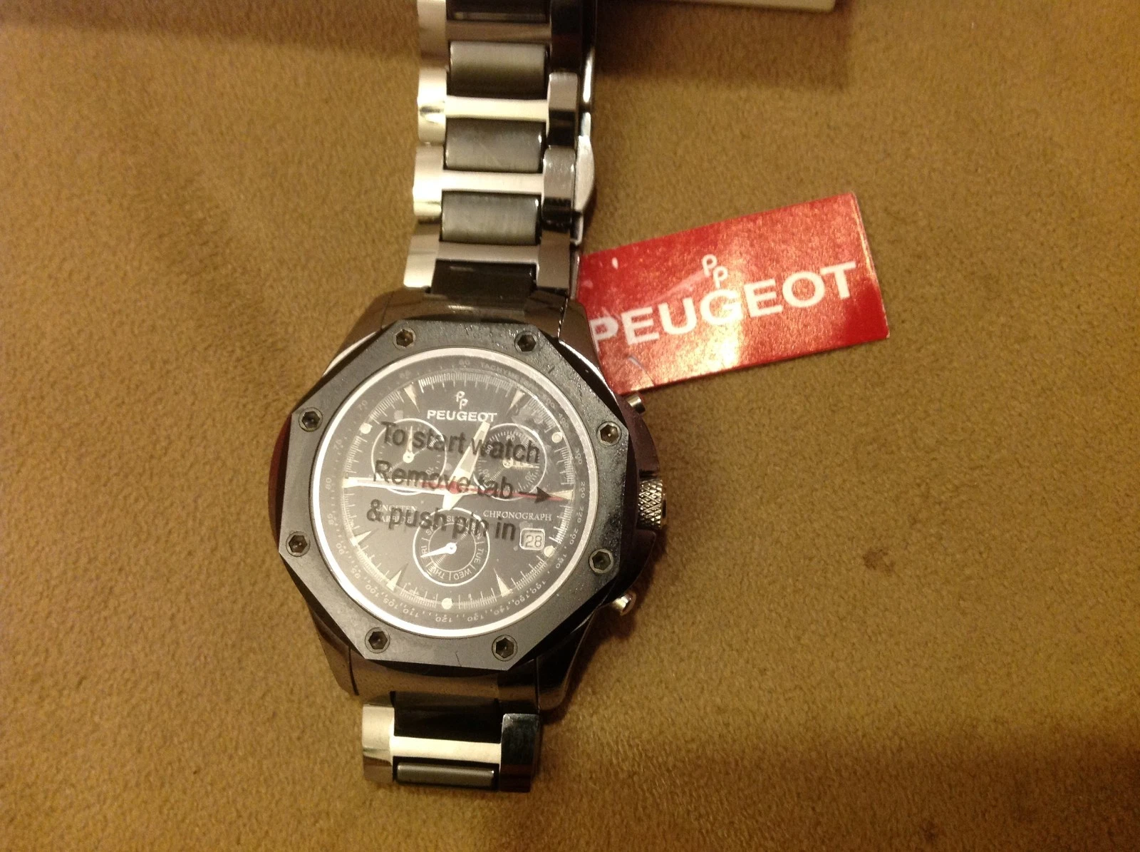 Peugeot Men's Tungsten/ Ceramic Link Swiss Movement Watch,Analog and chornogragh