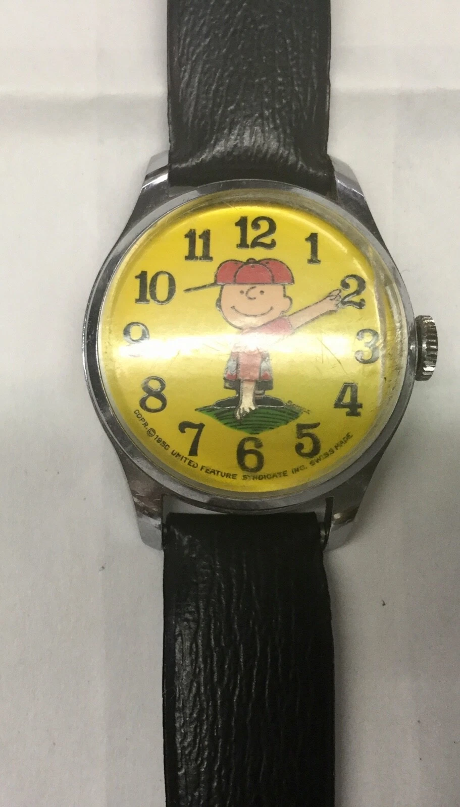 AMAZING 1950’s SCHULZ PEANUTS “CHARLIE BROWN” SWISS MECHANICAL WATCH WORKING