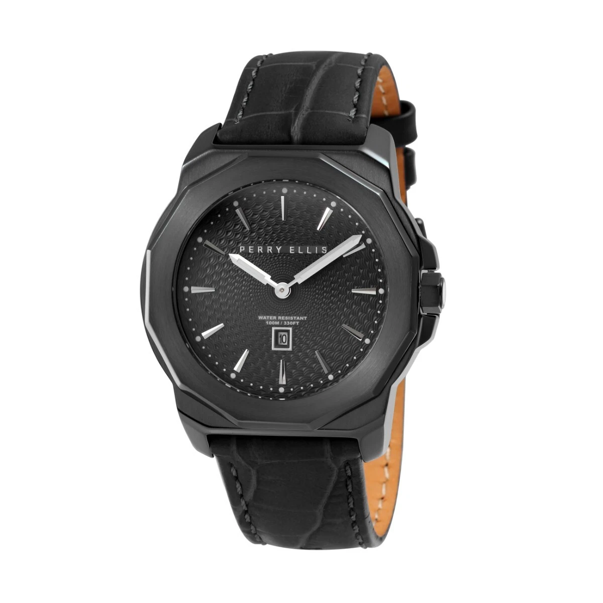 NEW Perry Ellis 46mm Decagon Black SS 100M WR Men's Watch PEW05006-01 Invicta