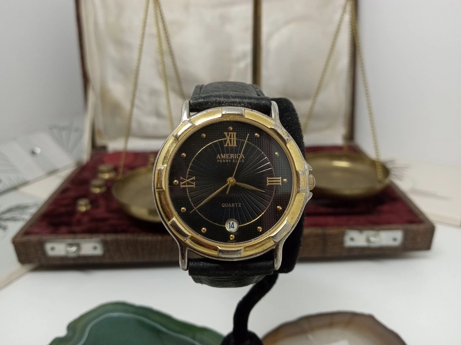 Perry Ellis America Men's Watch Rare Japan Gold & Black #UCC364 W/KREISLER BAND