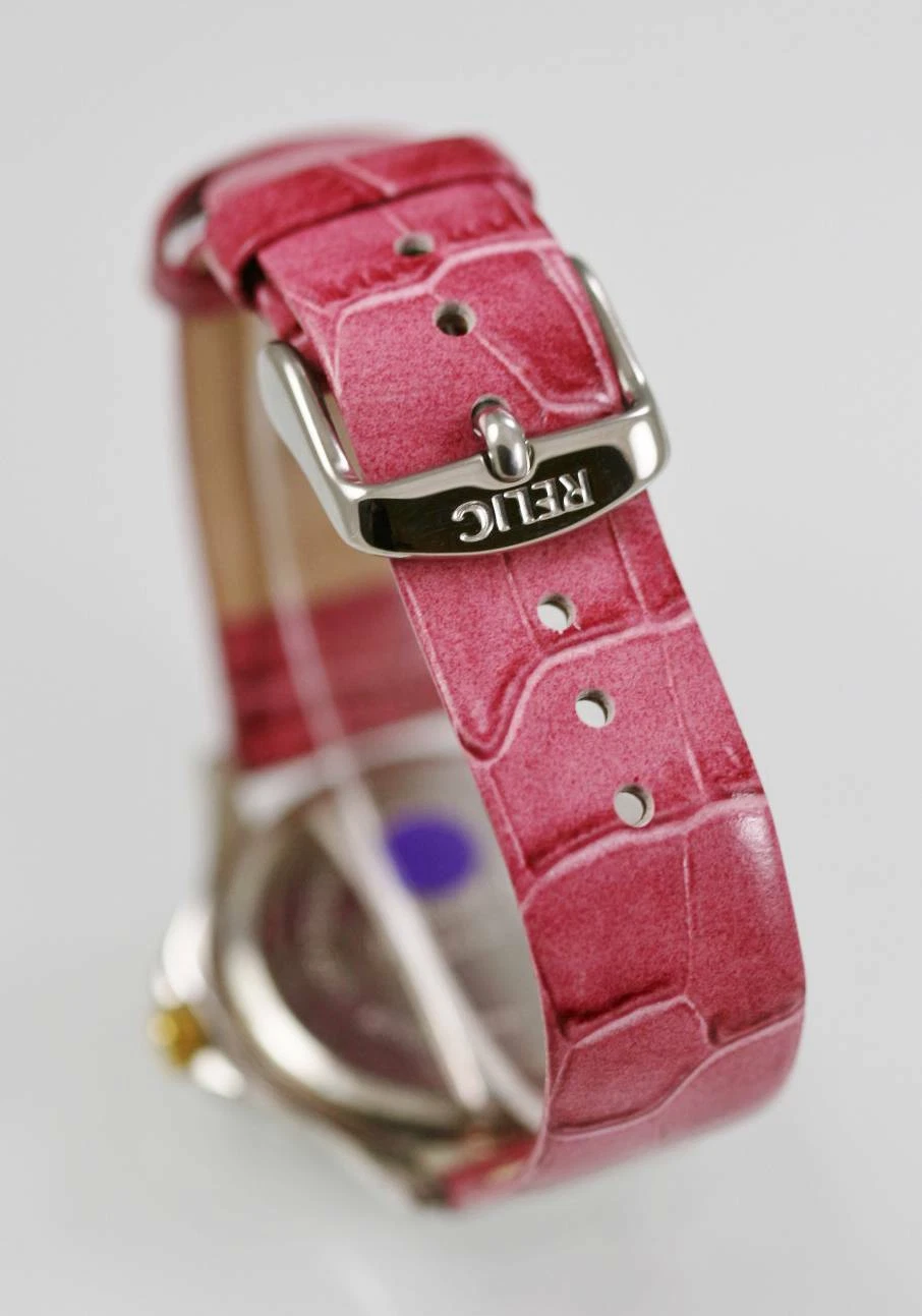 America Perry Ellis Watch Womens White Stainless Silver Gold Pink Leather Quartz