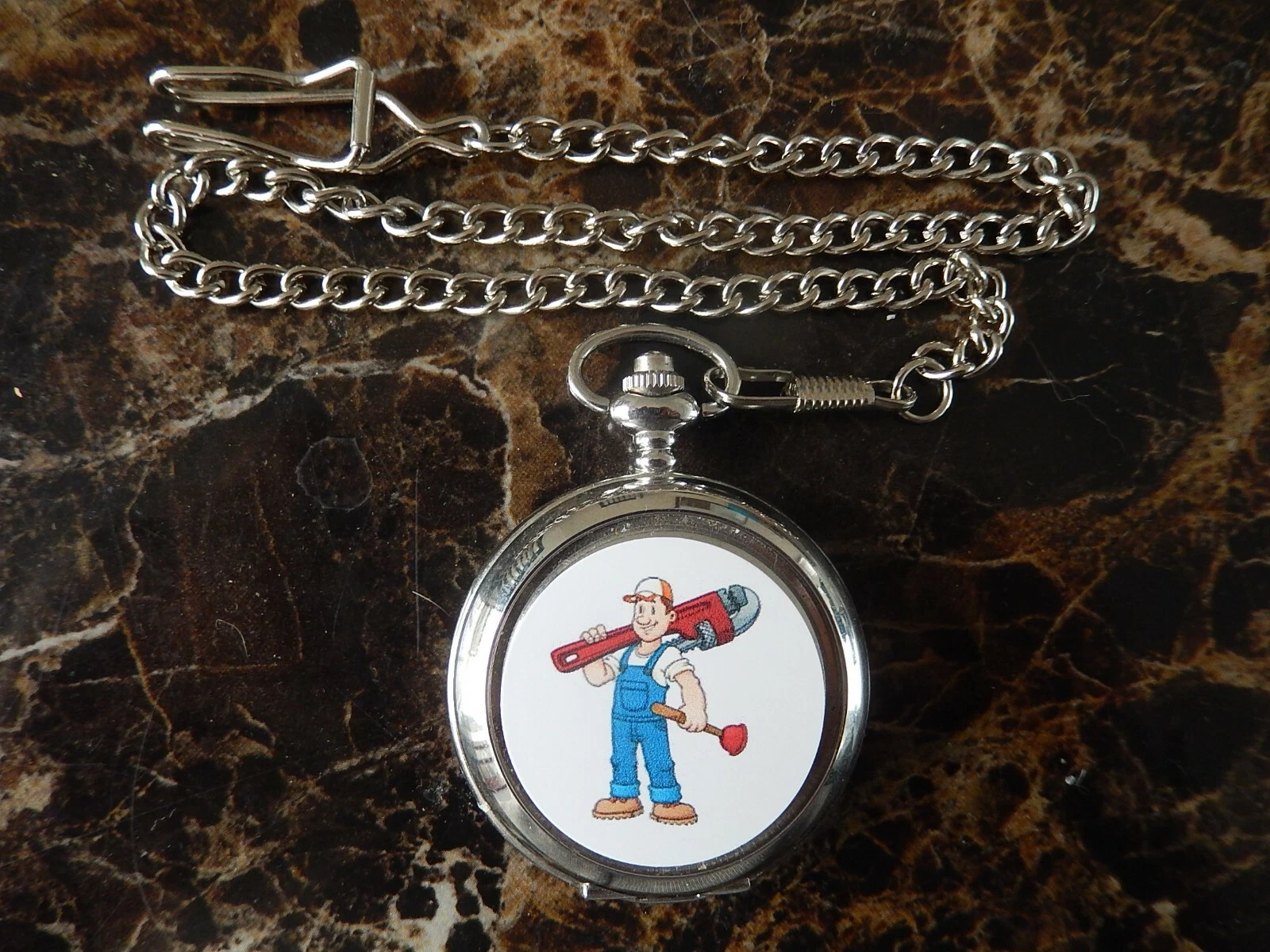 PLUMBER CHROME POCKET WATCH WITH CHAIN (NEW)