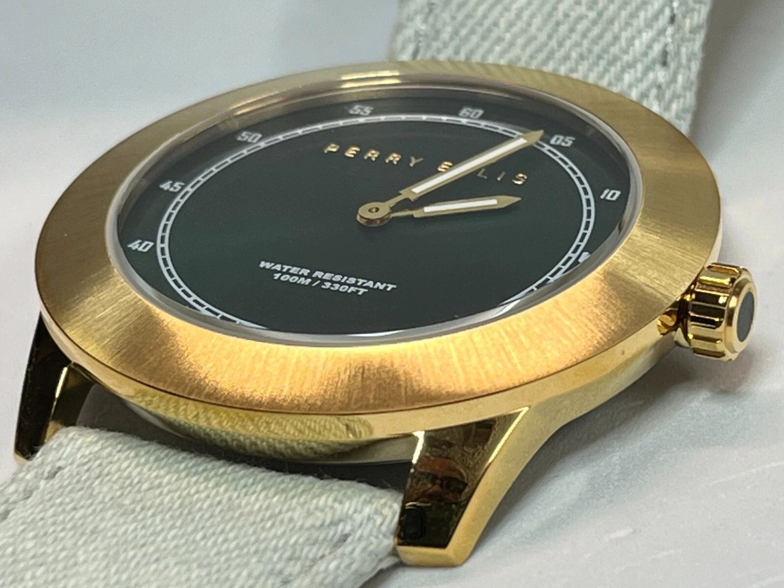 Mens's Watch Perry Ellis Slim Line GOLD Stainless Steel 44mm PEW11003-04 10ATM