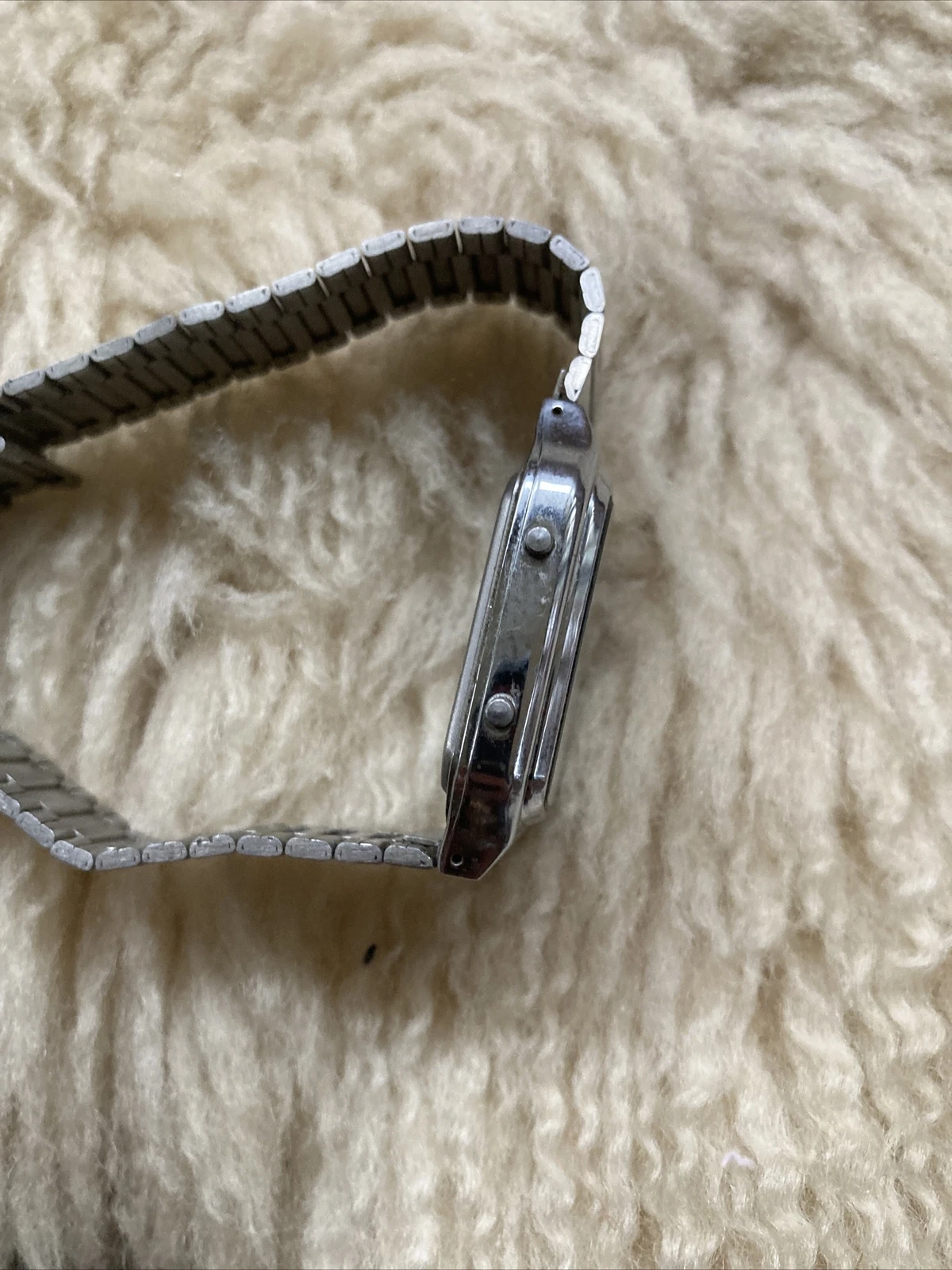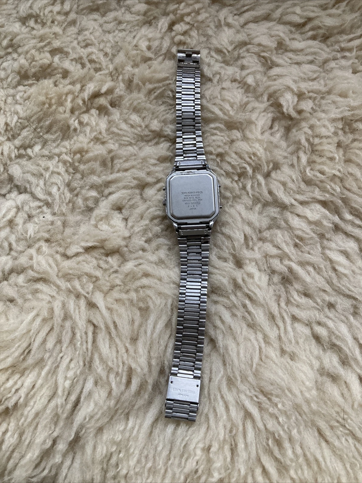 Vintage Phasar Men Silver Analog Digital Quartz Alarm Chrono Watch Sears Japan