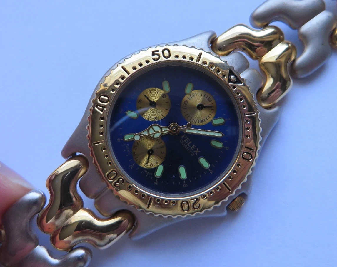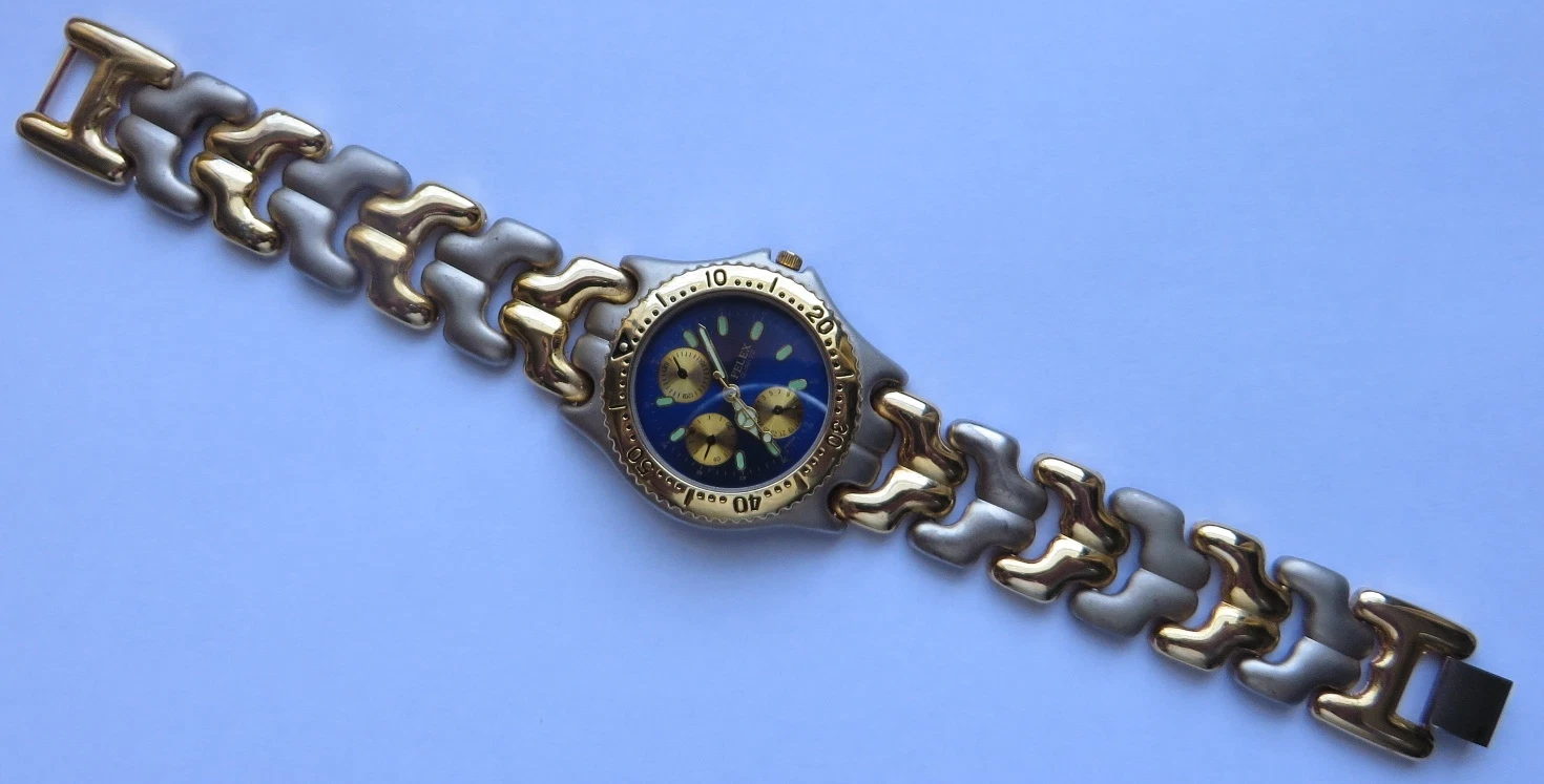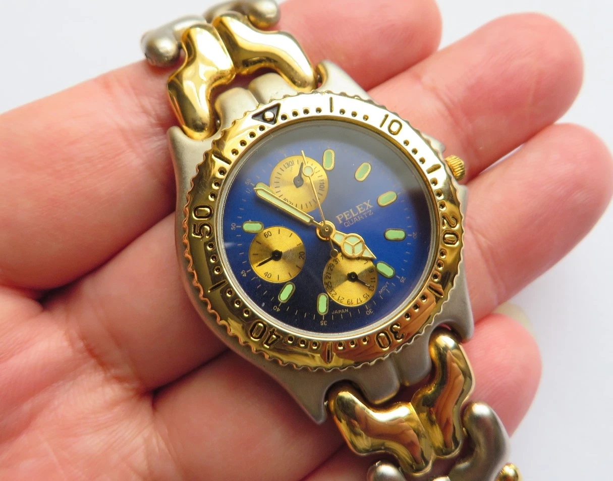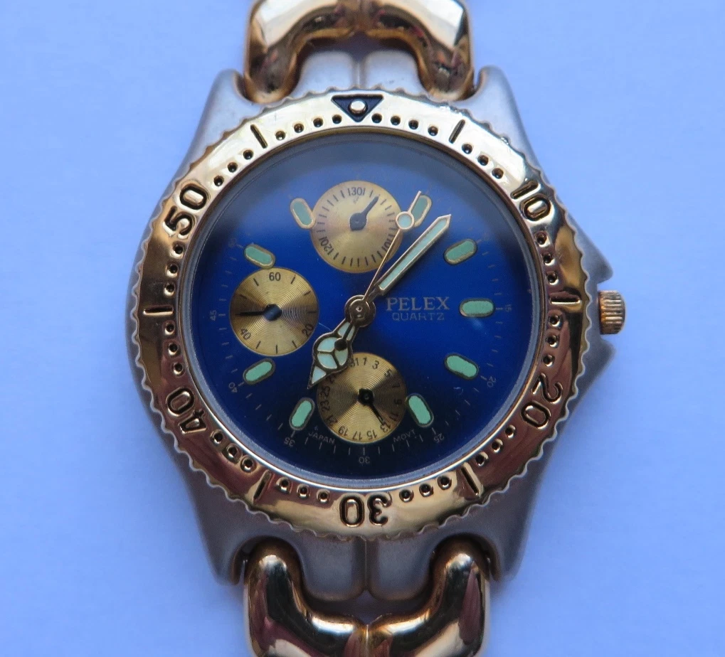 Pelex Blue Quartz Gents Watch, Original Gold Two Toned Strap,TMI Movt. SINGAPORE