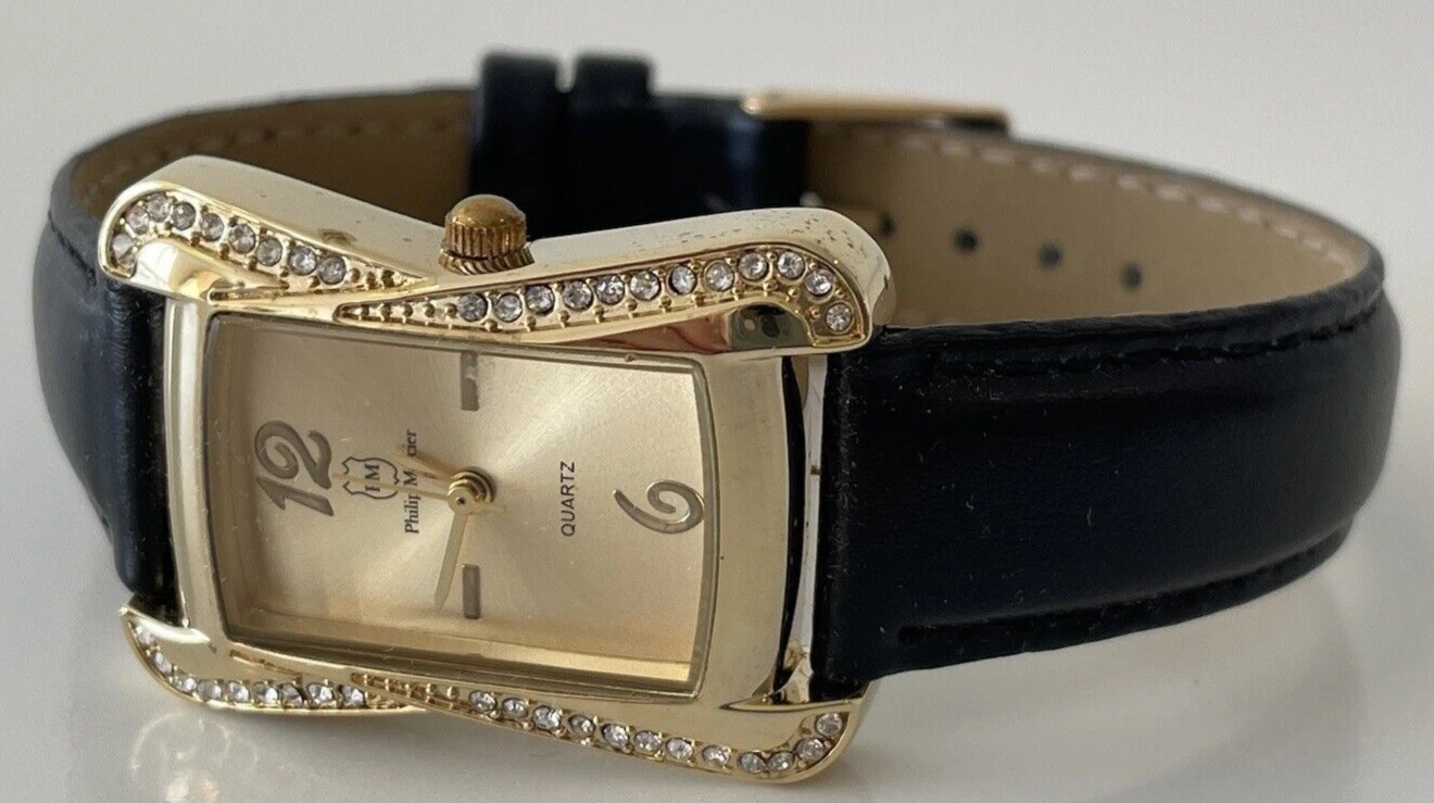 Ladies Philip Mercier Stainless Steel Quartz Gold Watch Diamanté CY-973X-CNL NEW