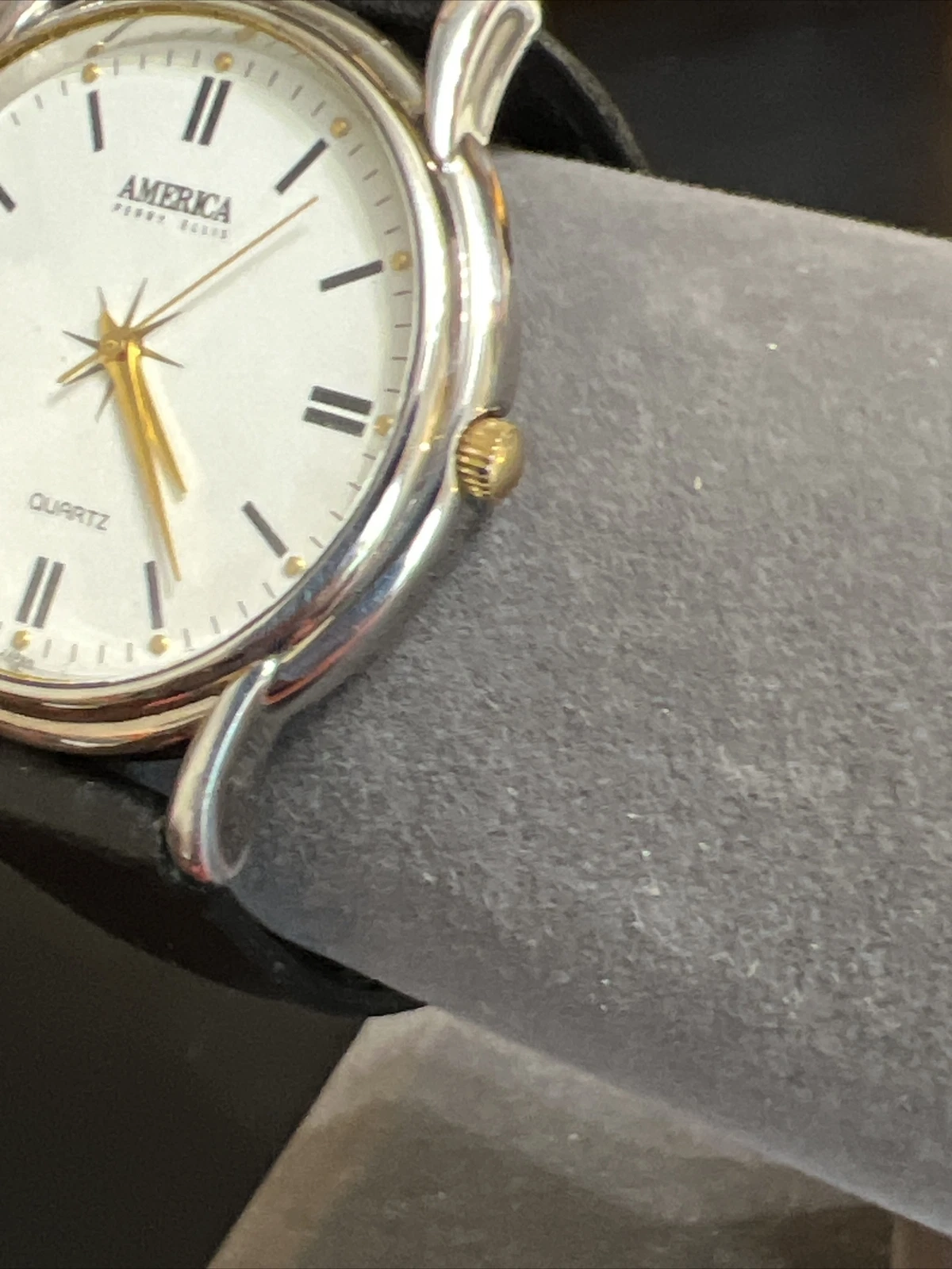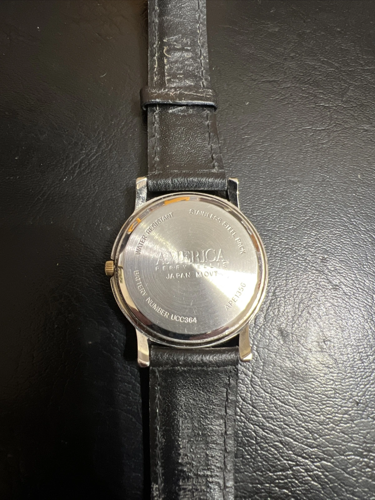 Rare America Perry Ellis Watch Mens Stainless Steel  Original Leather Strap