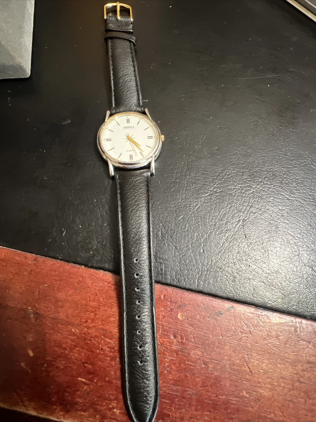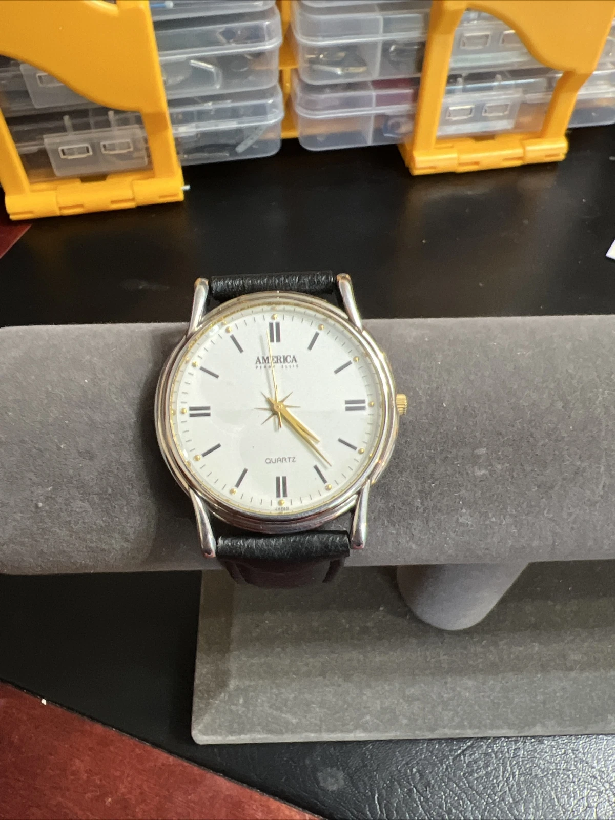 Rare America Perry Ellis Watch Mens Stainless Steel Original Leather Strap