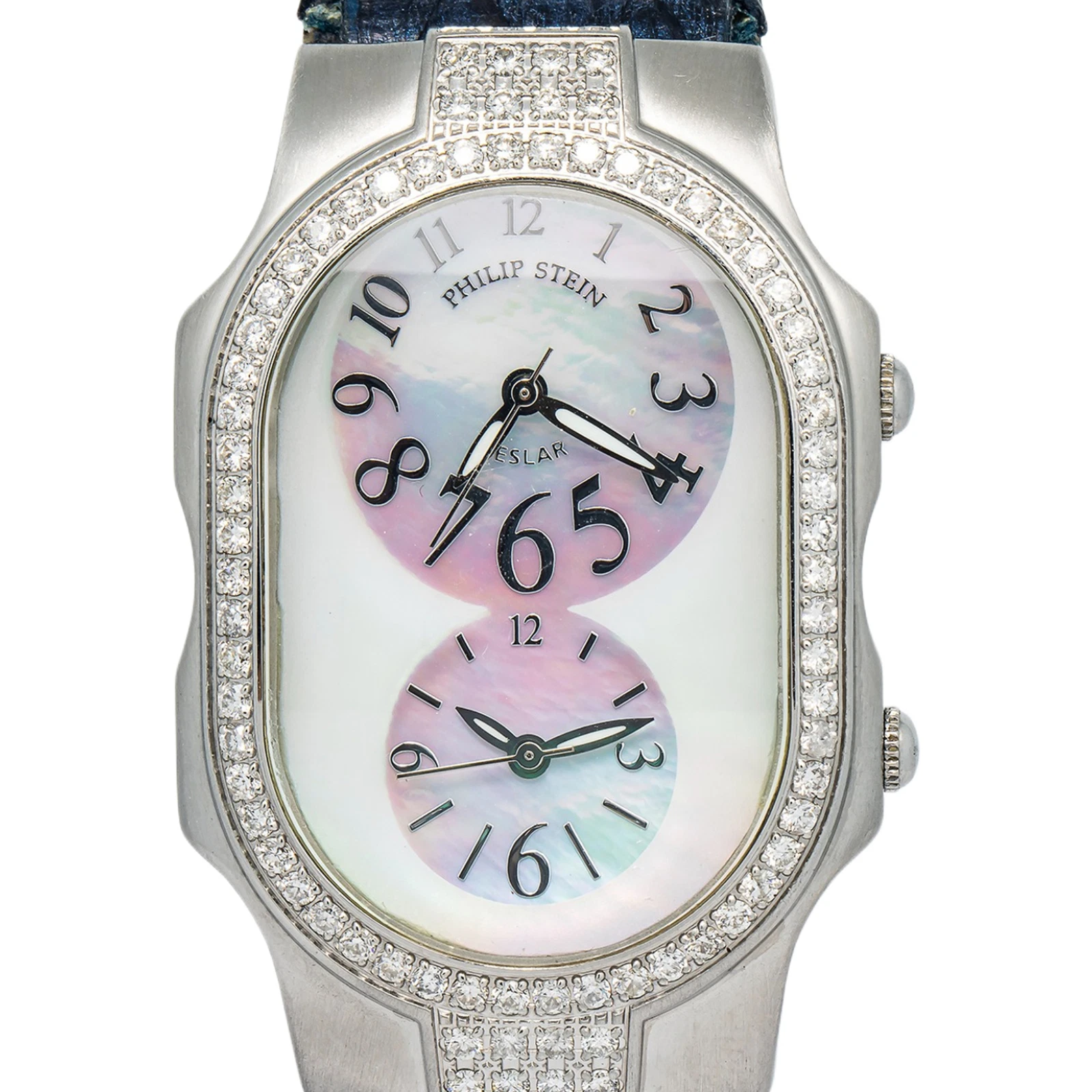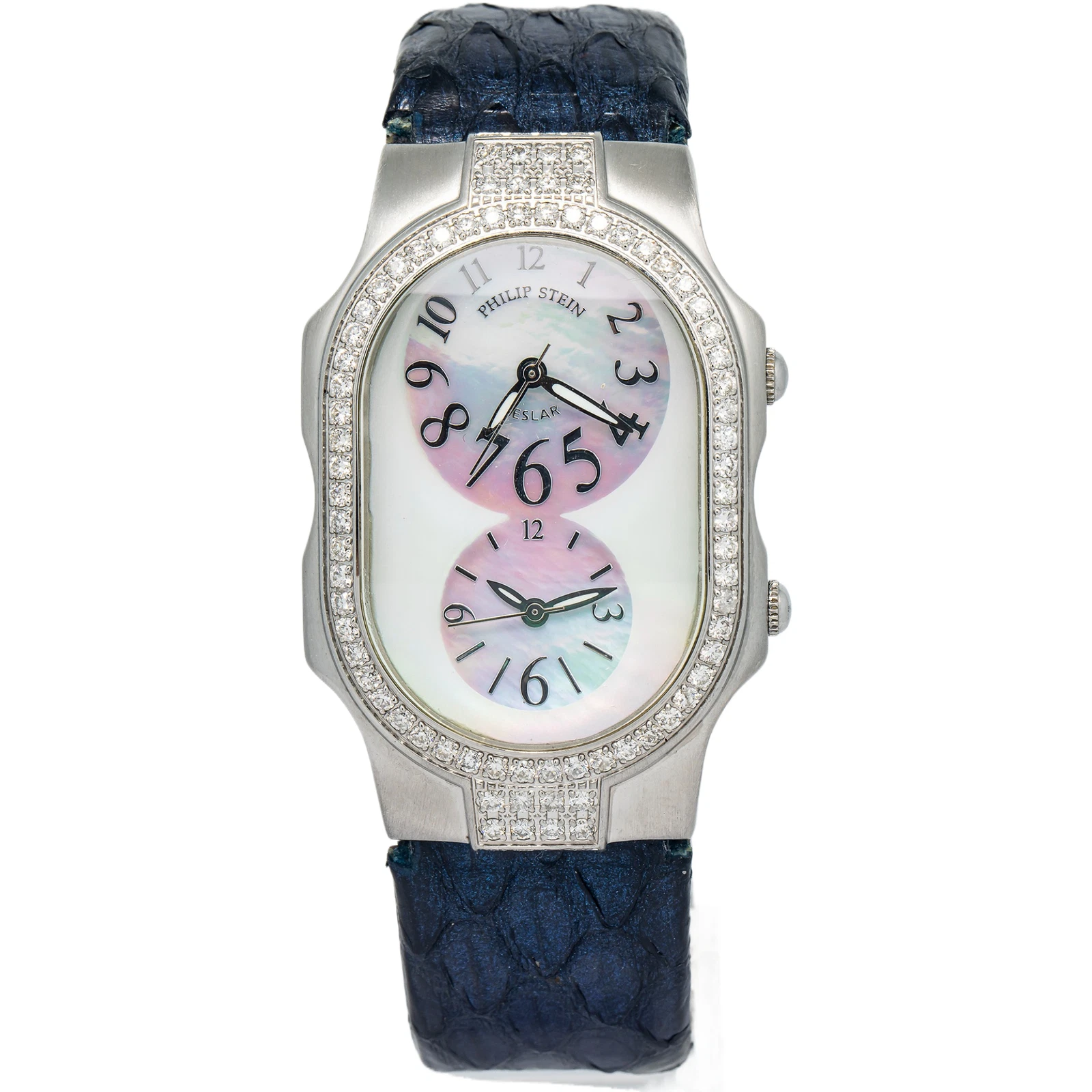 Philips Stein Teslar Large Stainless Diamond Bezel MOP Dual Dial Quartz 32mm