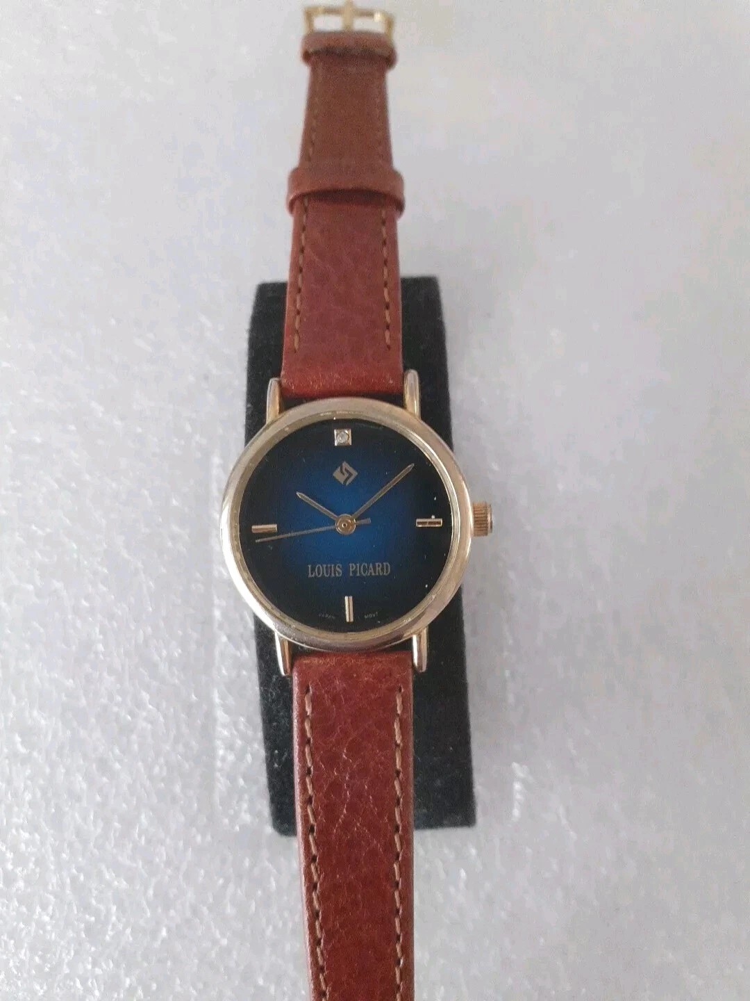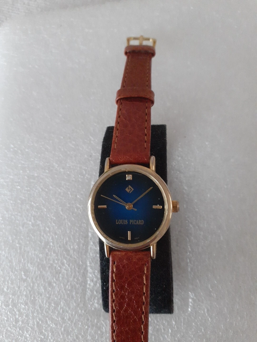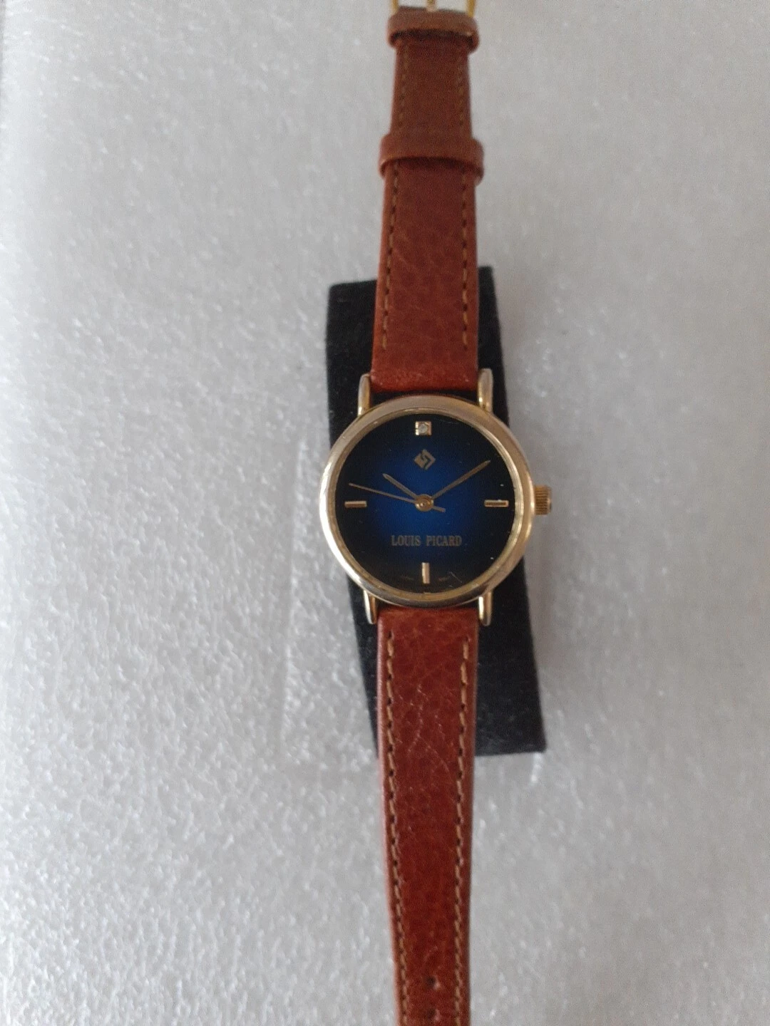 LOUIS PICARD Ladies Gold Tone Quartz Watch With A Dark Blue Dial And New Leather