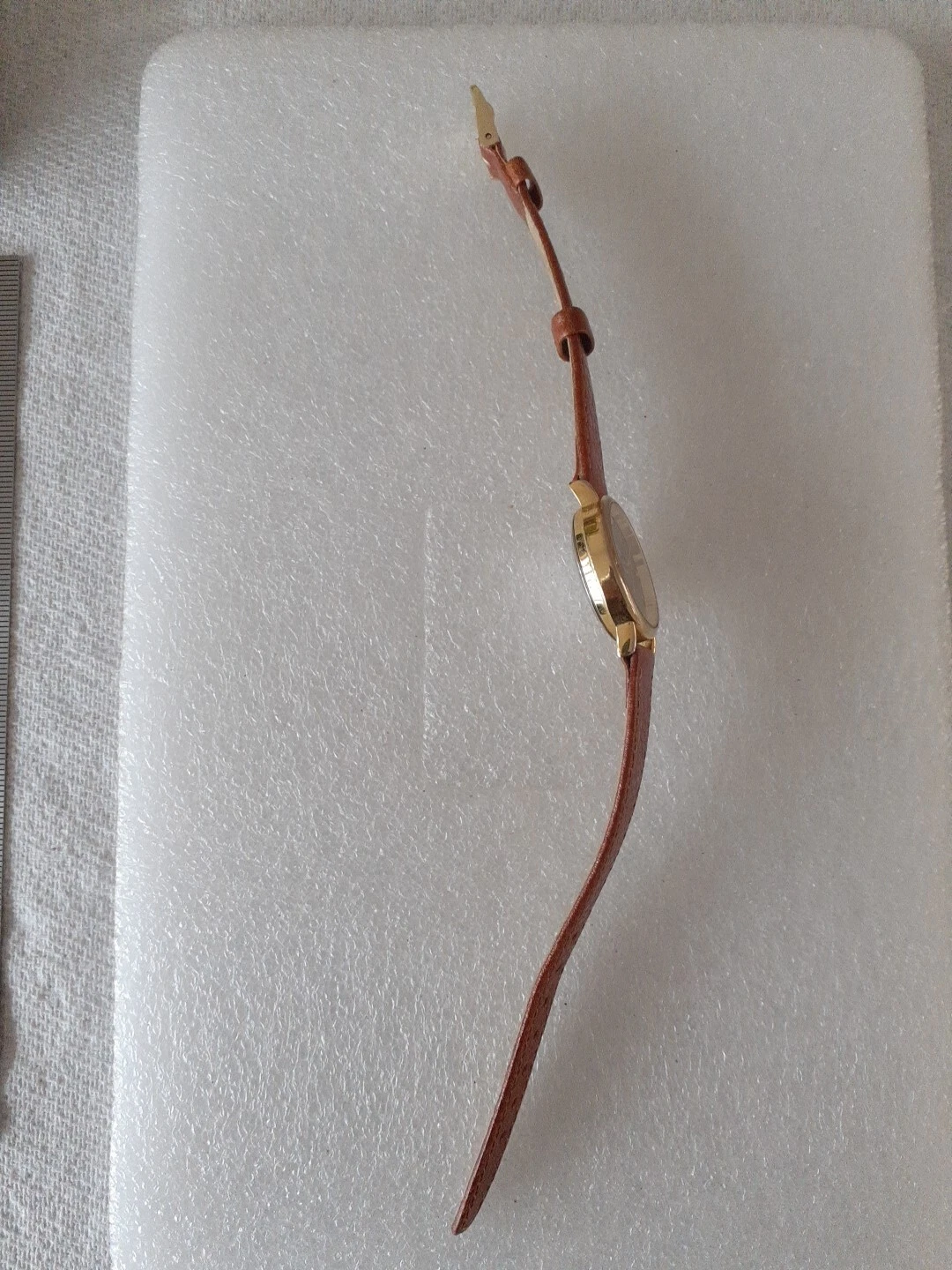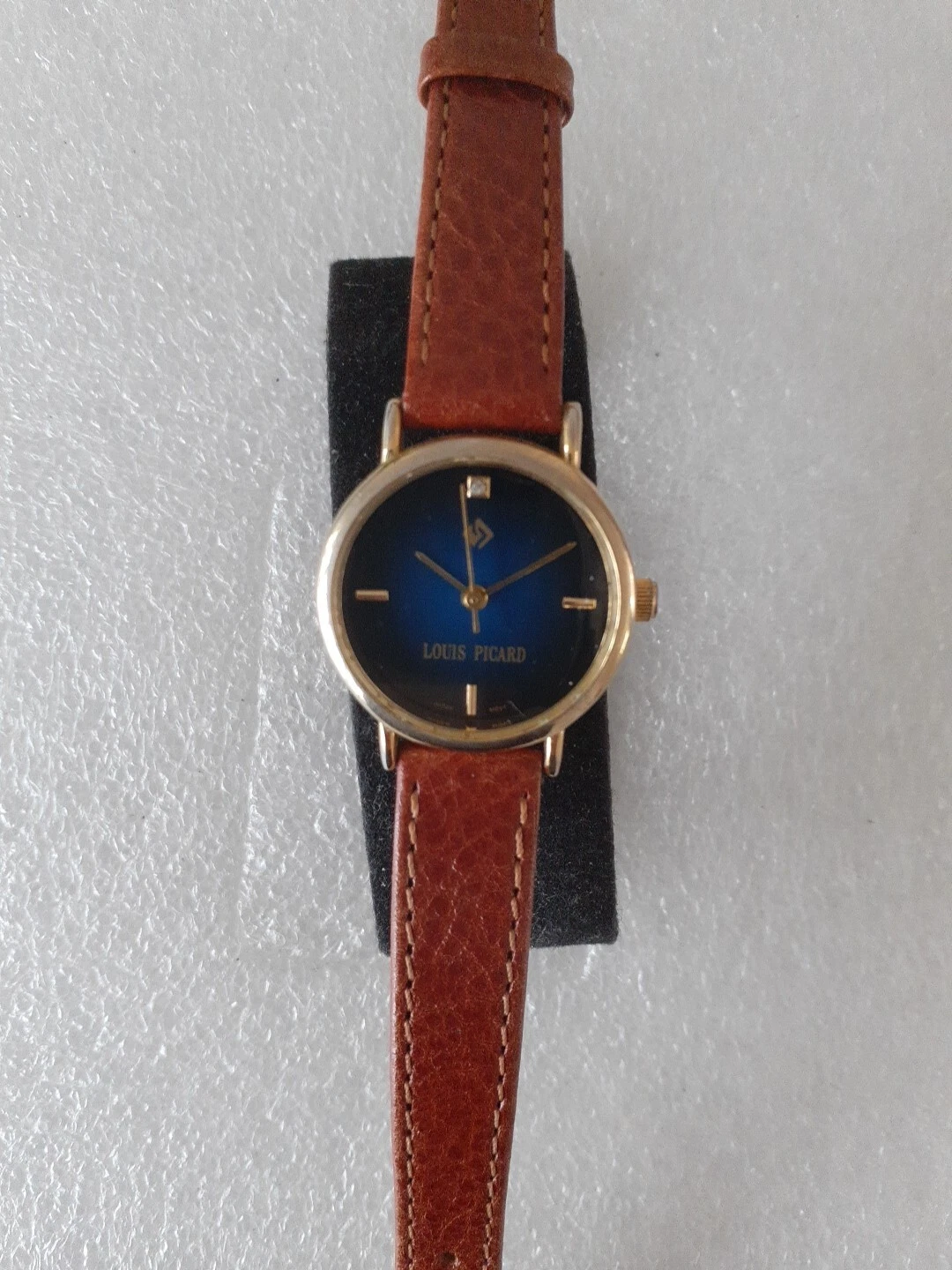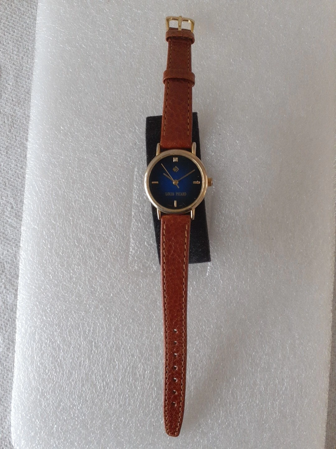 LOUIS PICARD Ladies Gold Tone Quartz Watch With A Dark Blue Dial And New Leather