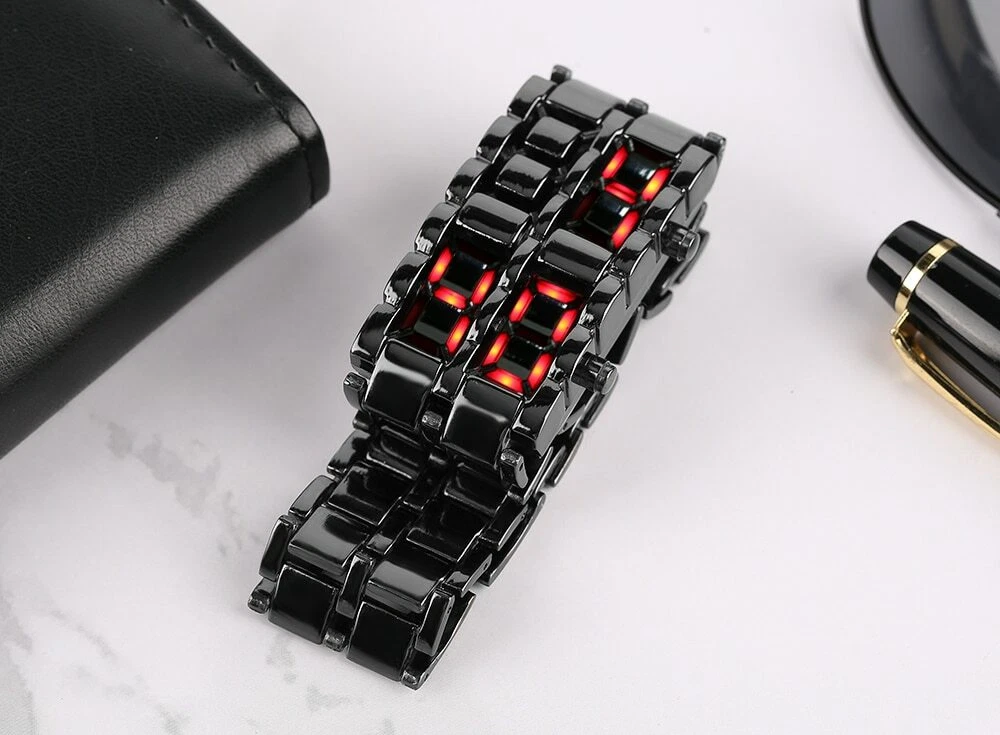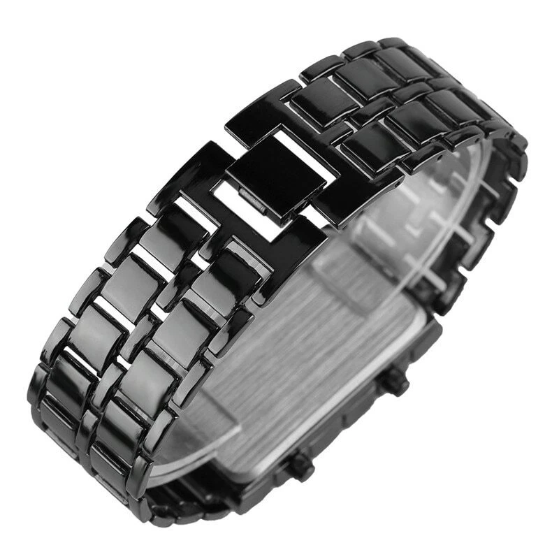 Reloj De Pulsera De Lava Digital Negro Metal De Hierro LED Rojo Para Hombre Niño