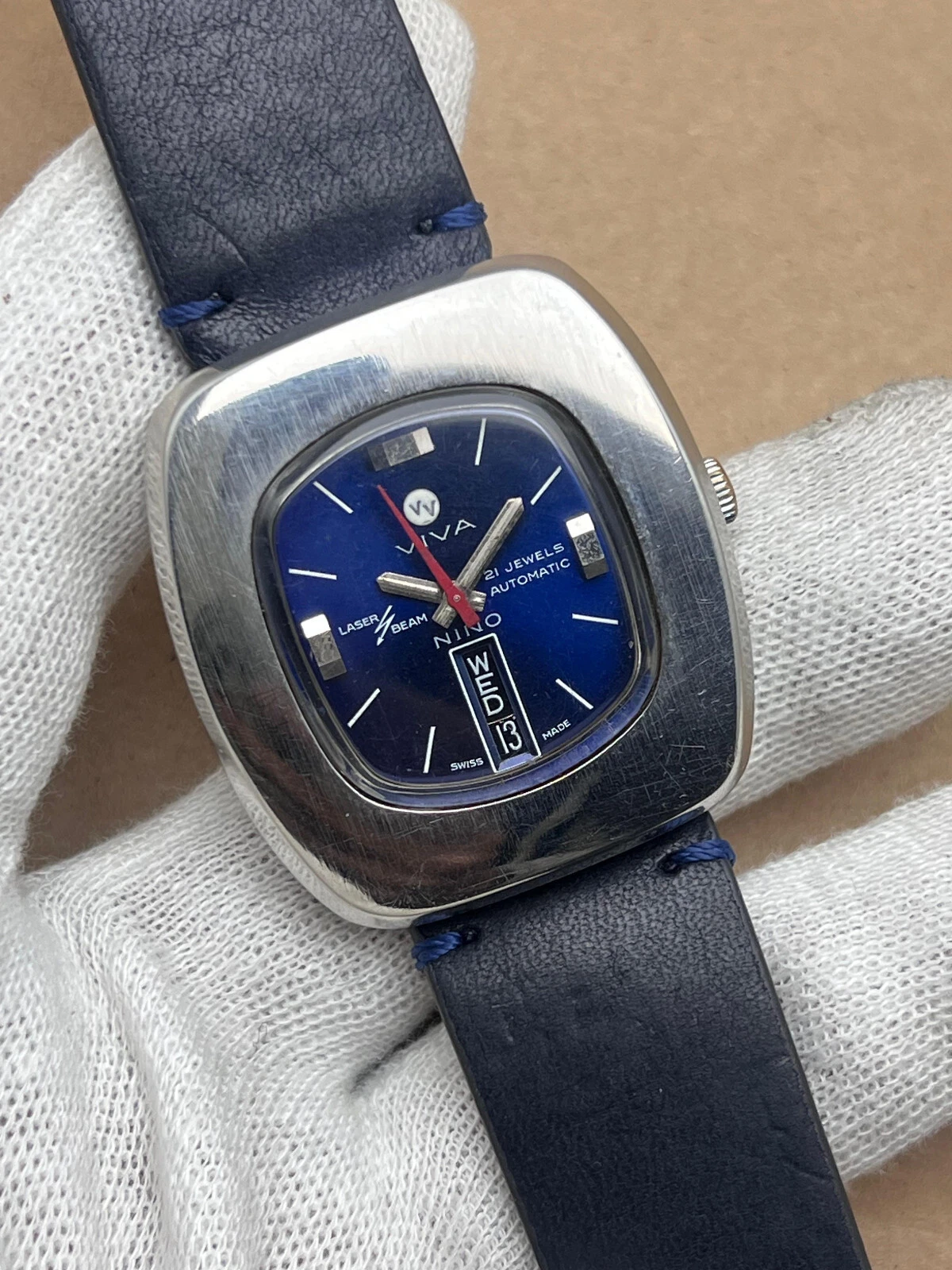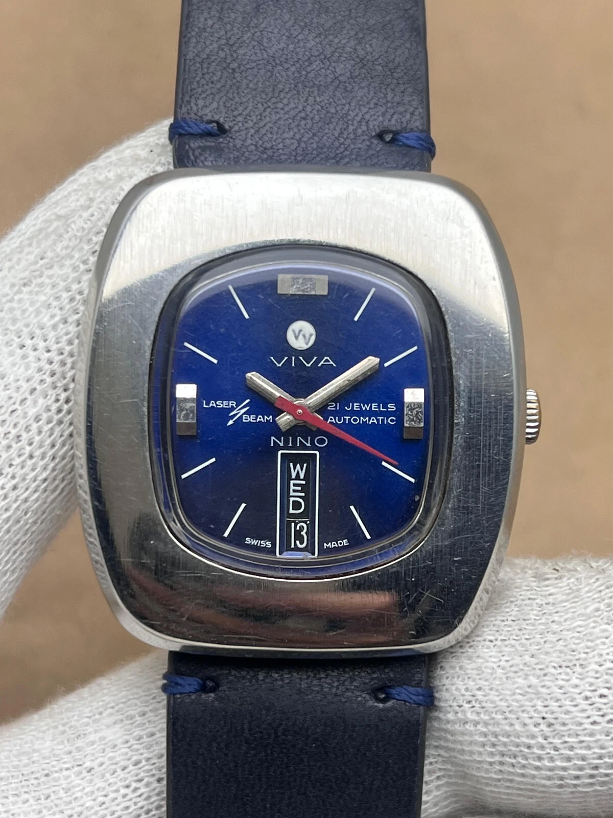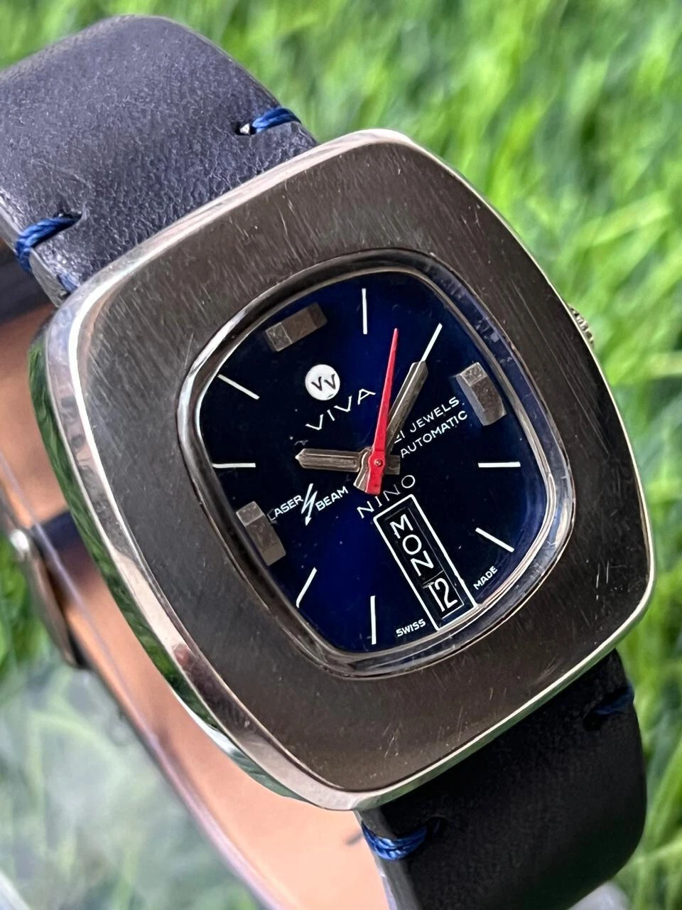 Vintage VIVA NINO Automatic 21 Jewels Day/Date Laser Beam Swiss Made Men's Watch