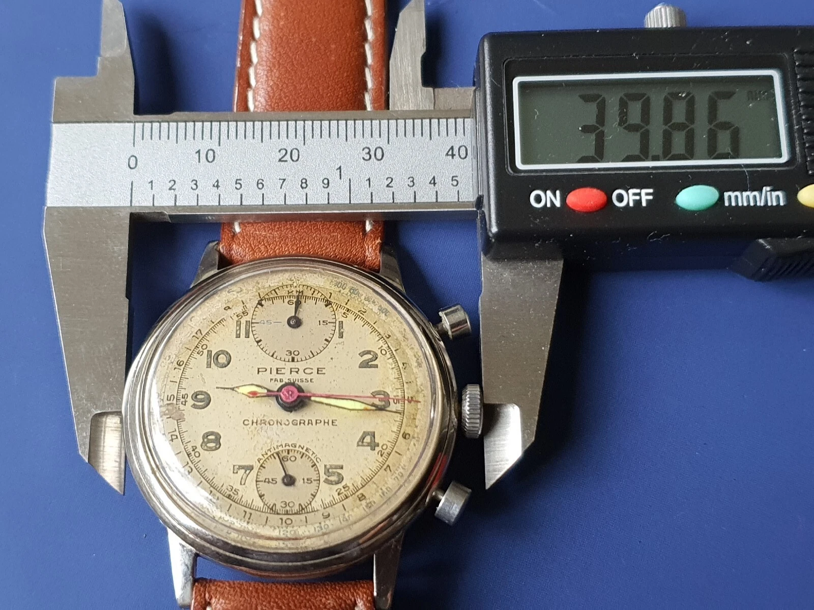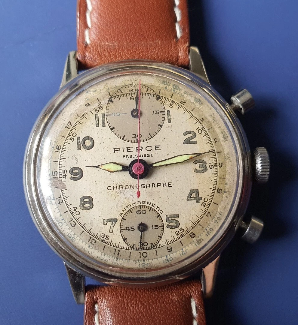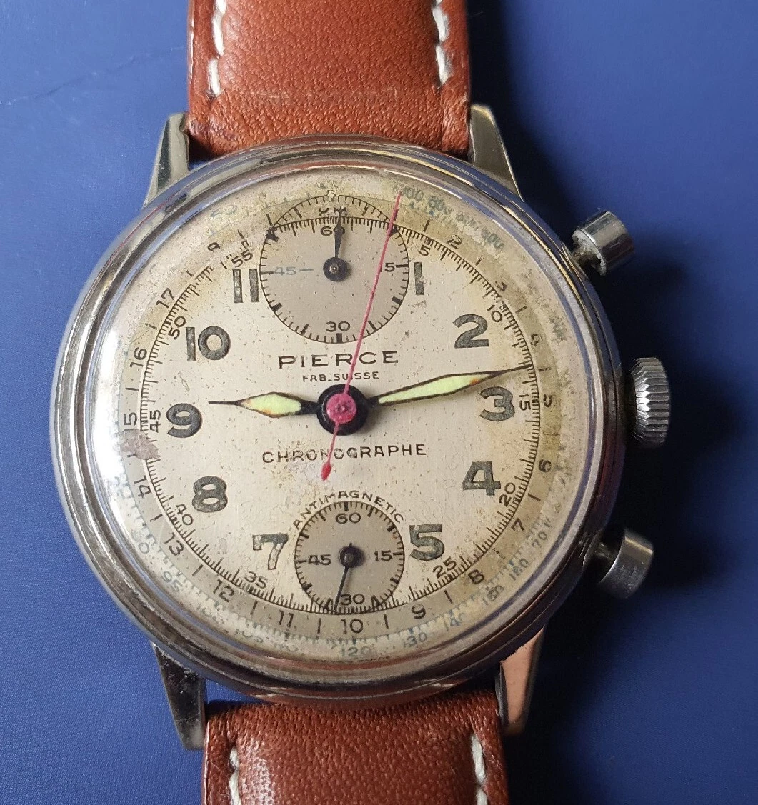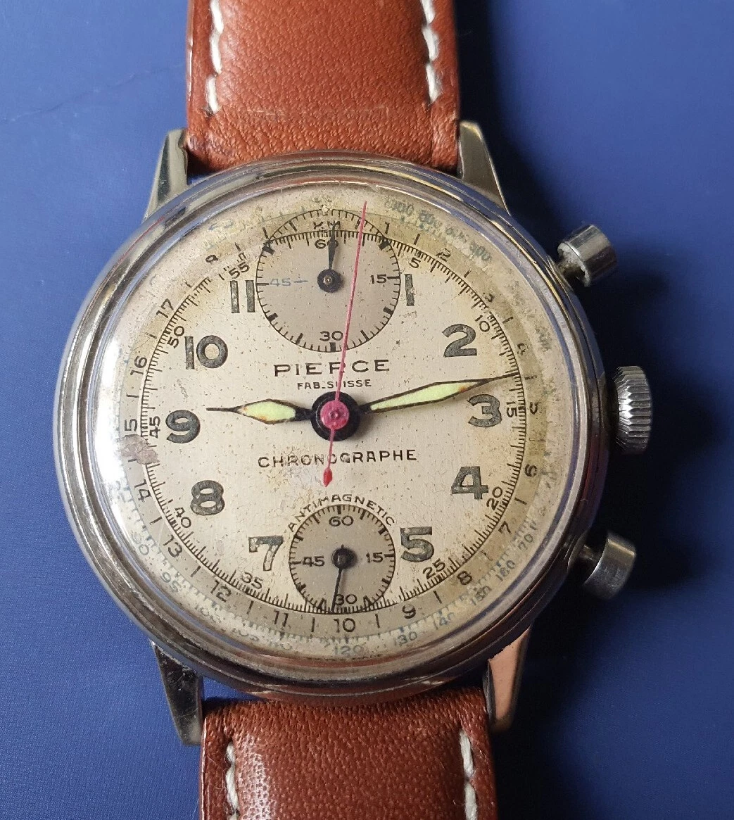 Vintage Mens PIERCE Chronographe Swiss Watch Hand Winding Manual Wristwatch