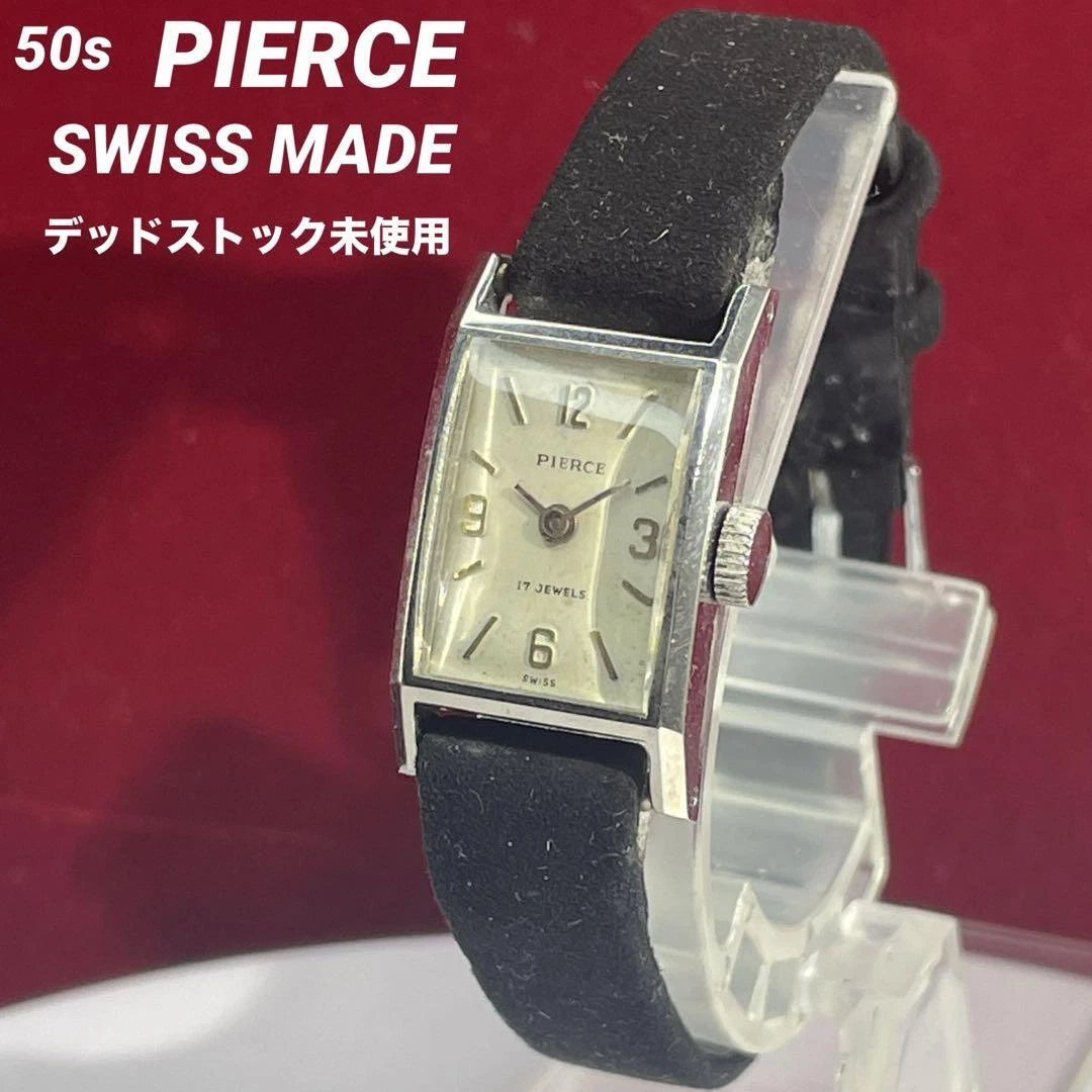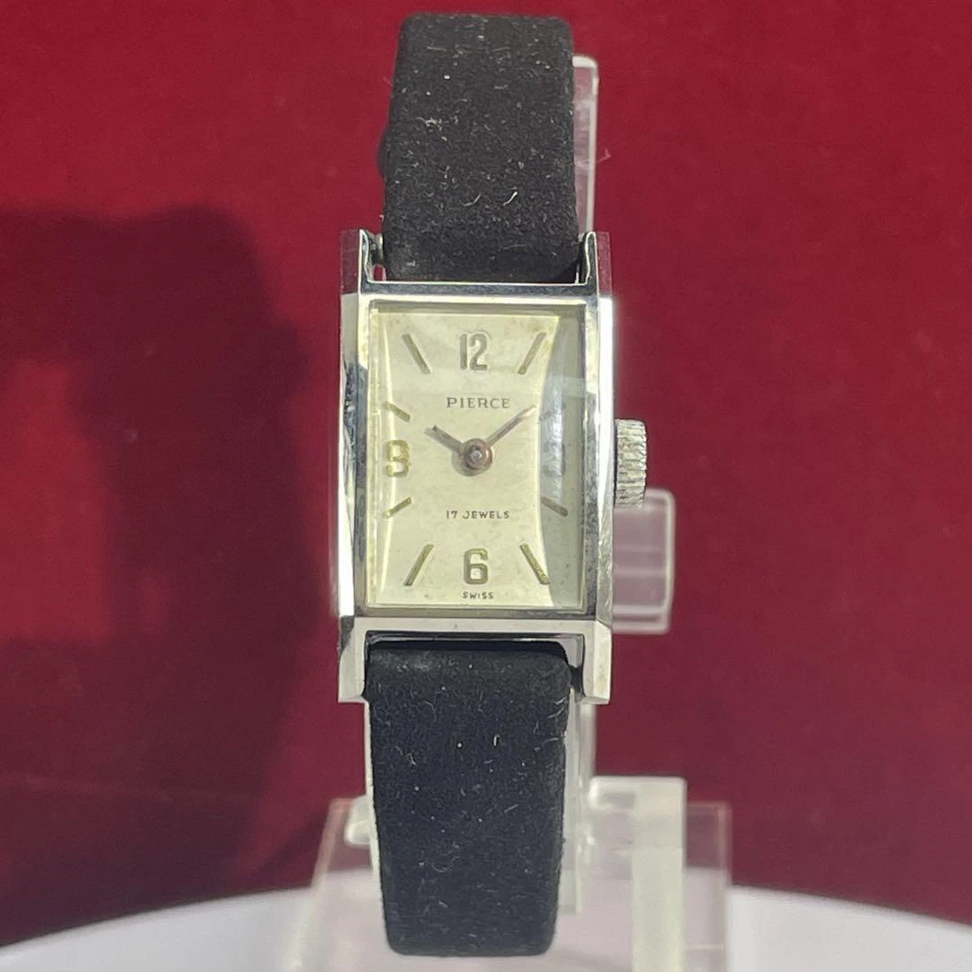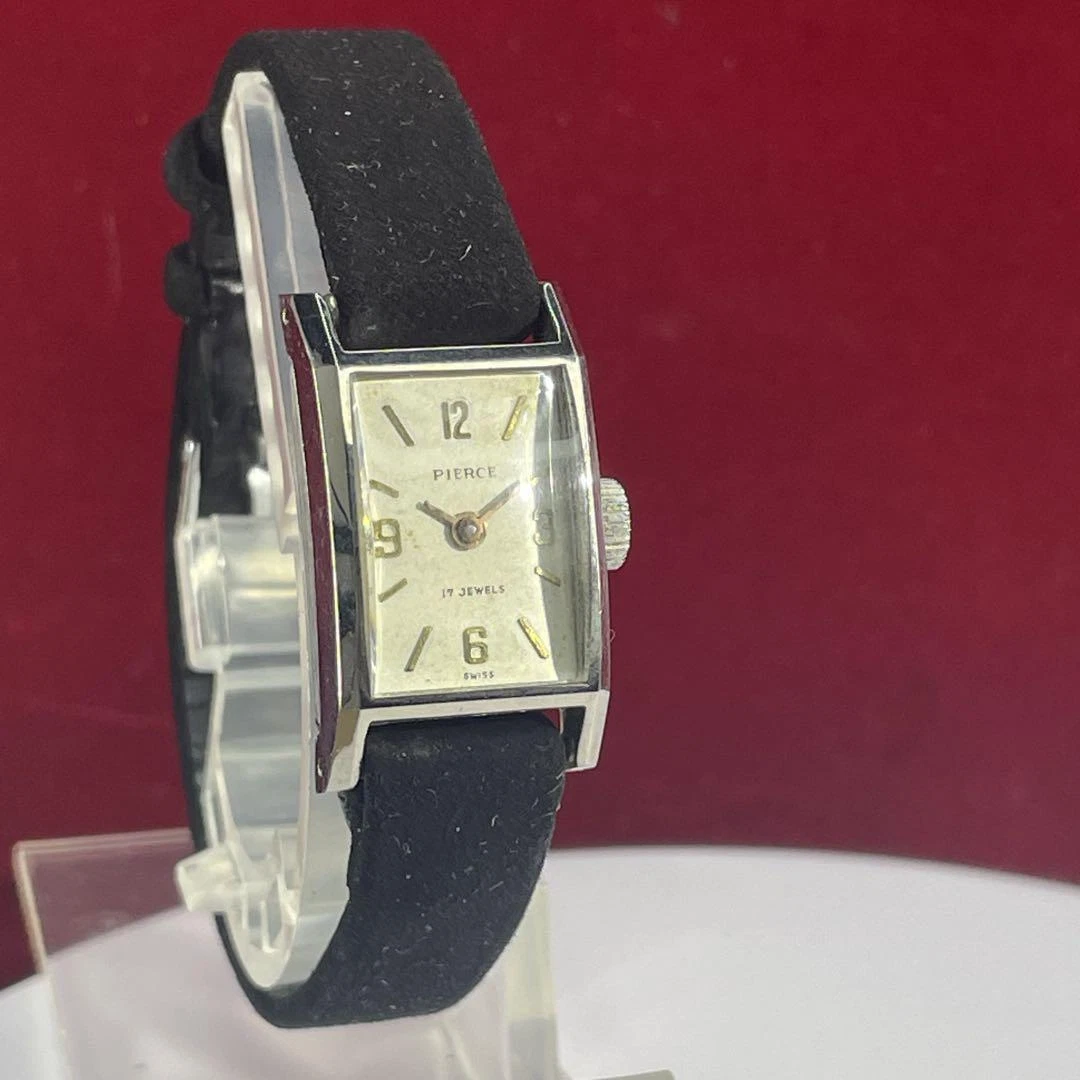 PIERCE 17-JEWEL WRISTWATCH LADIES SWISS MADE HAND-WOUND 1950S ANTIQUE SQUARE