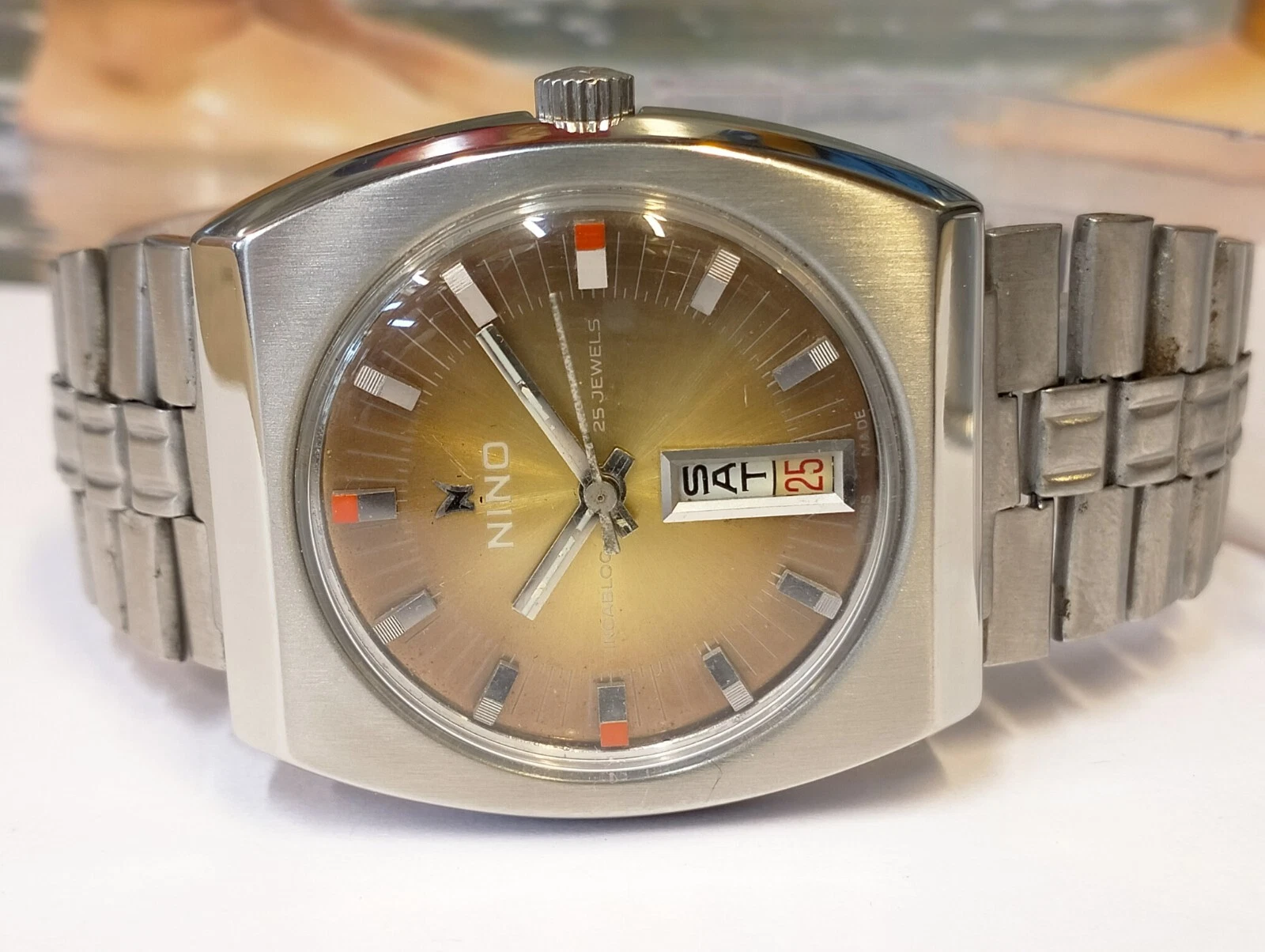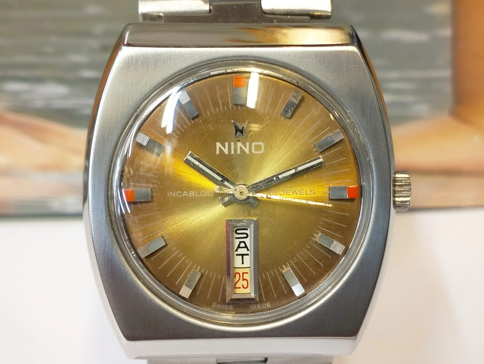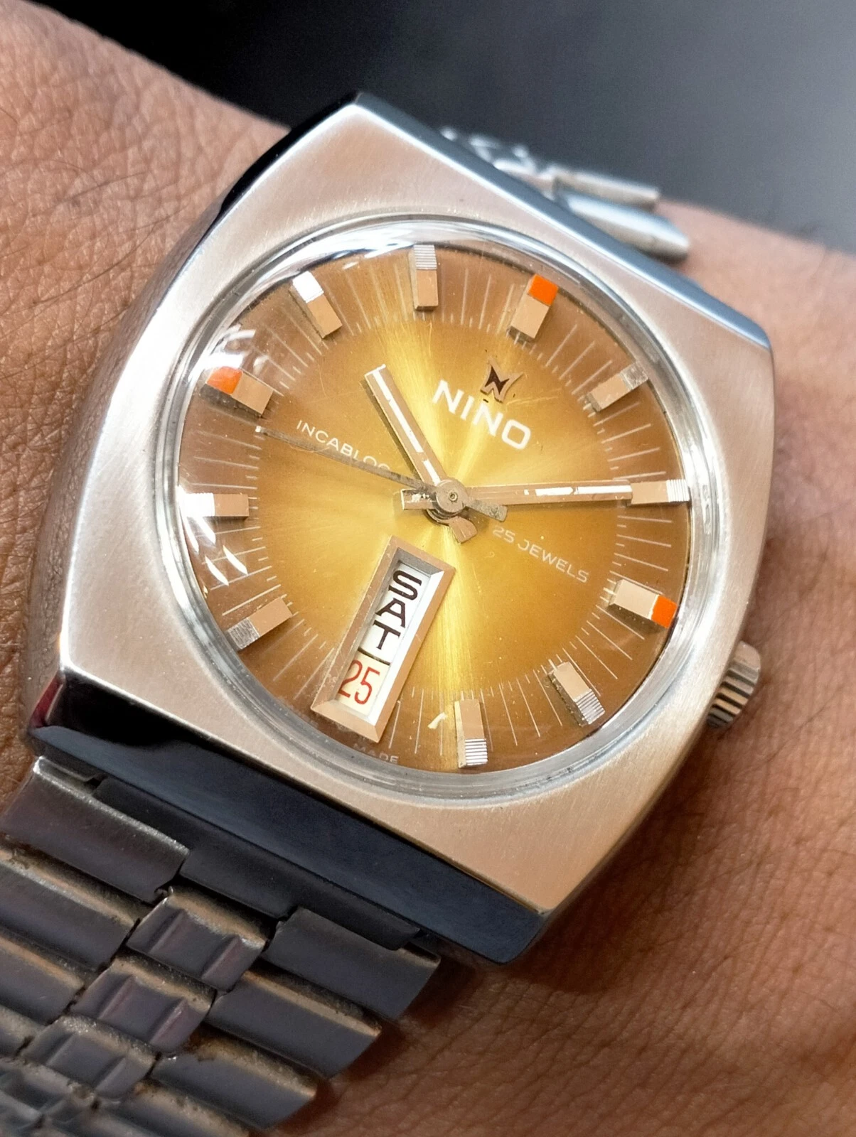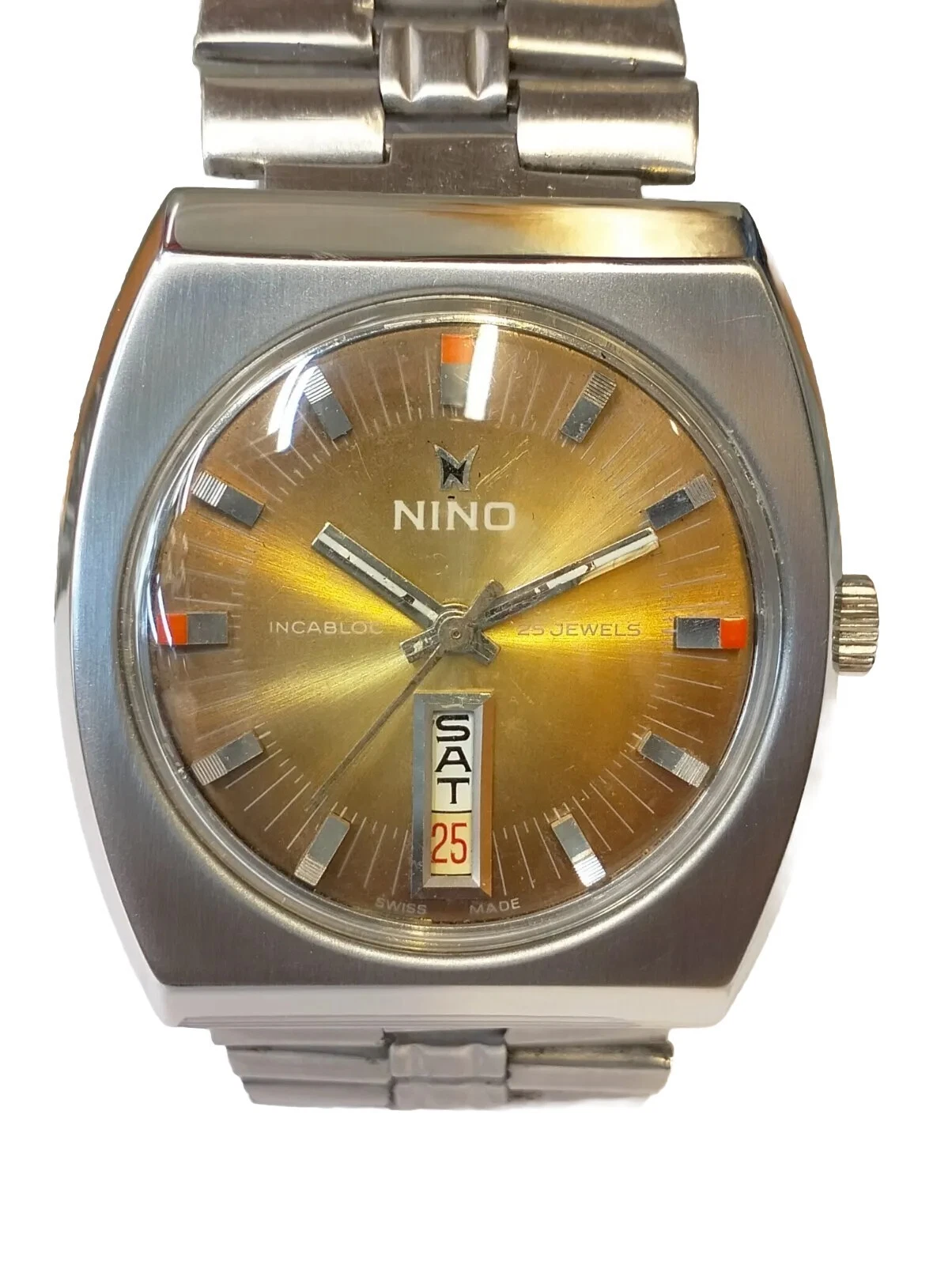 AUTHENTIC NINO 25 JEWELS AUTOMATIC BROWN DIAL SWISS MEN'S FULL WORKING VINTAGE