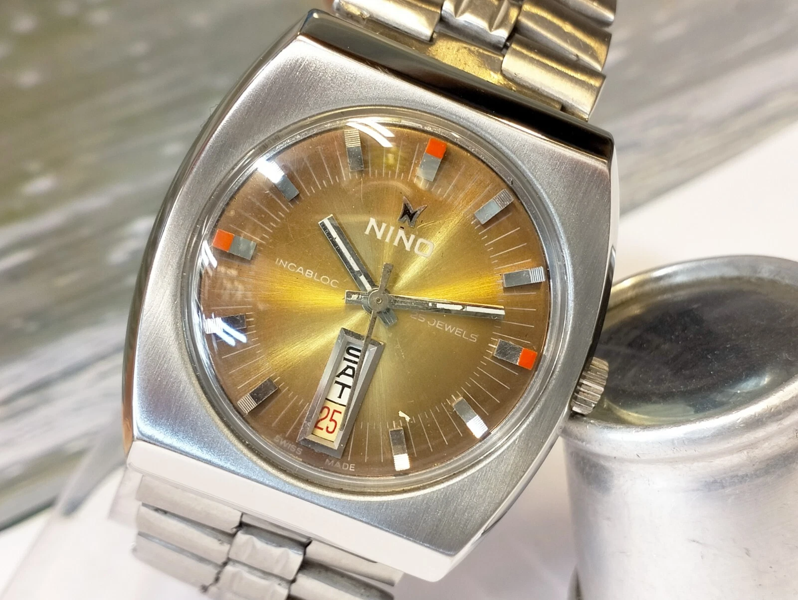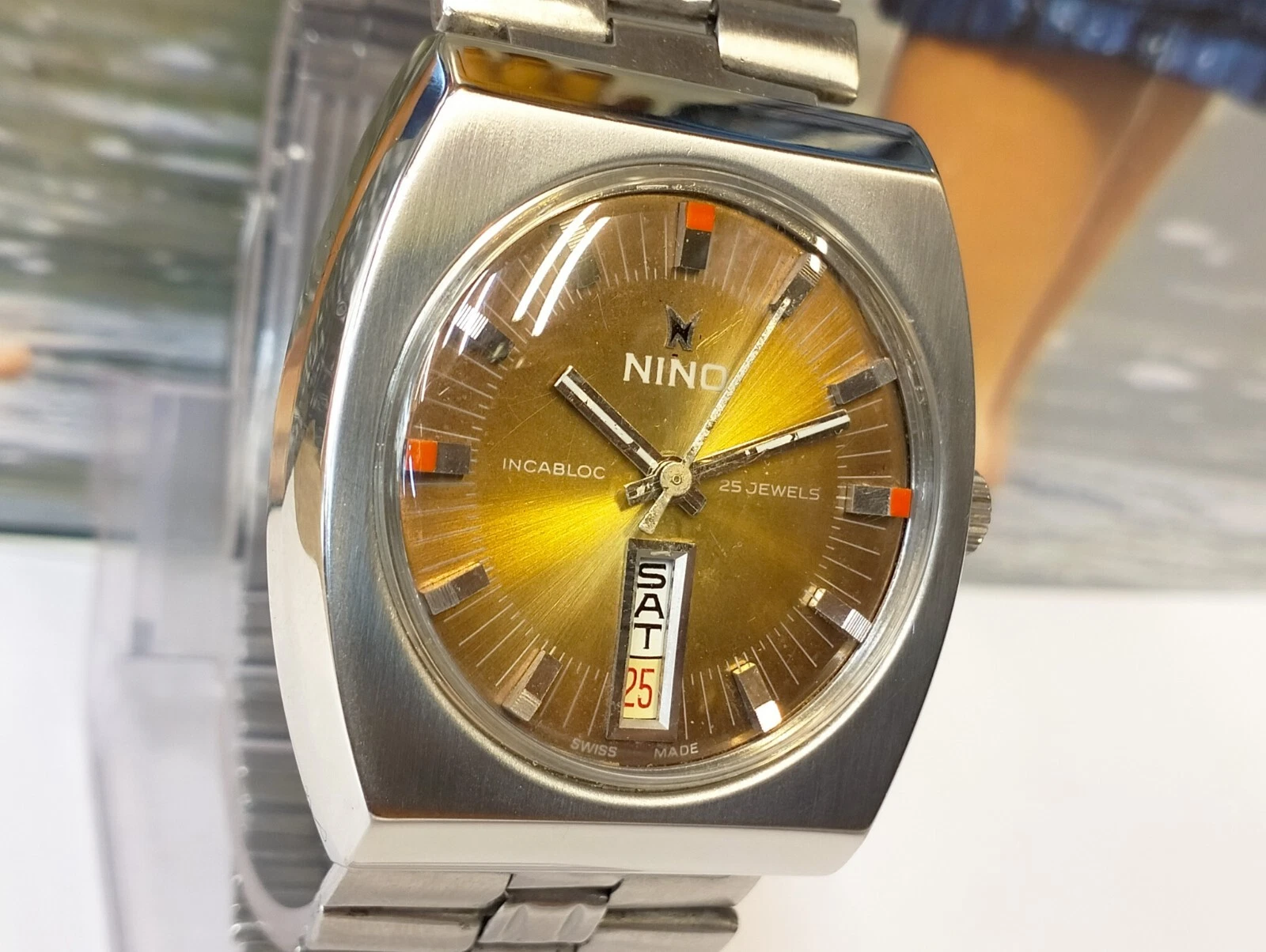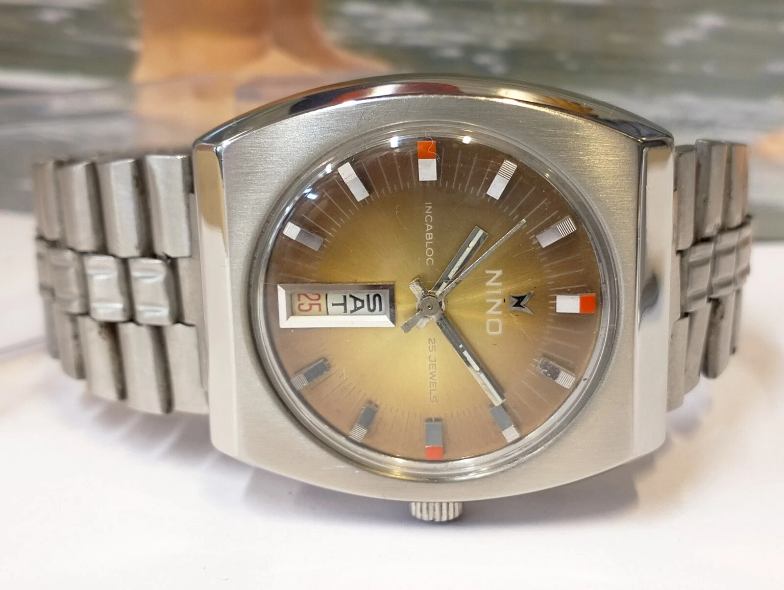 AUTHENTIC NINO 25 JEWELS AUTOMATIC BROWN DIAL SWISS MEN'S FULL WORKING VINTAGE