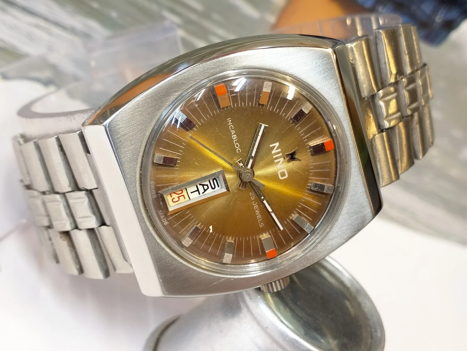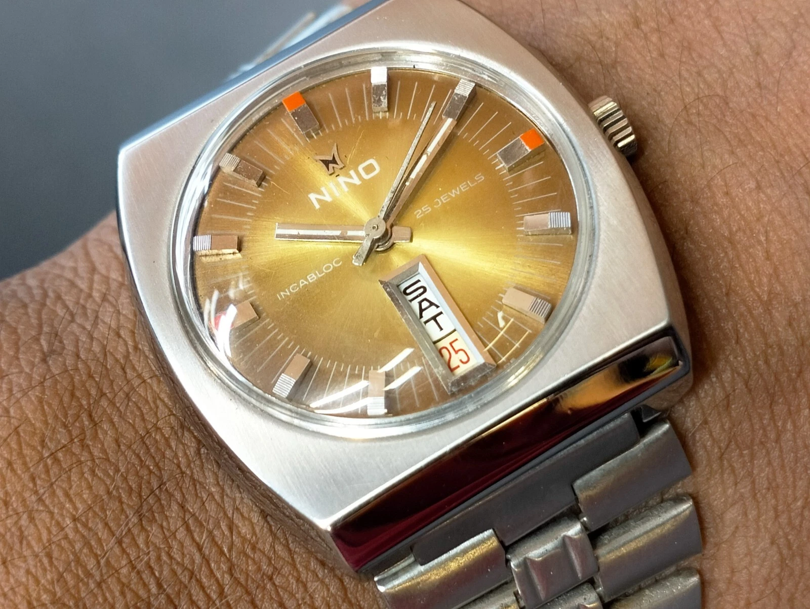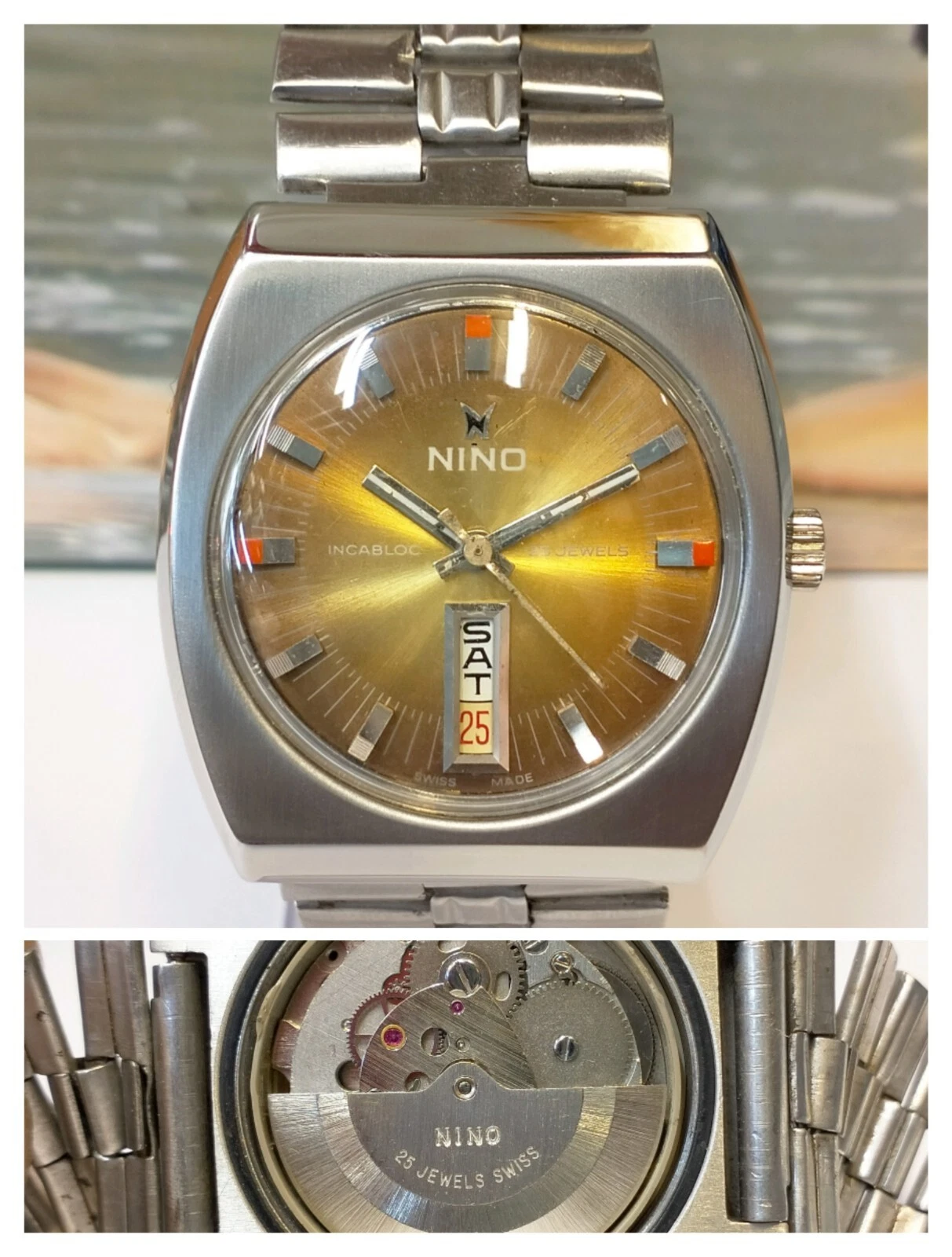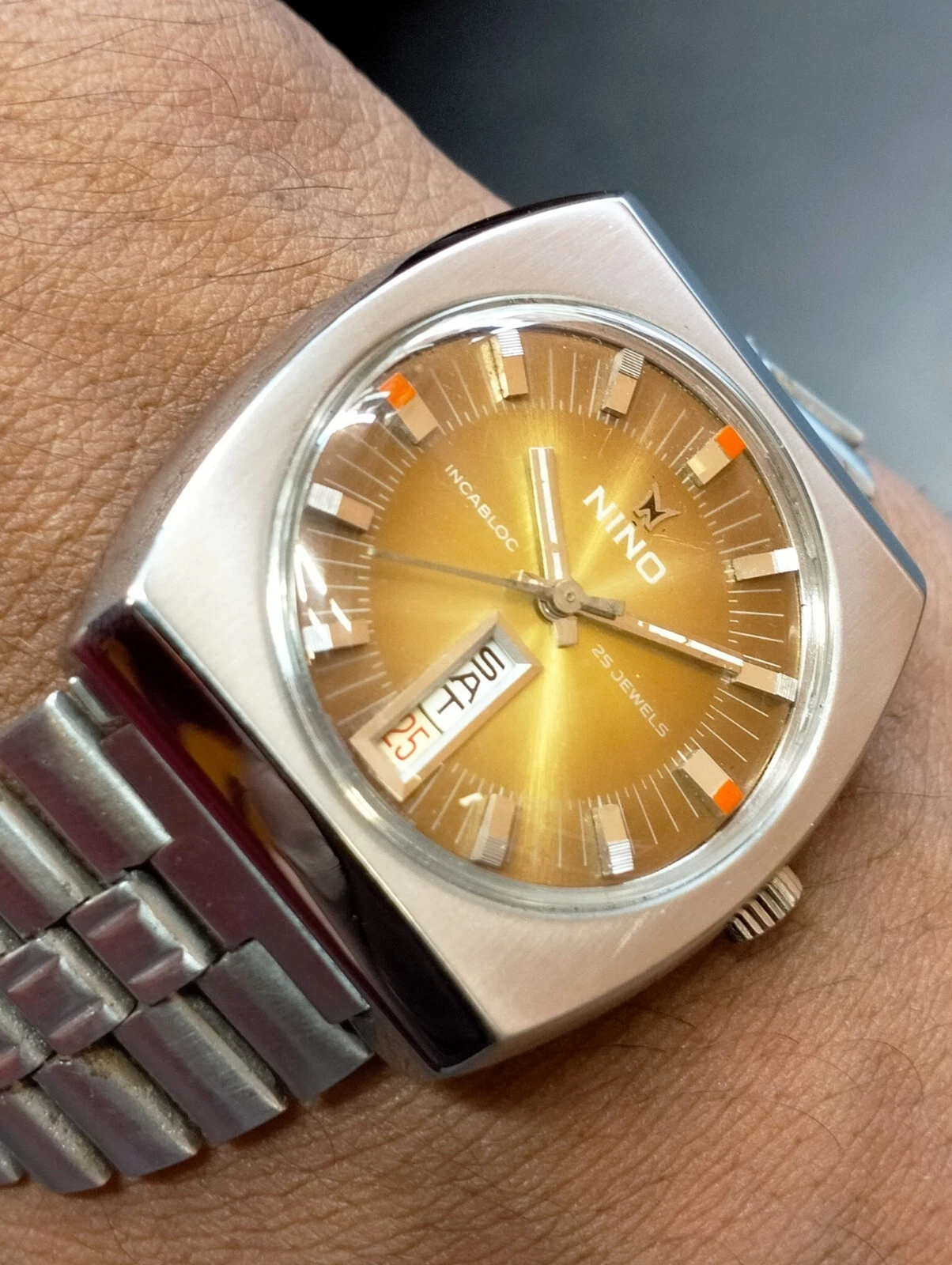 AUTHENTIC NINO 25 JEWELS AUTOMATIC BROWN DIAL SWISS MEN'S FULL WORKING VINTAGE