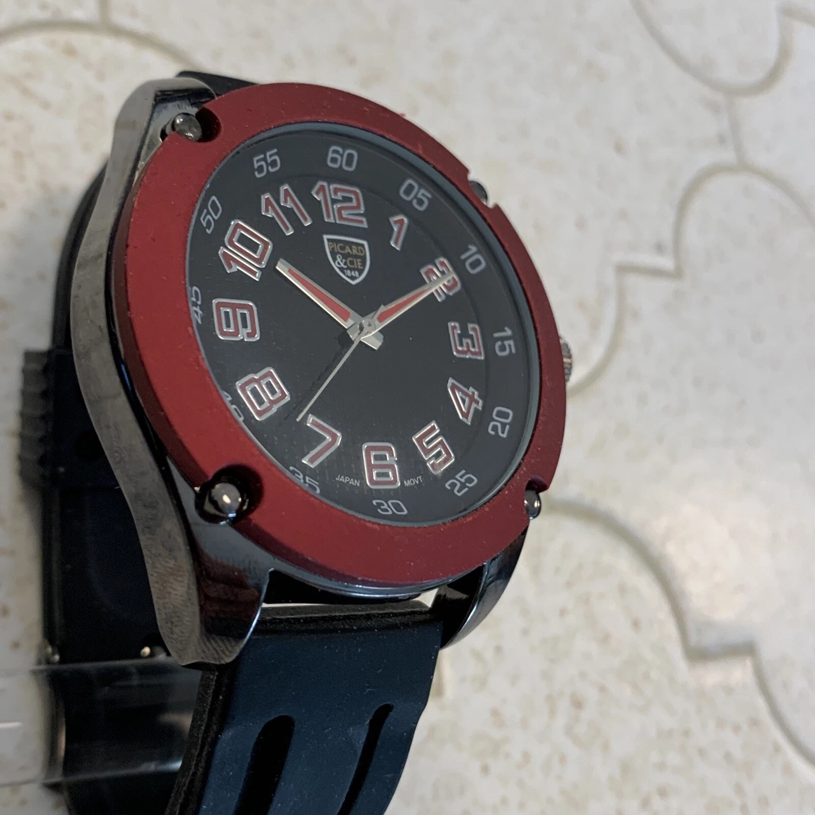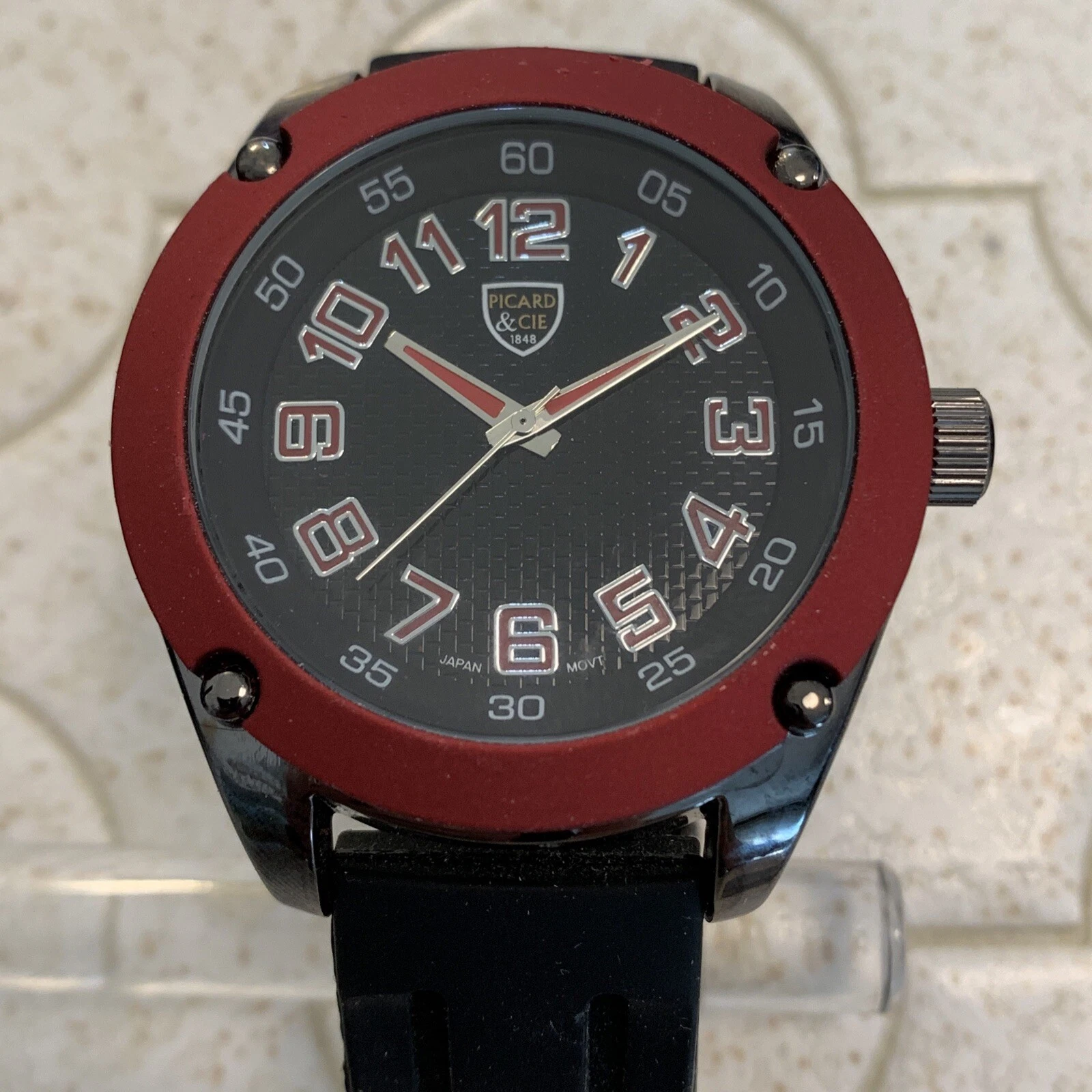 Picard & Cie Mens Stainless Steel Watch 9656 Red Black