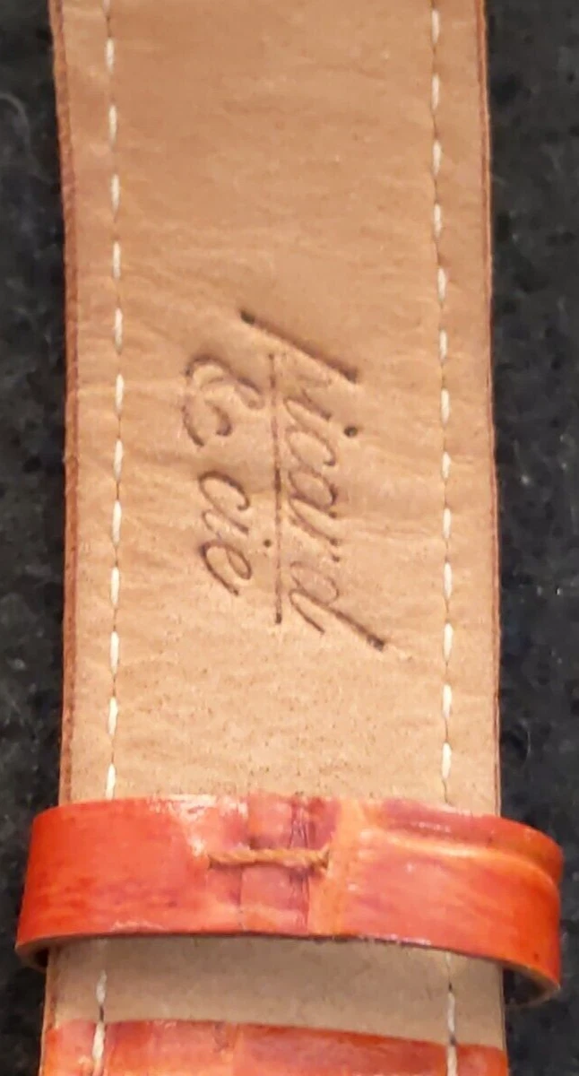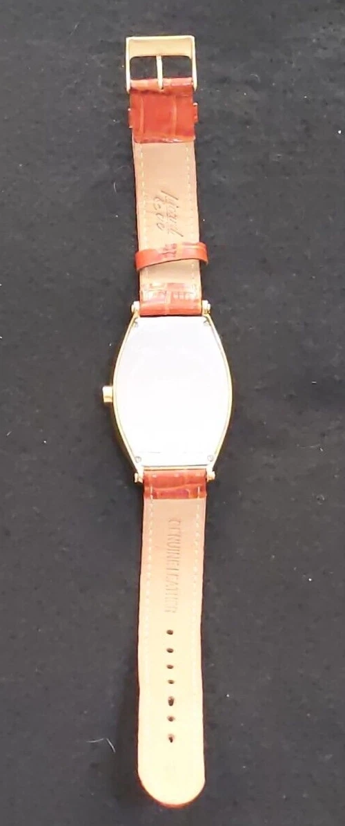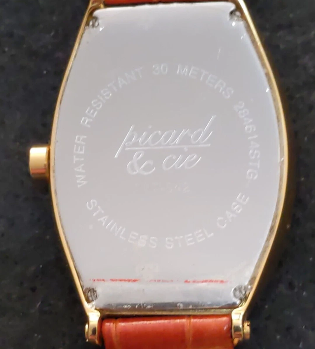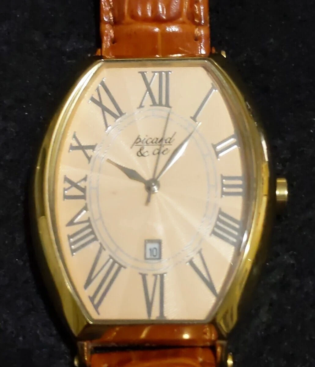 Picard & Cie Three Hand Date Watch 797-842 Roman Numeral Gold Case Leather Strap