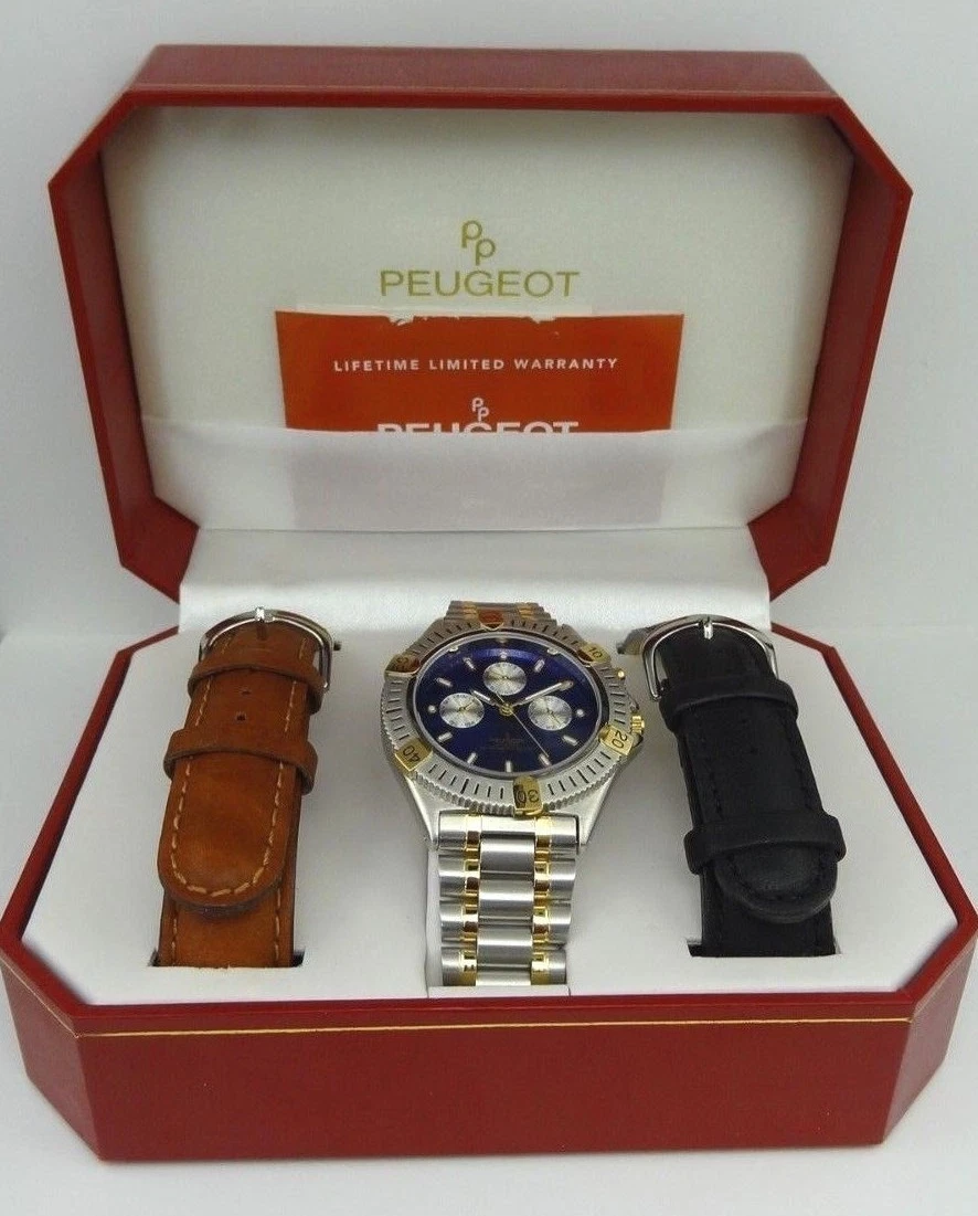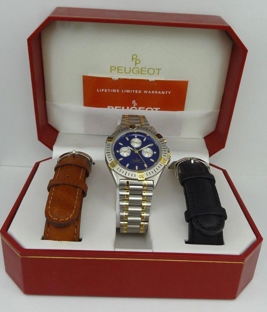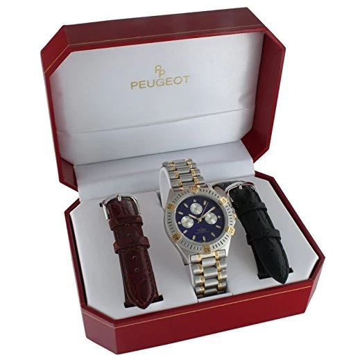 Peugeot Men's 682 Multifunction Interchangeable Leather Strap Watch Gift Set