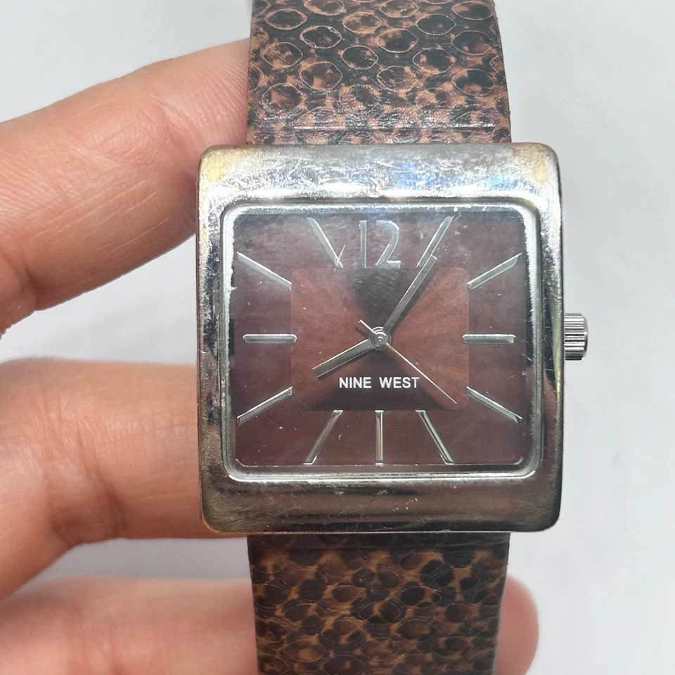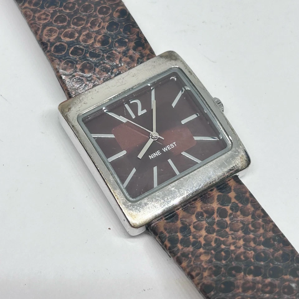 Nine West Women’s Watch St. Steel Brown Dial Snake Print Band New Battery