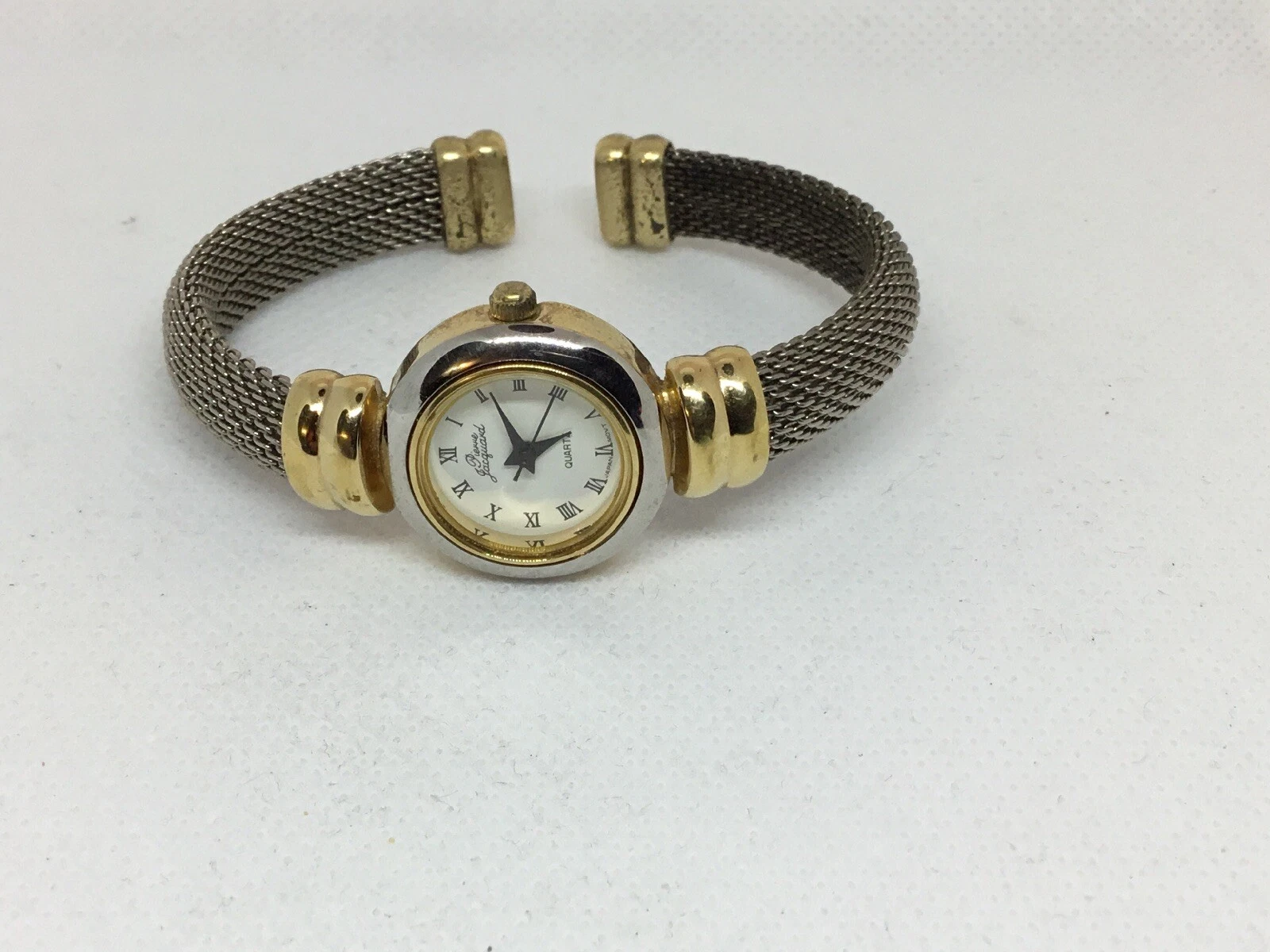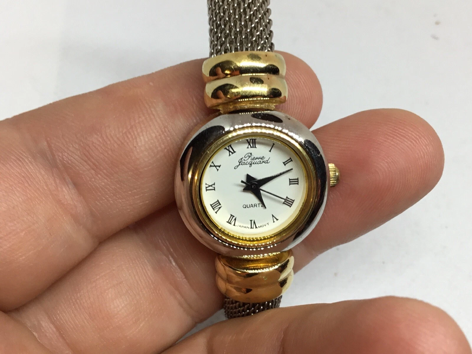WOMEN'S PIERRE JACQUARD TWO TONE MESH BANGLE BAND WATCH WHITE DIAL H8