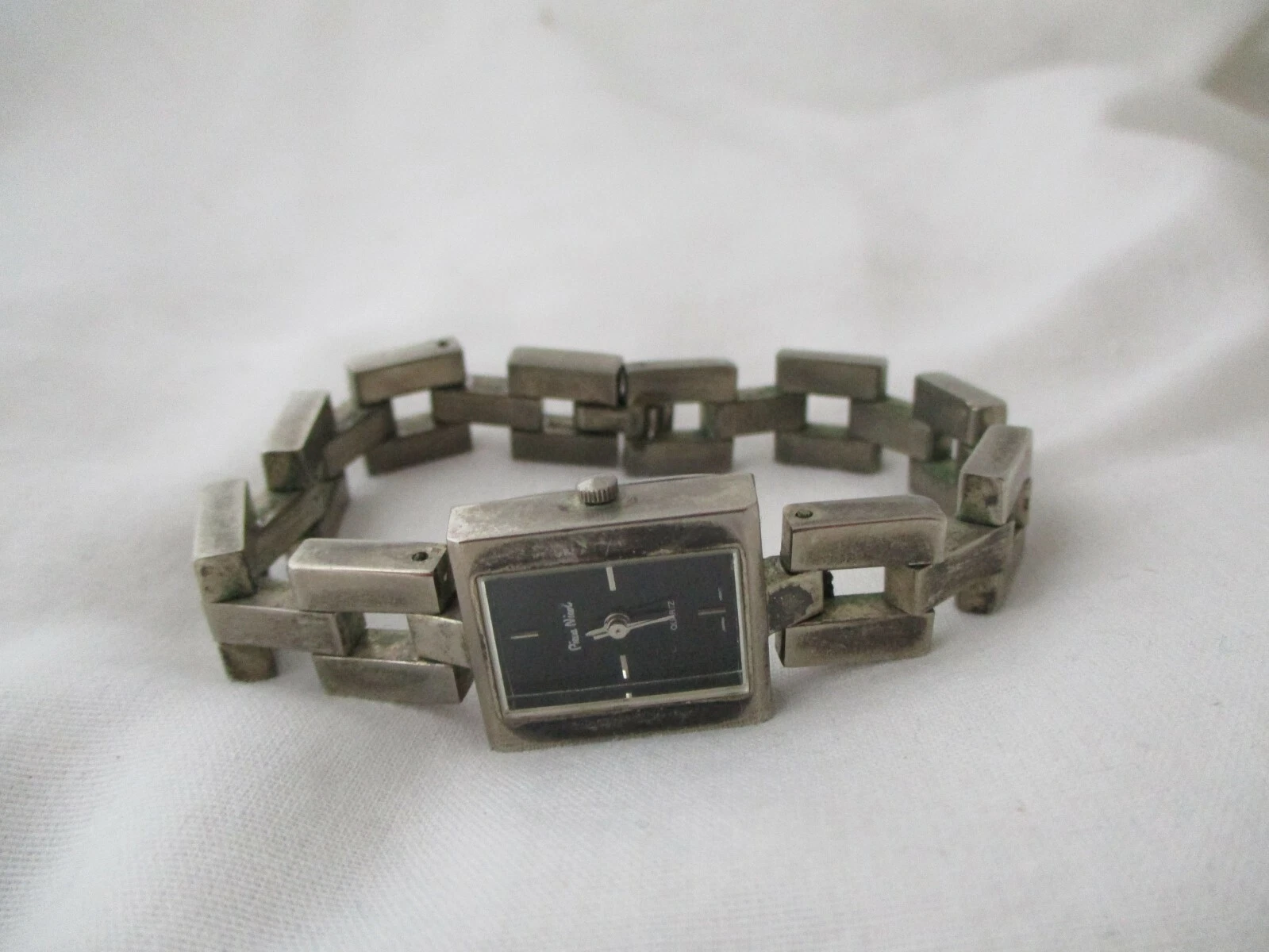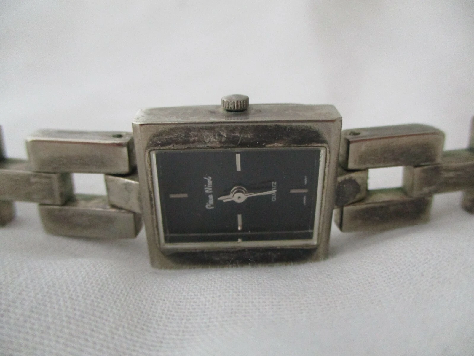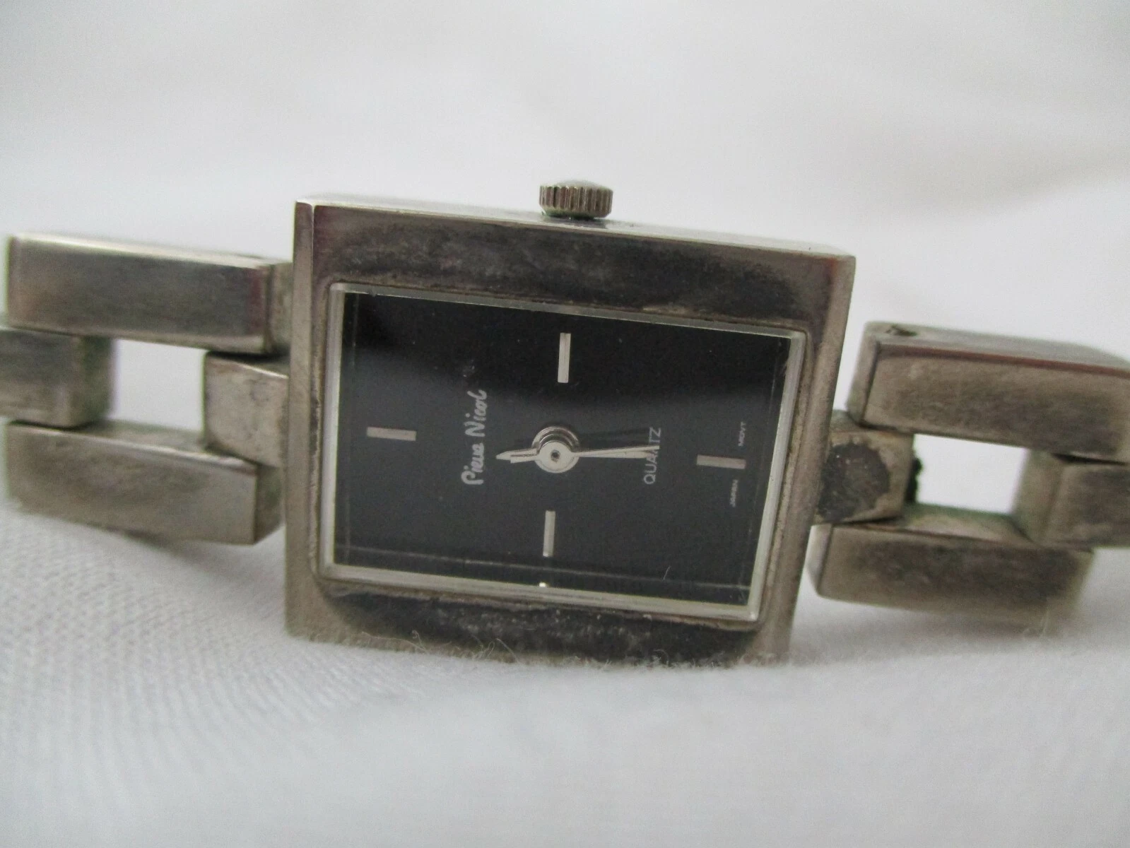 Pierre Nicol Rectangle Watch, Silvertone Metal Link Band, Guaranteed to Work!