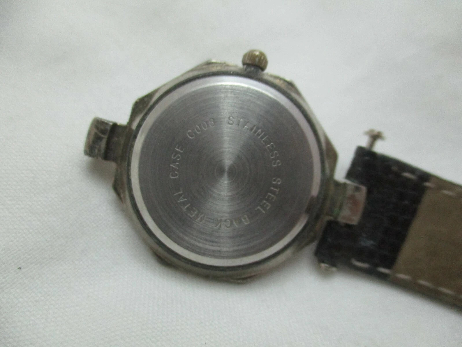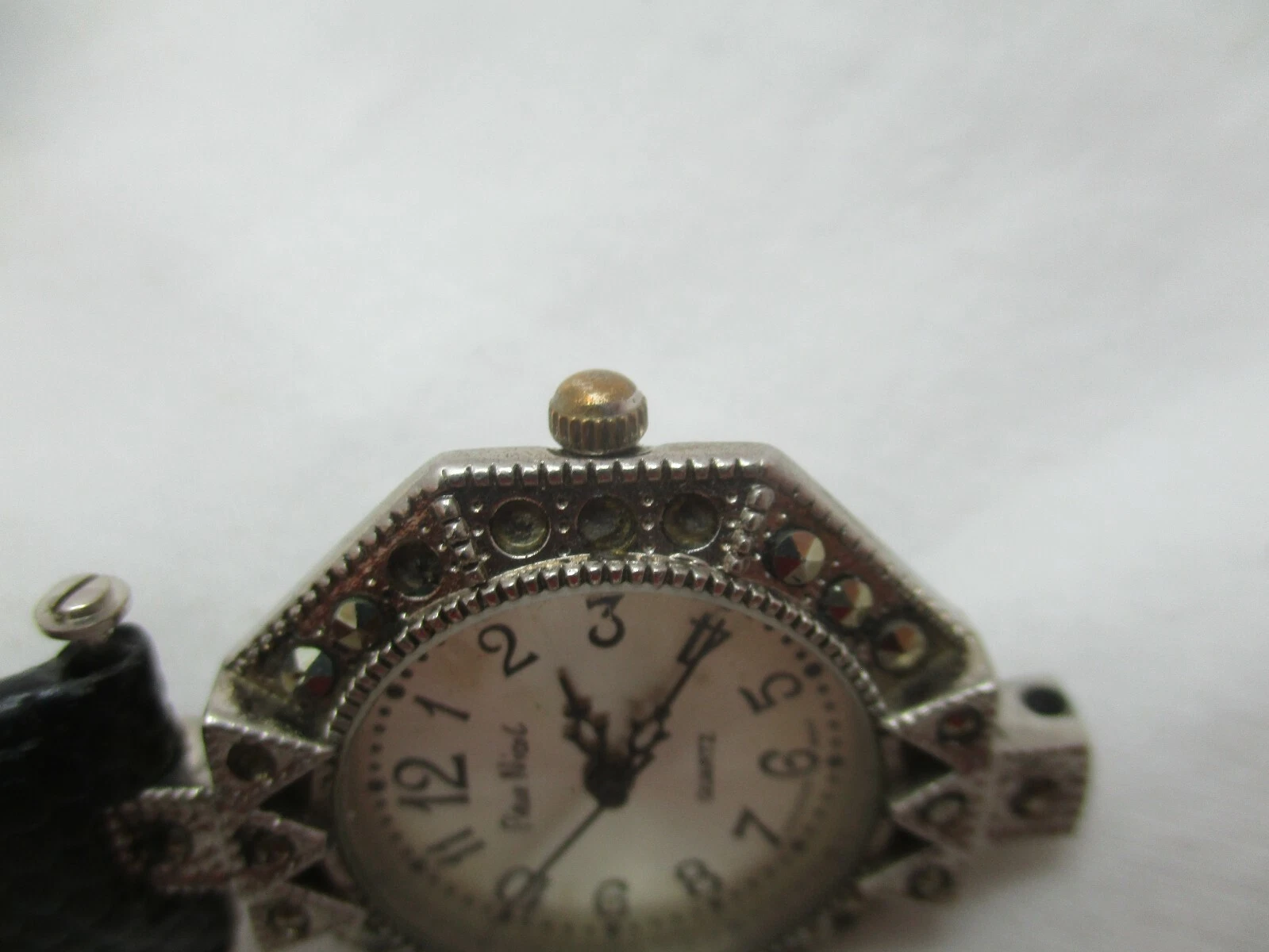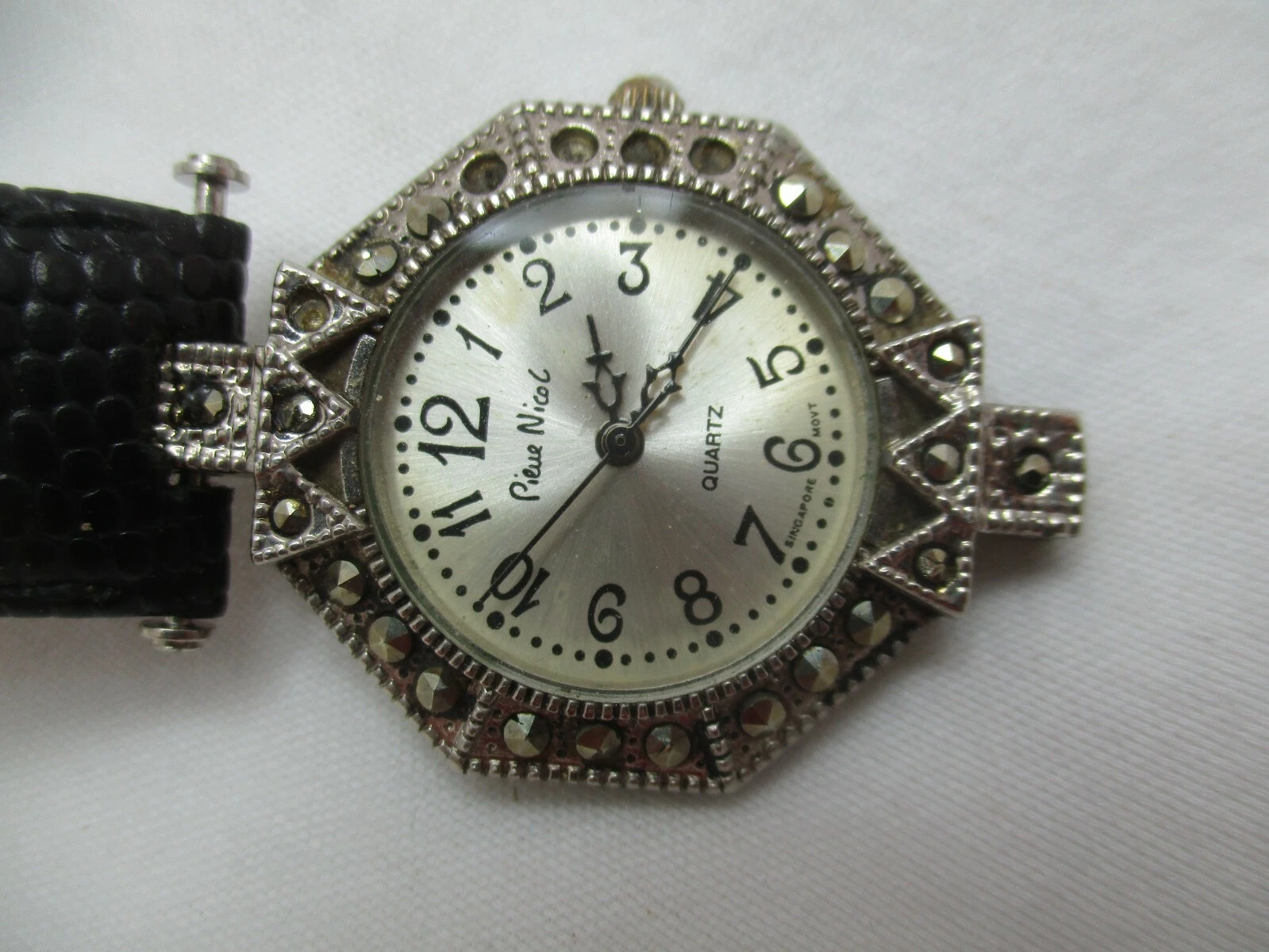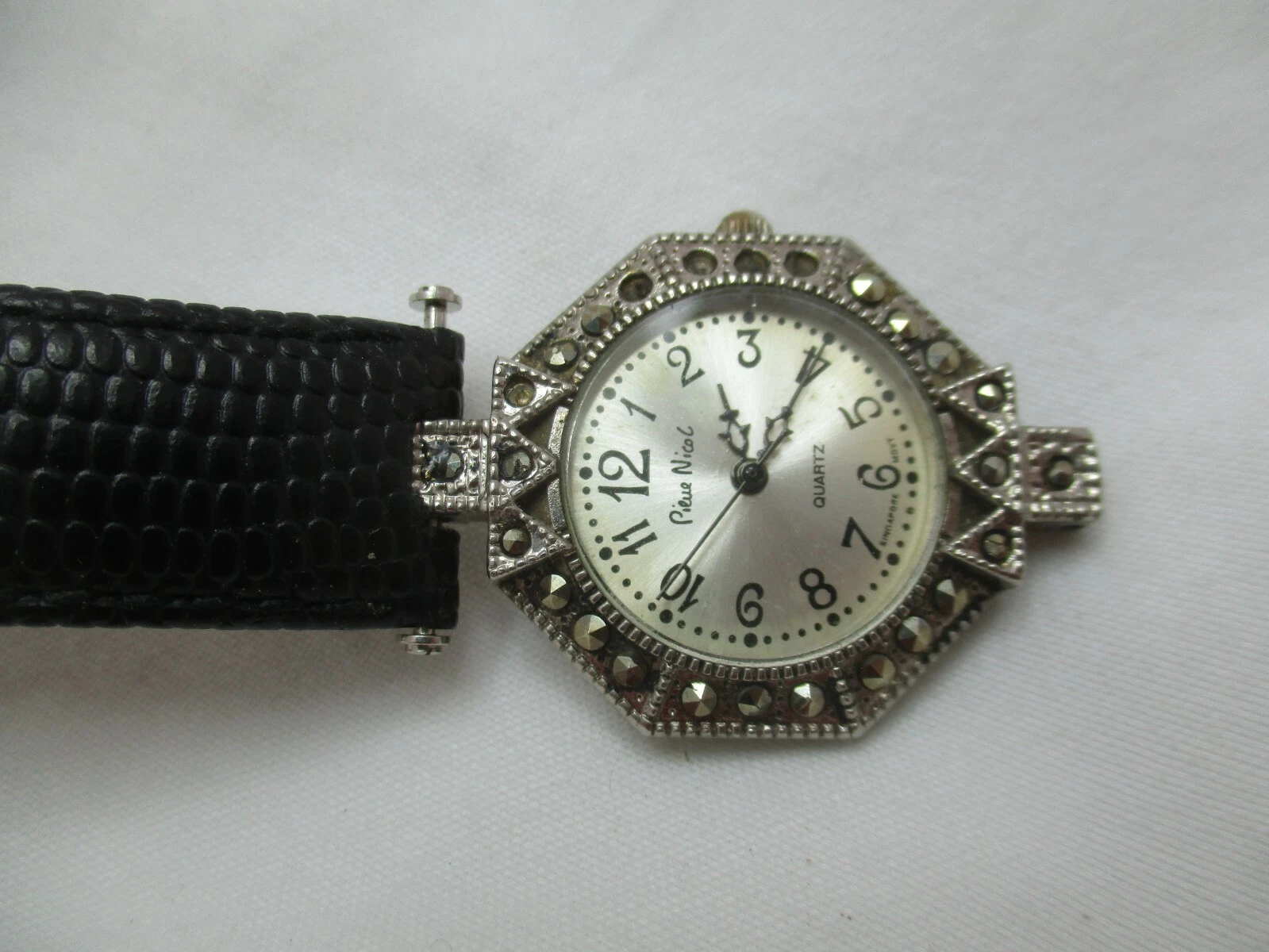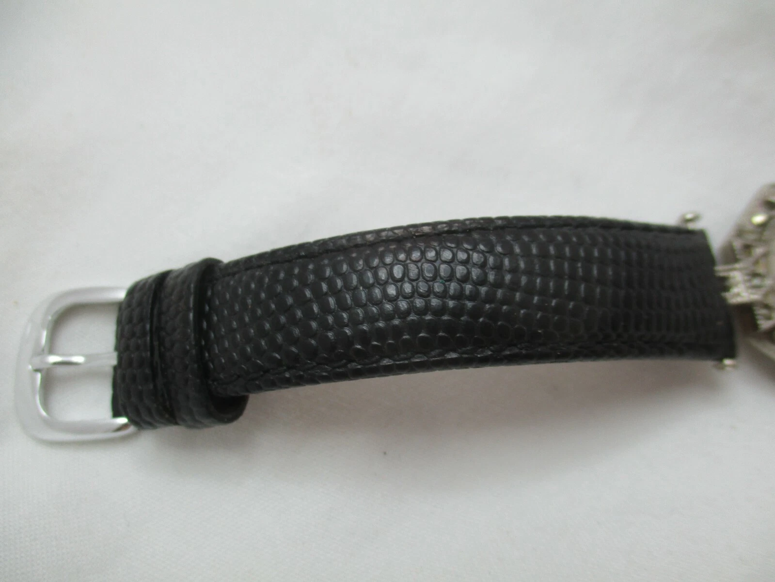 Pierre Nicol Wristwatch Black Buckle Band Round Silver Tone Face Rhinestones