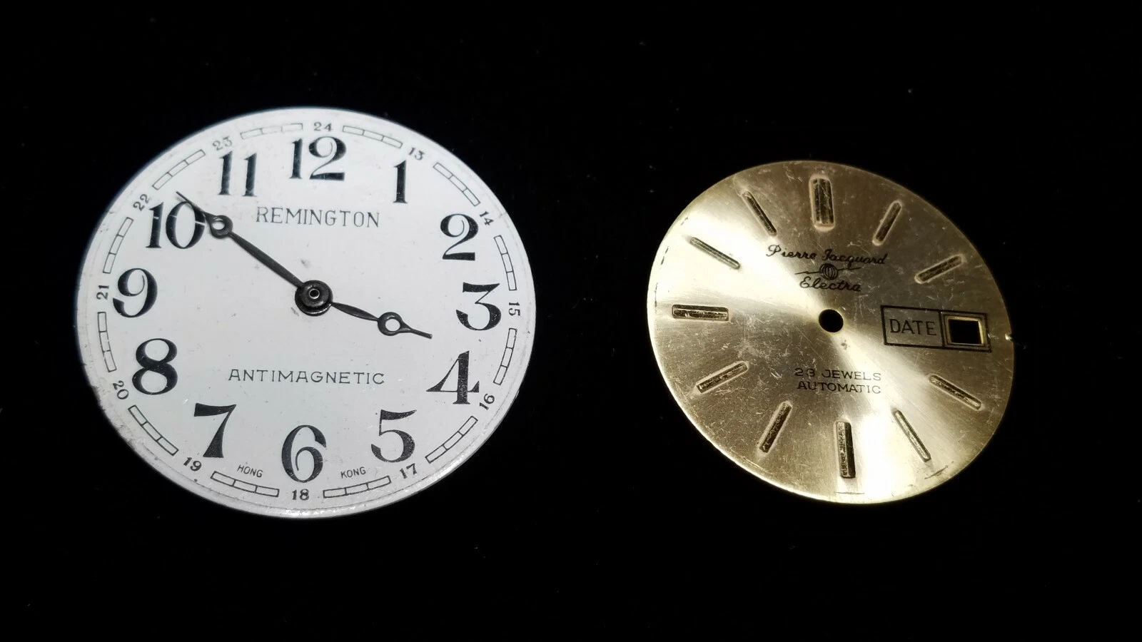 Lot of 2 Vintage Wrist Watch Dials Faces, Remington, Pierre Jacquard.
