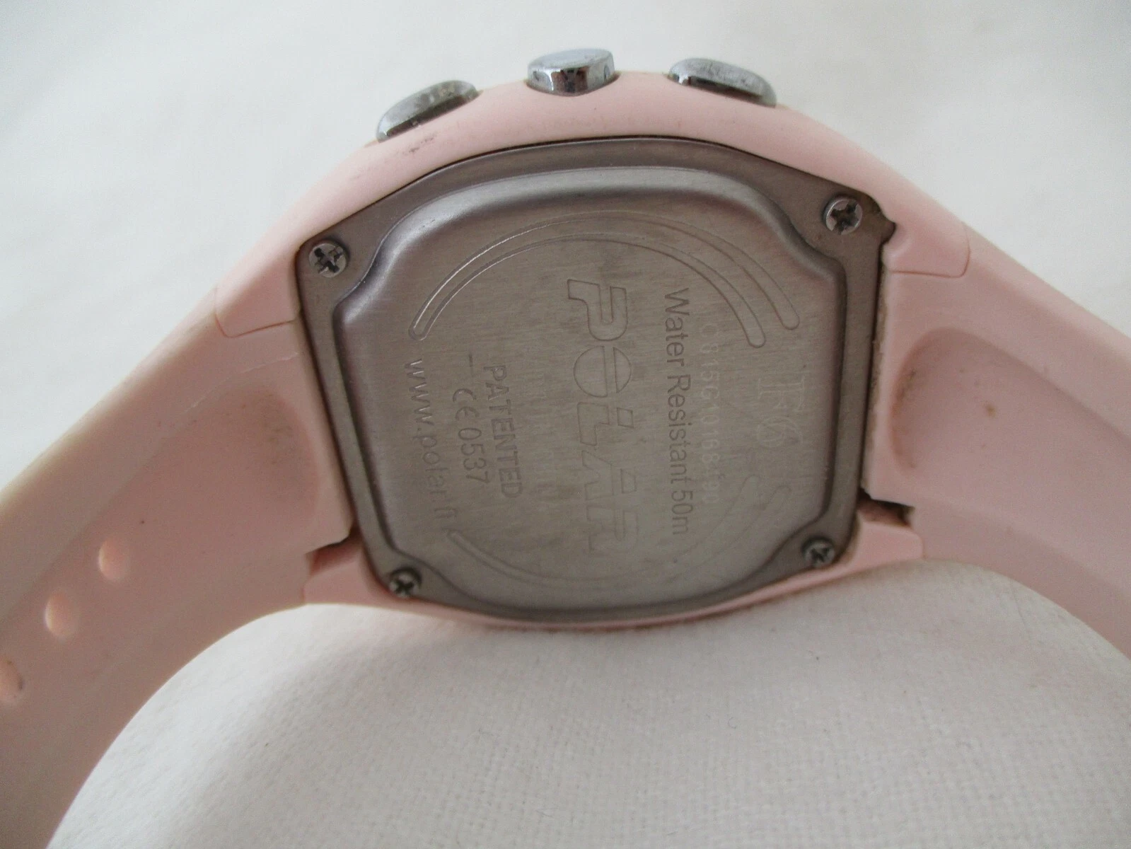 Polar Digital Watch Pink Buckle Band Silver Toned Stylish WR 50M