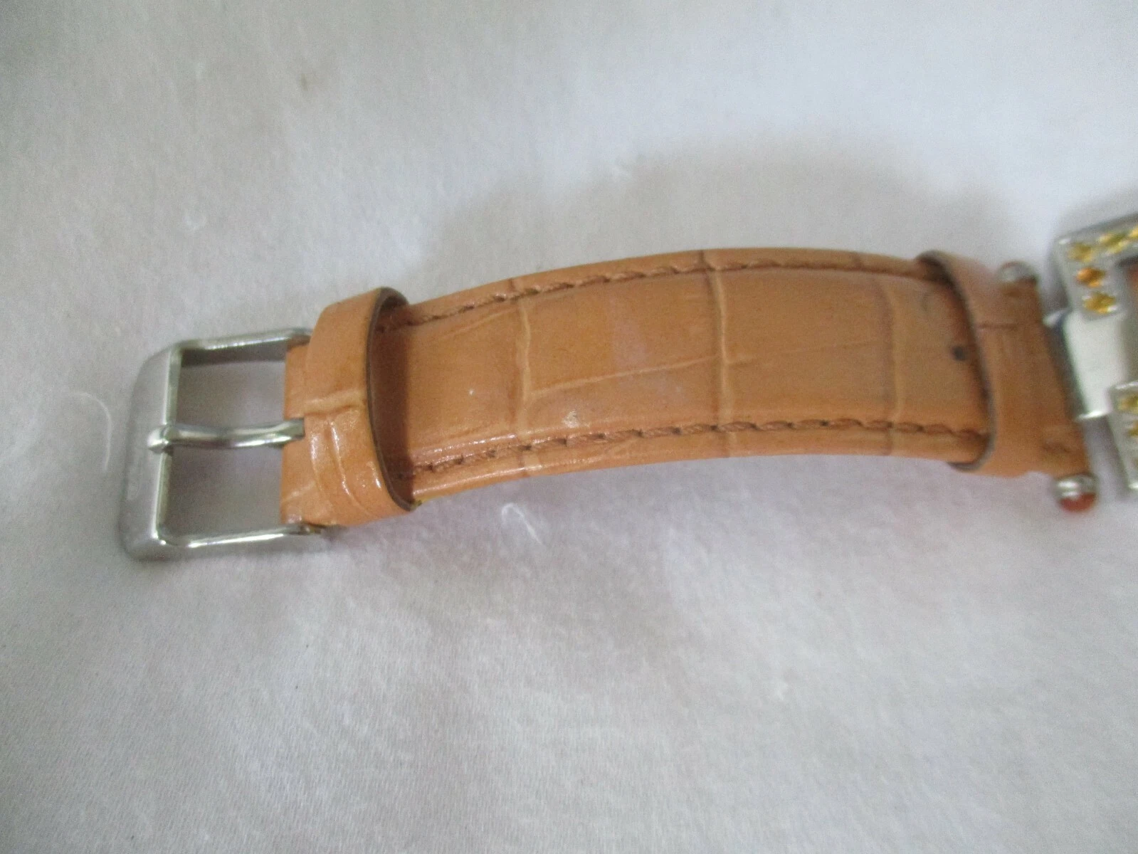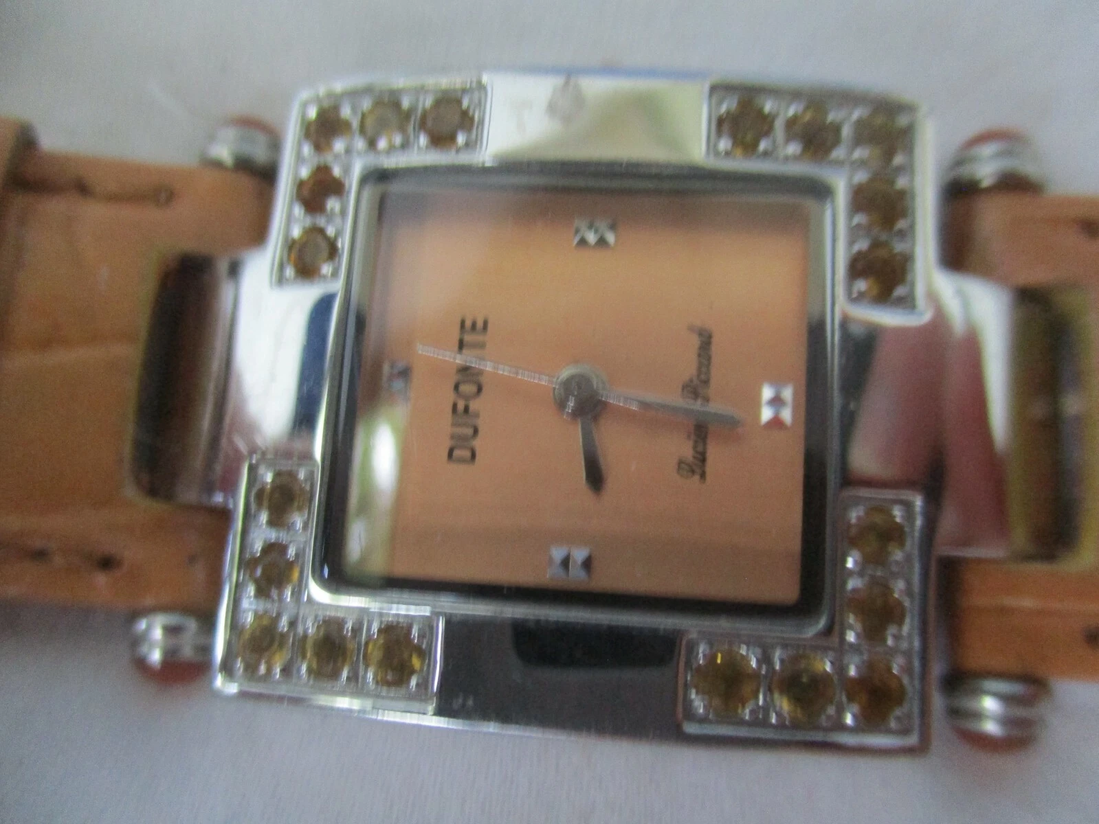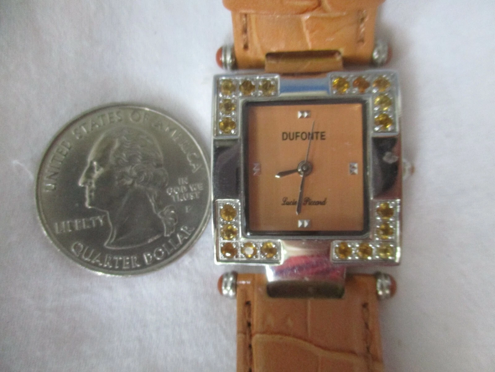 Dufonte Lucien Picard Wristwatch Orange Buckle Band Silver Tone Rectangular Face