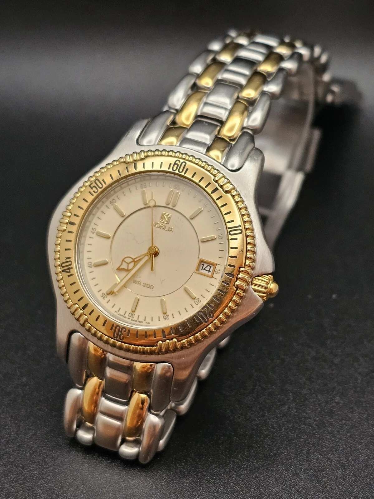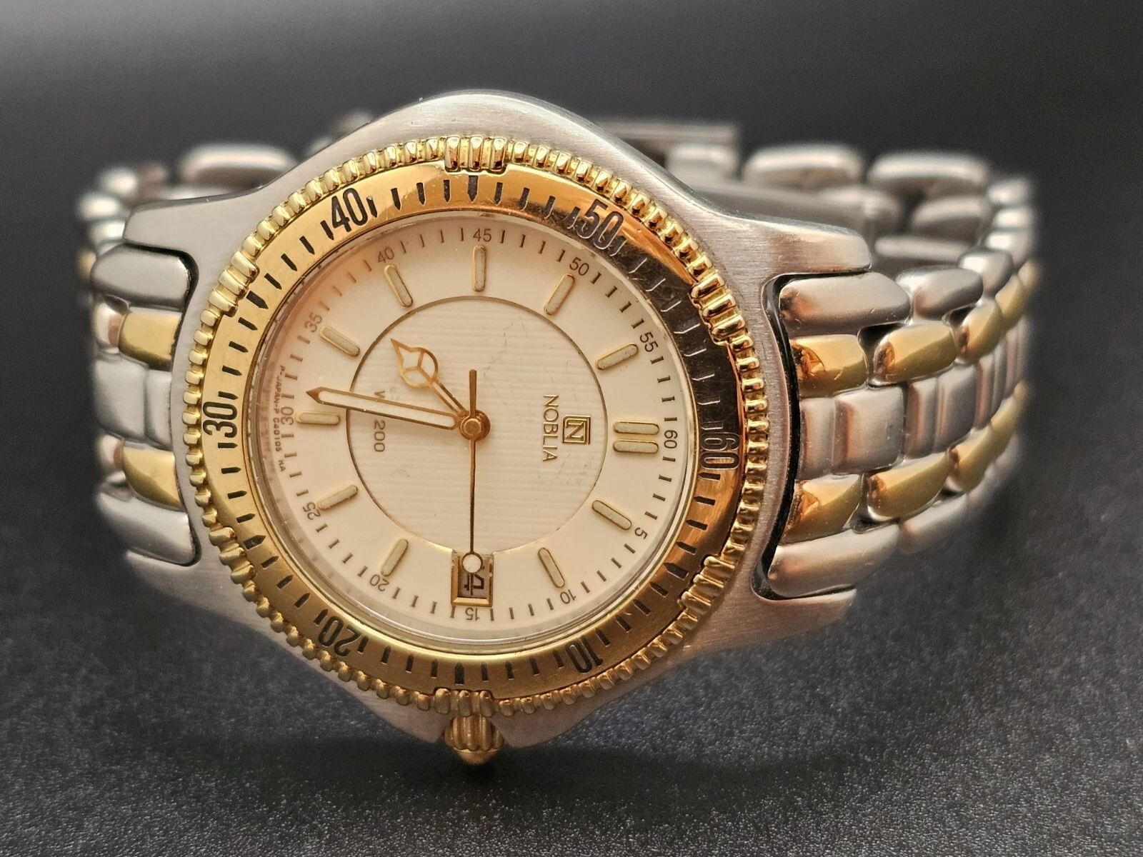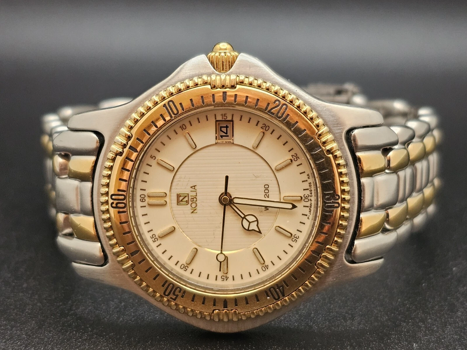 Vintage 90s Noblia ‘12’ Meter Silver And Gold Tone Watch WR 200 M New Battery