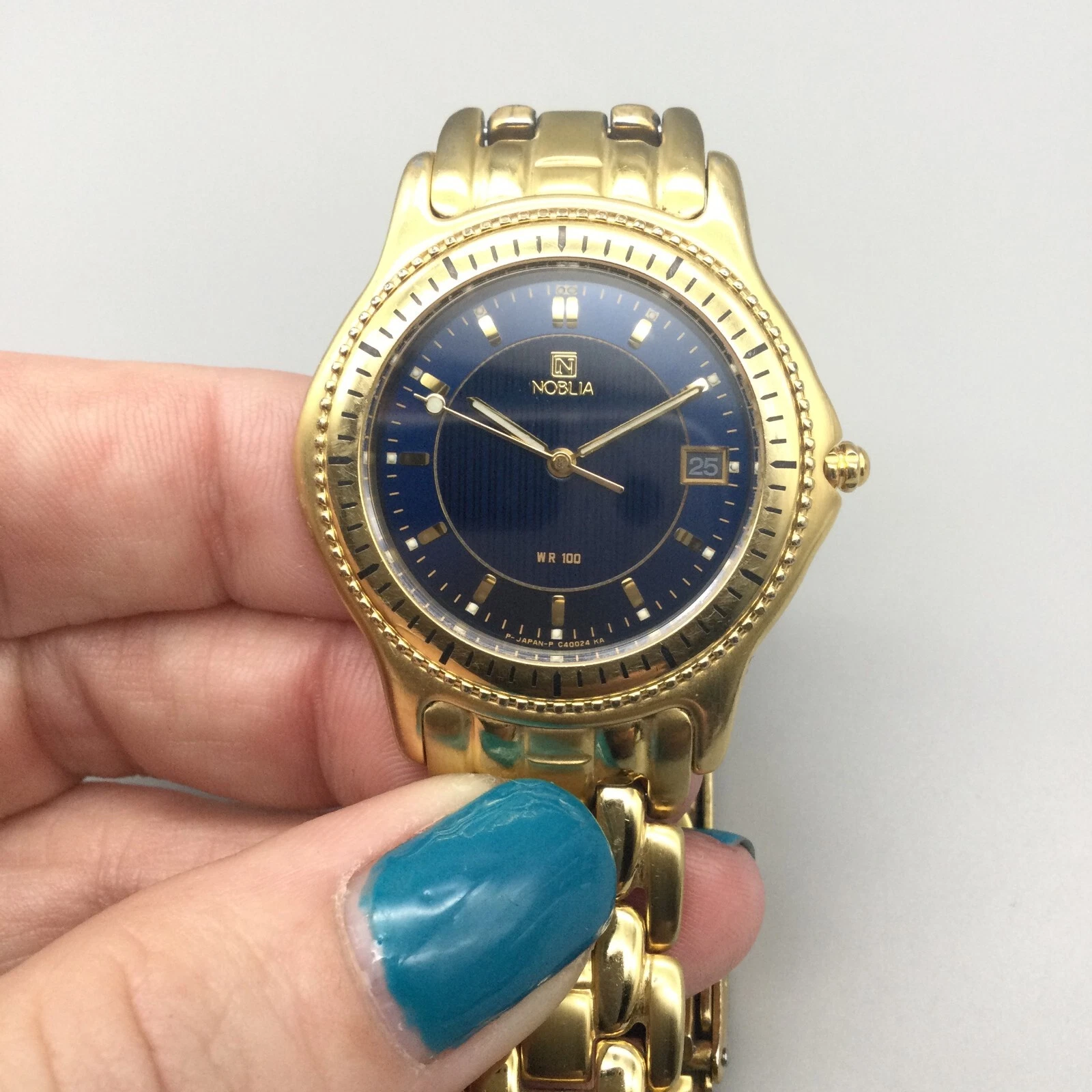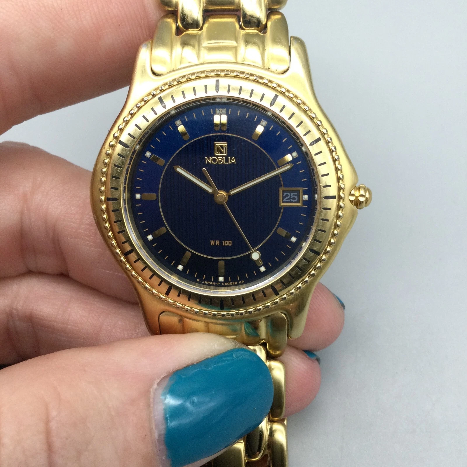 Noblia Citizen 12 Meter Watch Women 34mm Gold Tone Black Date New Battery 7"
