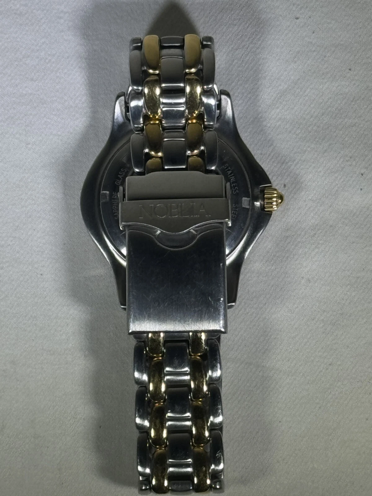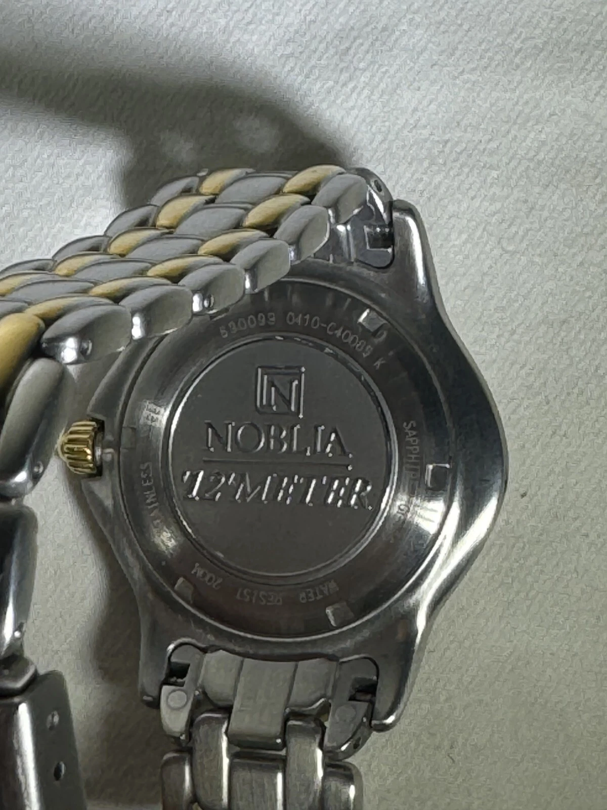 NOBLIA 2-TONE 12 METER GOLD PLATED & STAINLESS STEEL 34.5mm WATCH NEW BATTERY!!