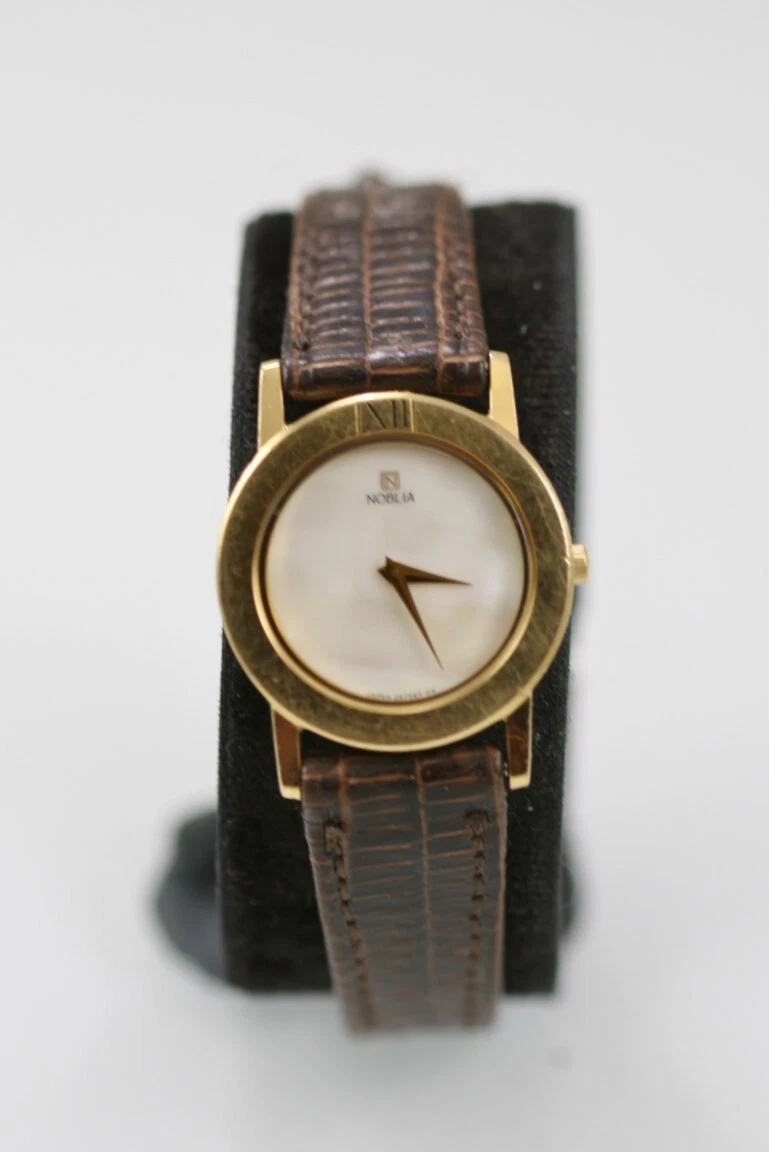 Noblia Women Watch 2200-242327Y Gold Stainless Steel WR Brown Leather MOP Quartz