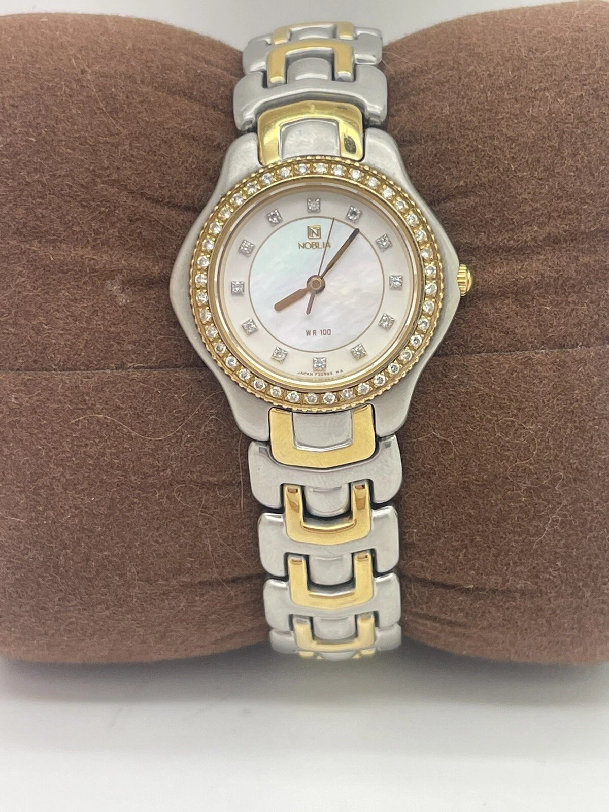 Noblia 18k Yellow Gold And Diamond Wrist Watch With Mother Of Pearl Face