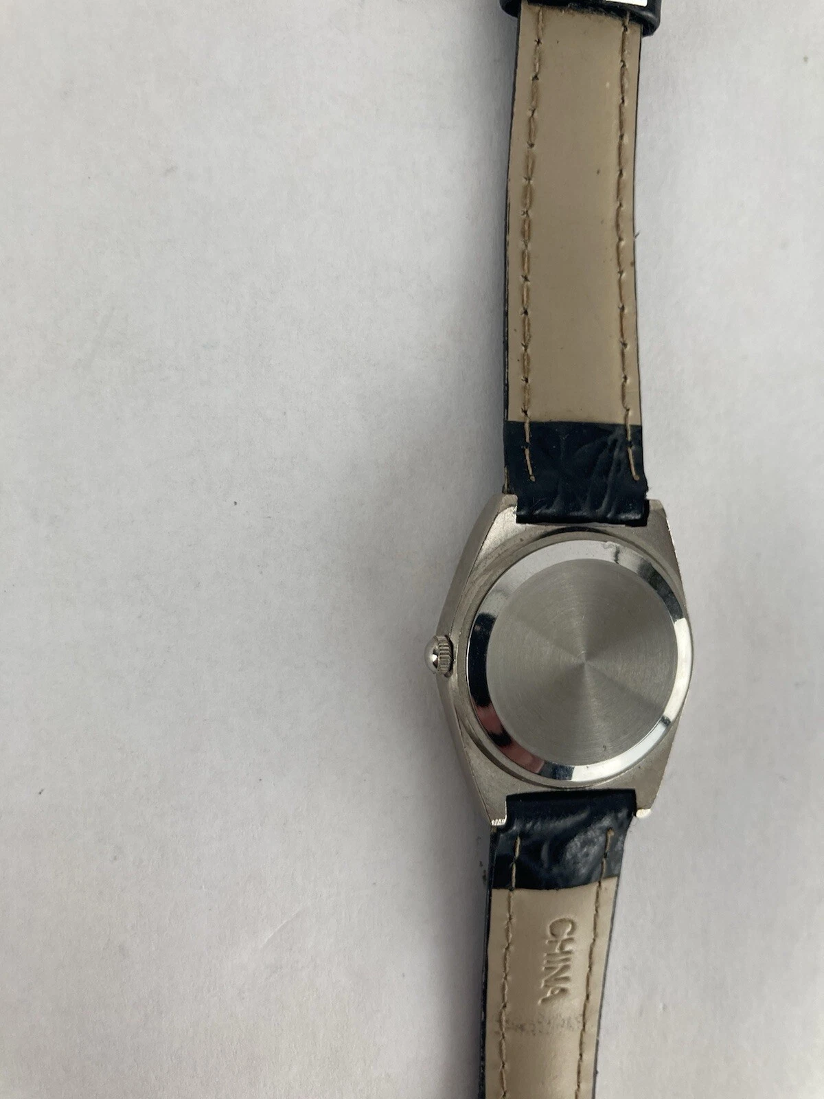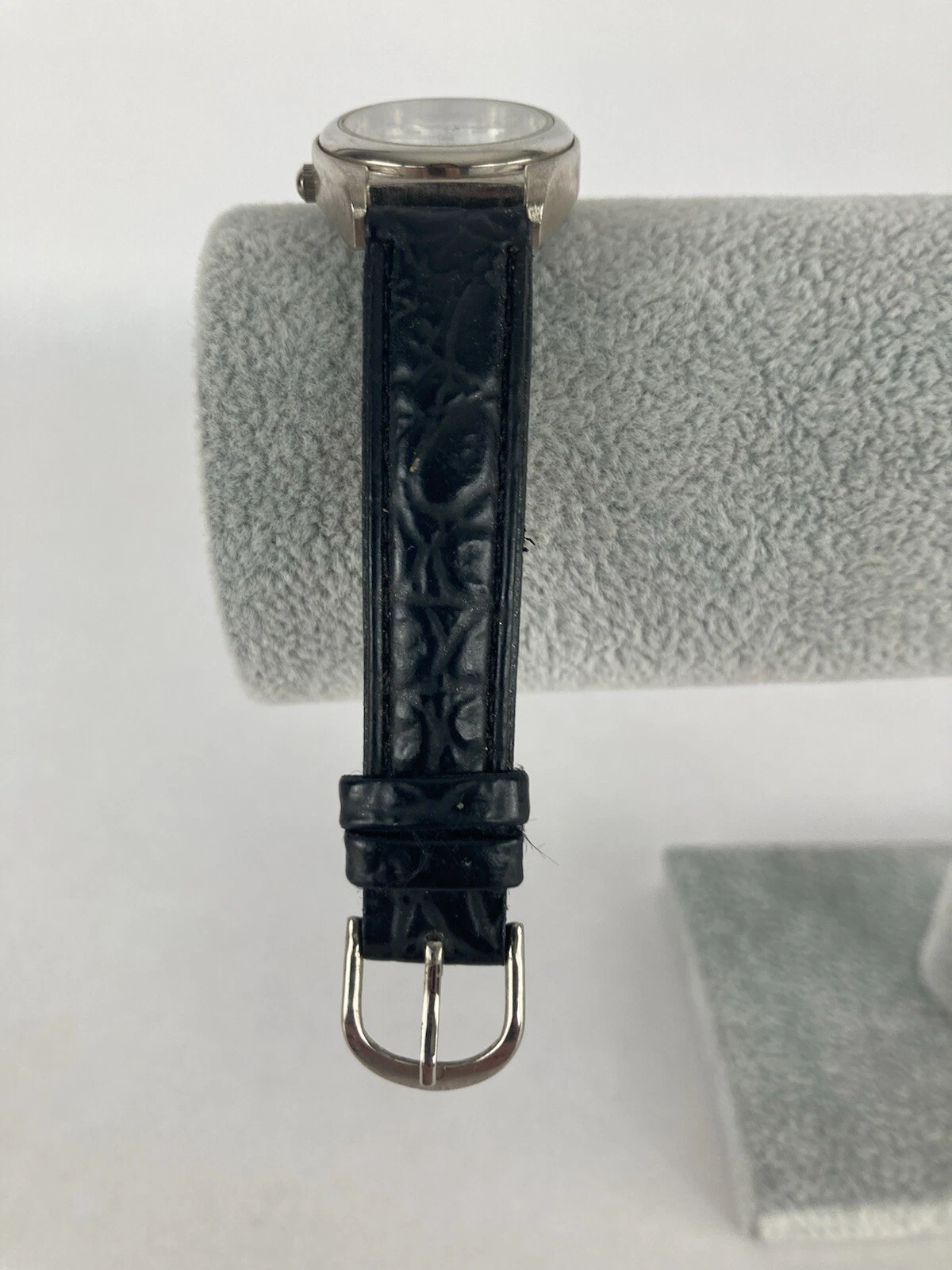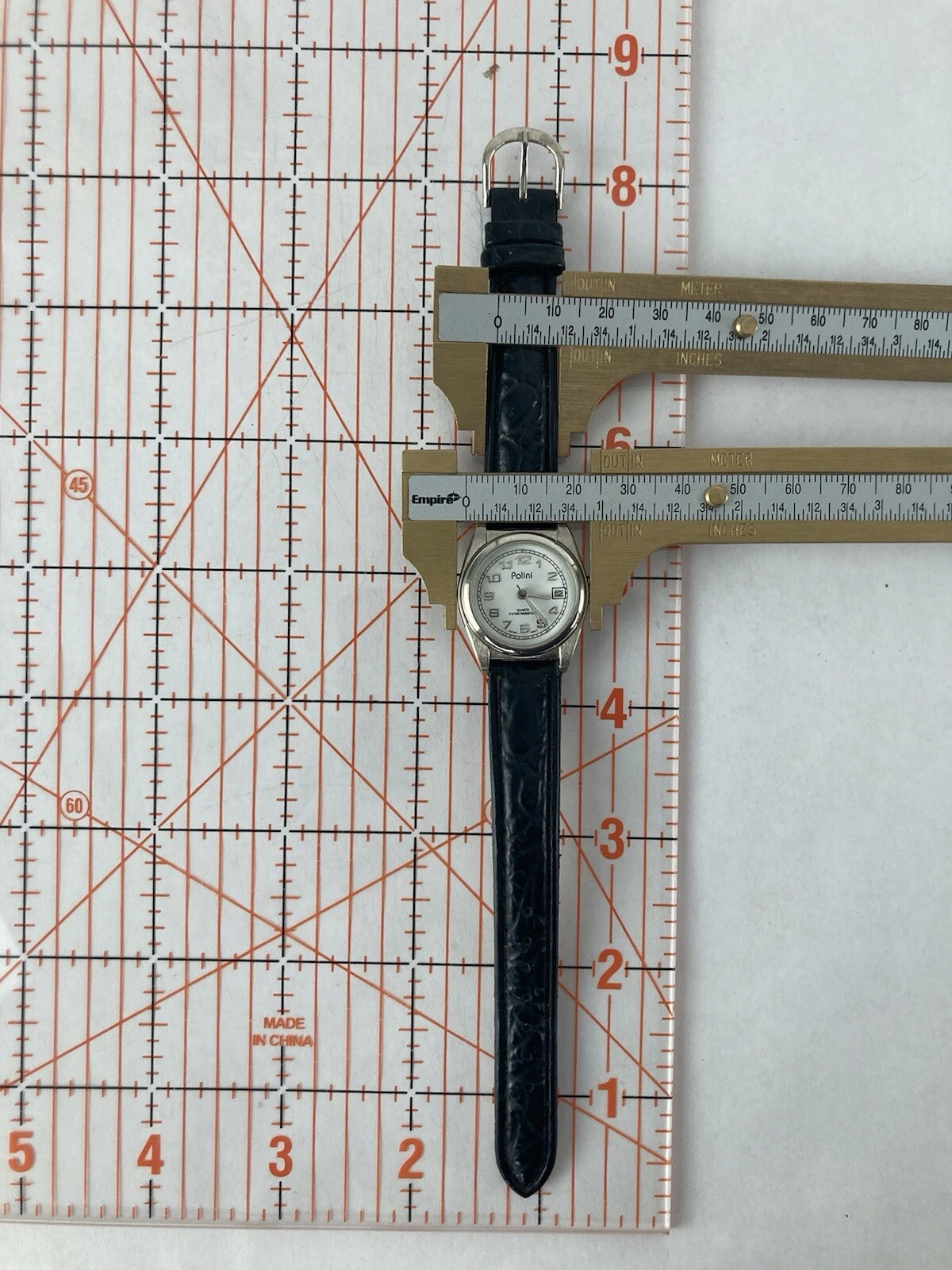 Polini 25mm Silver Tone Quartz Date Watch w/Black Leather Band & Battery