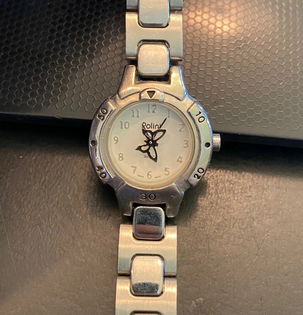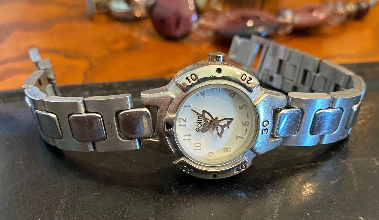Women's Silver Tone Polini Watch, Link Band, Rotating Butterly on Dial