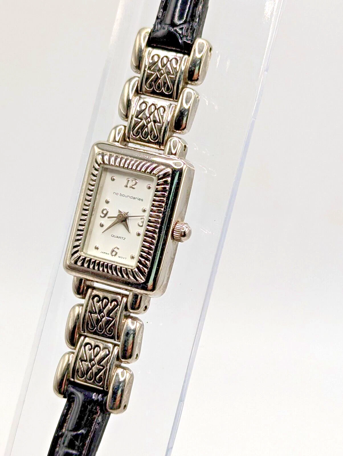 No Boundaries Ladies Watch Silver Tone Black Band 19mm New Battery