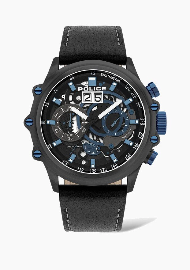 POLICE Luang PL16018JSU/02 Men's Watch Chronograph Chrono Leather Black New
