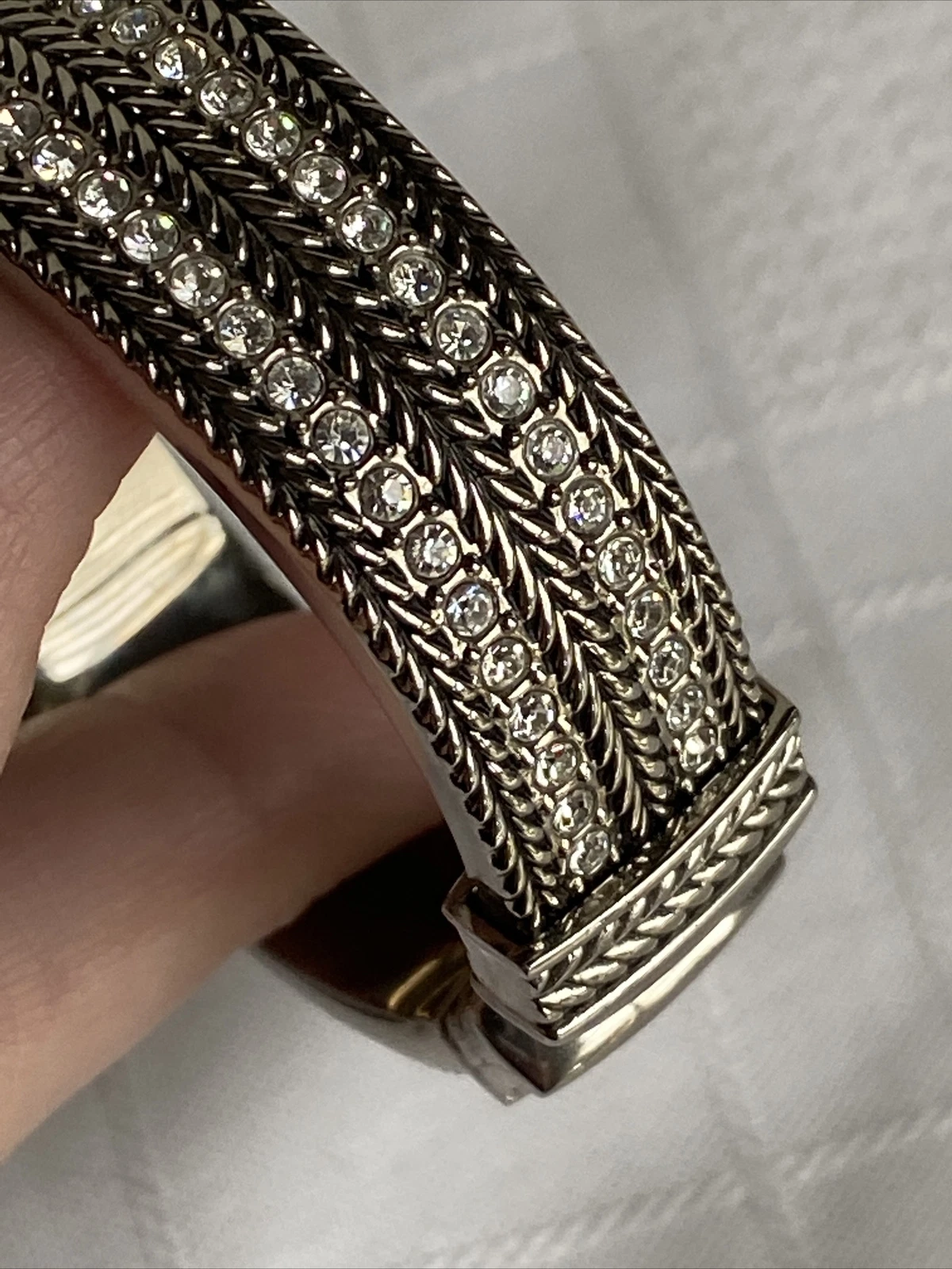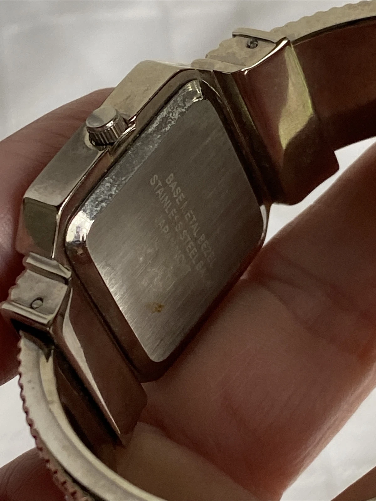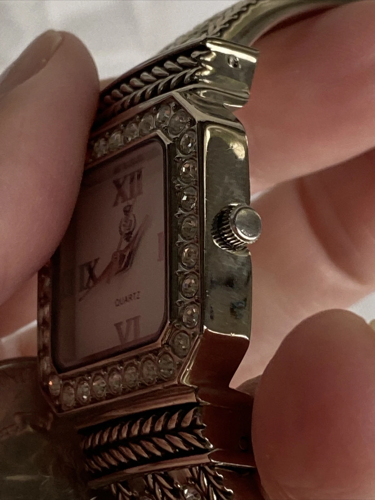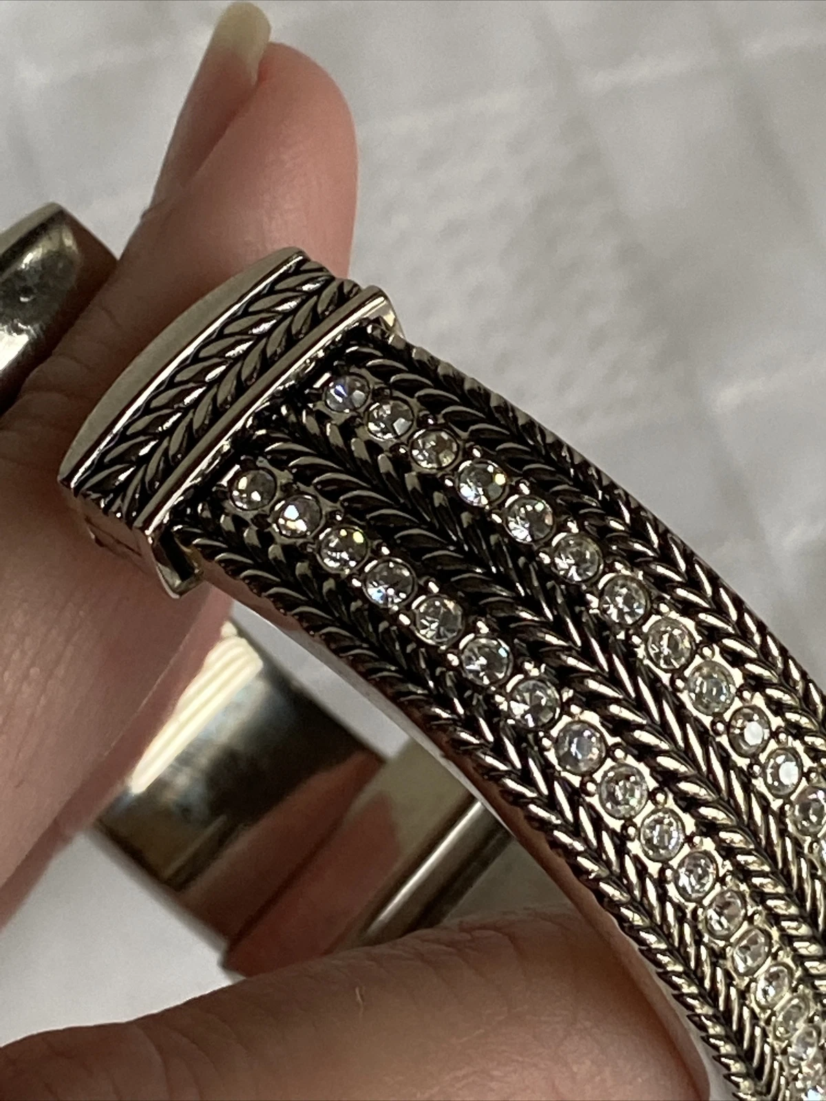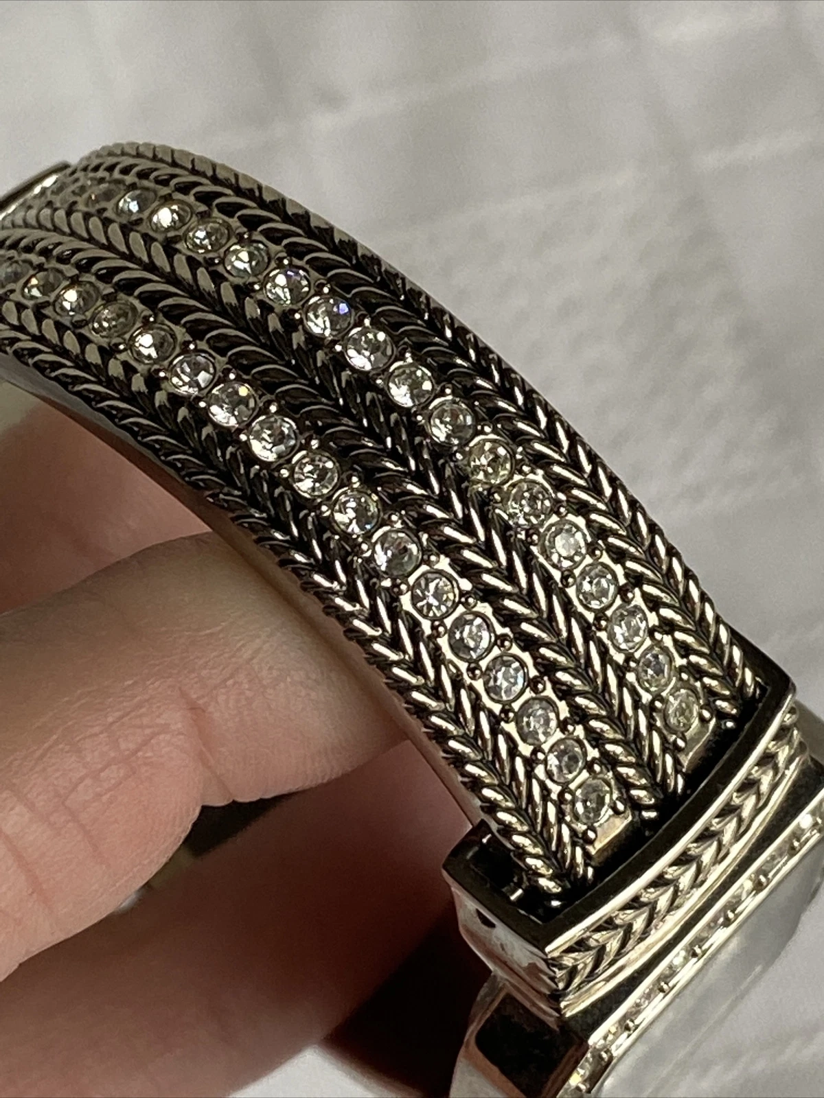 Premier Designs Tribute Watch Cuff Antiqued Silver Tone Pave Frame Needs Battery
