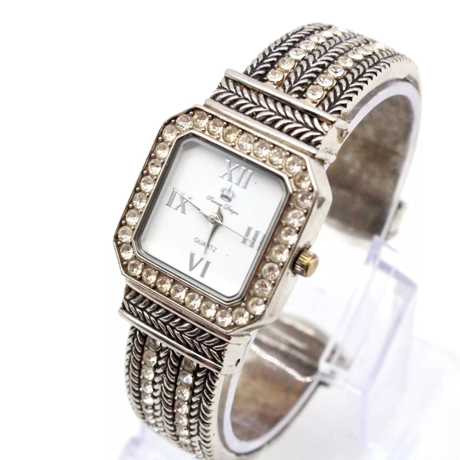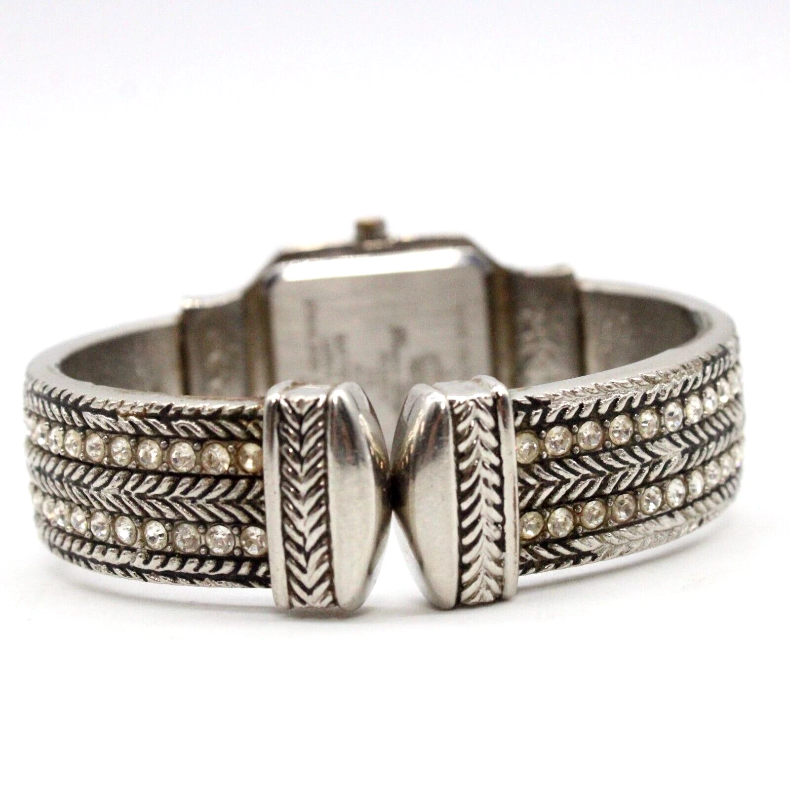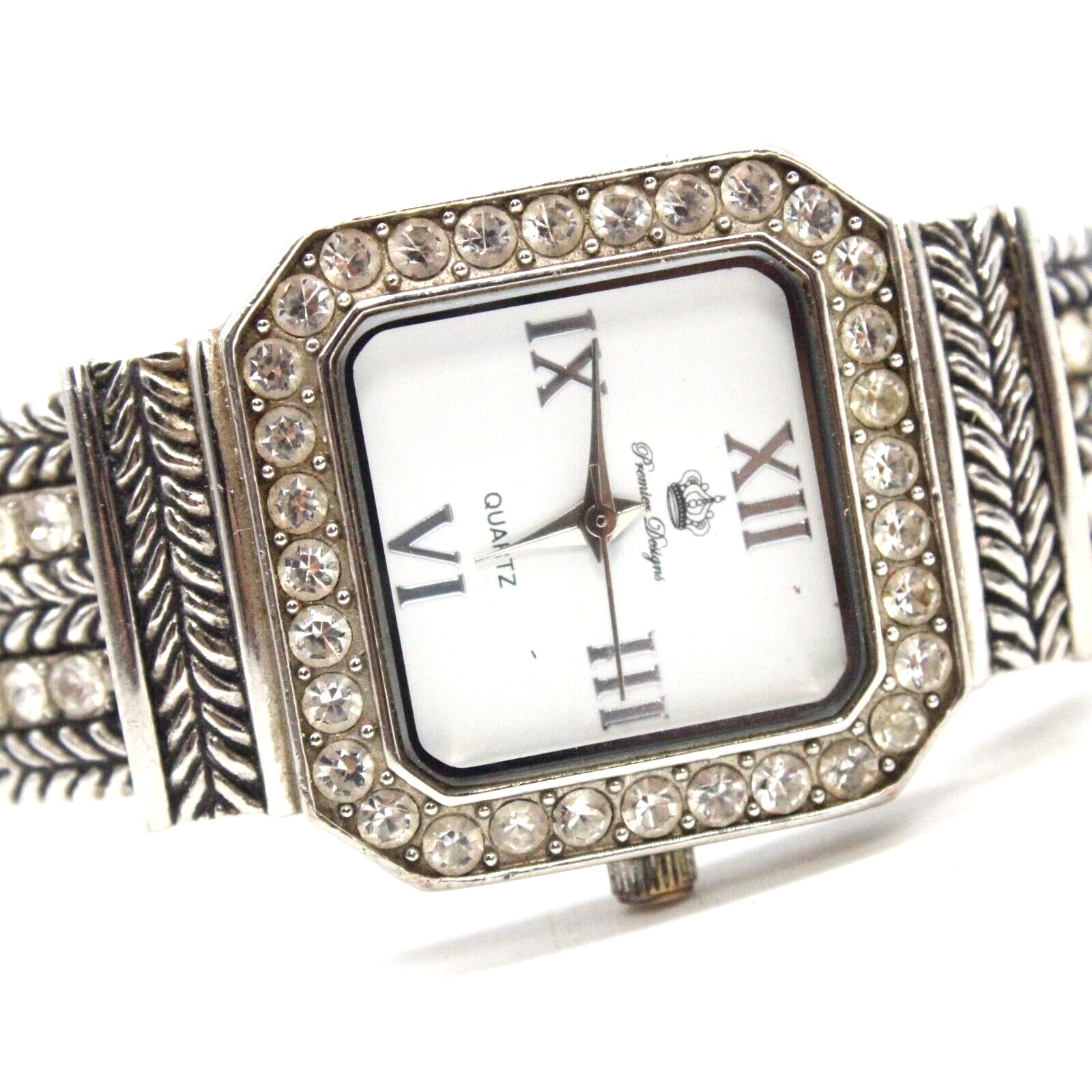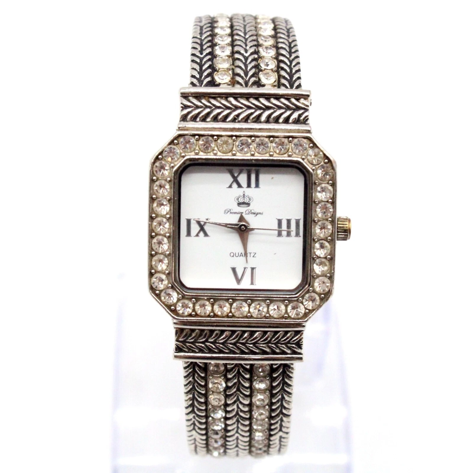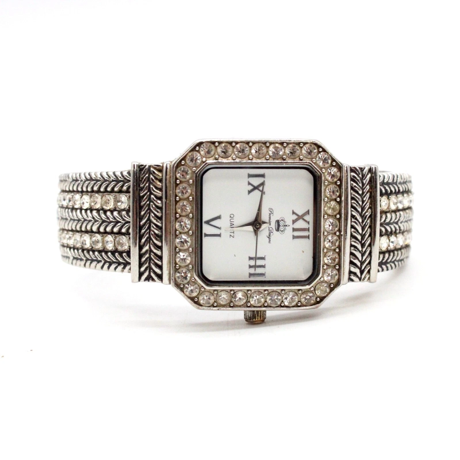 Premier Designs Watch Women's Silver Tone Dial Texture Open Cuff Bracelet Band