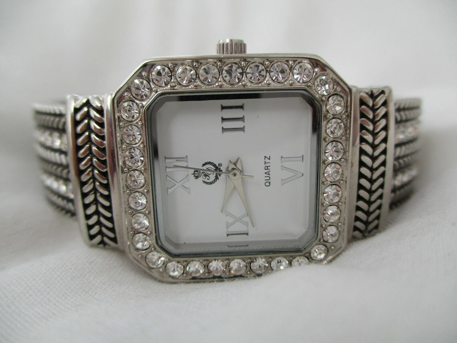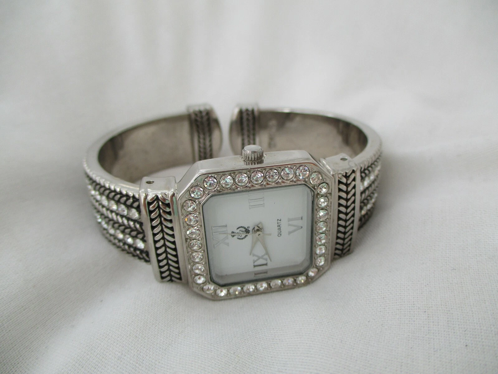 Premier Designs Silver Toned Women's Classy Cuff Band Wristwatch