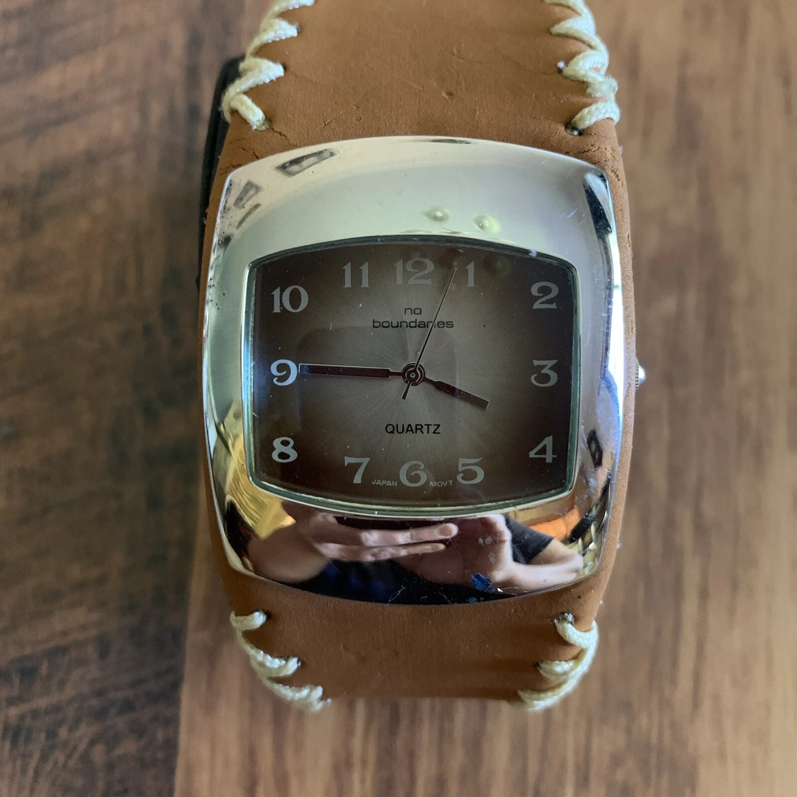 No Boundaries Brown Tone Learher Band Quartz Women's Watch 8.25” New Battery