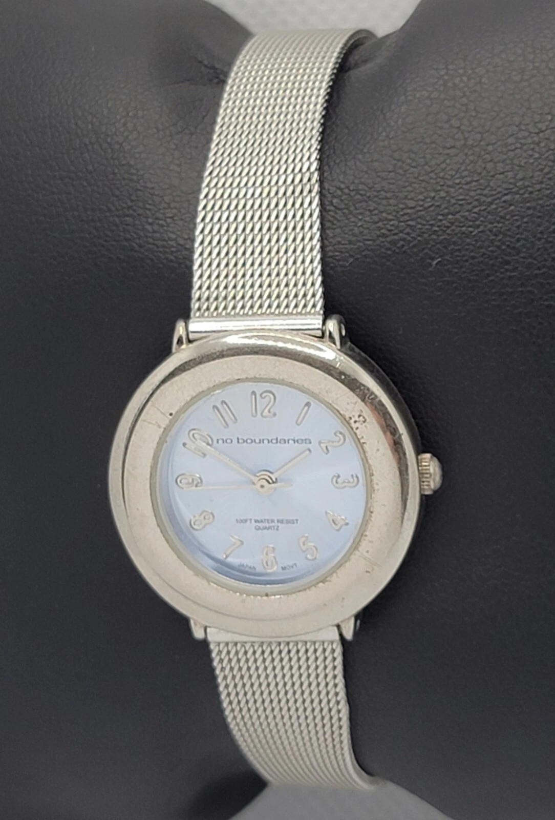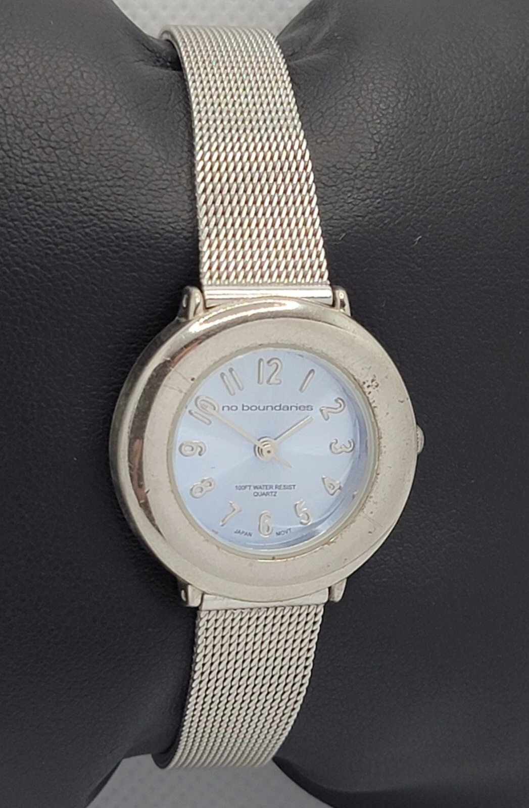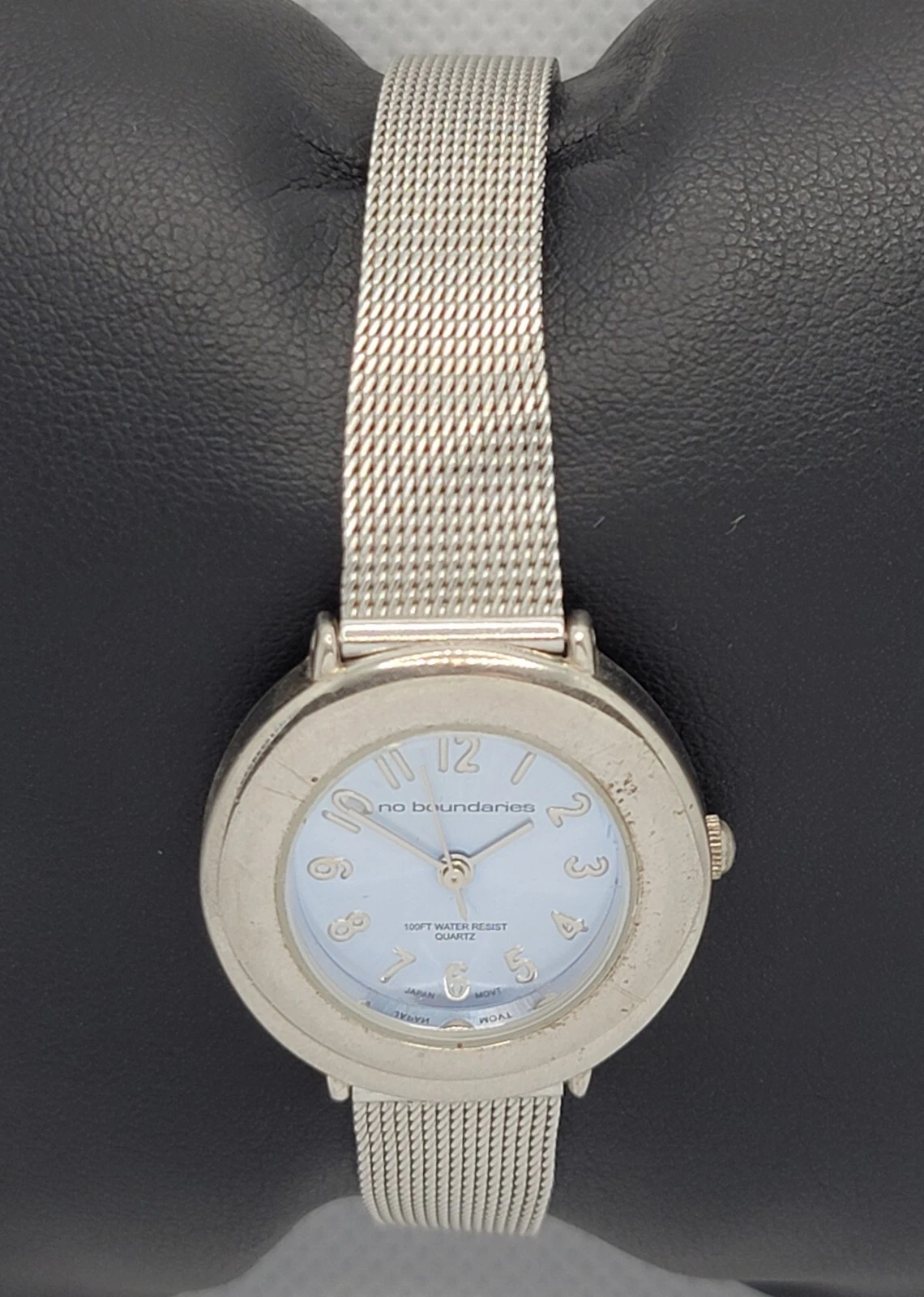 Ladies No Boundaries Classic Round Silver Tone Blue Dial Mesh Band Watch L3